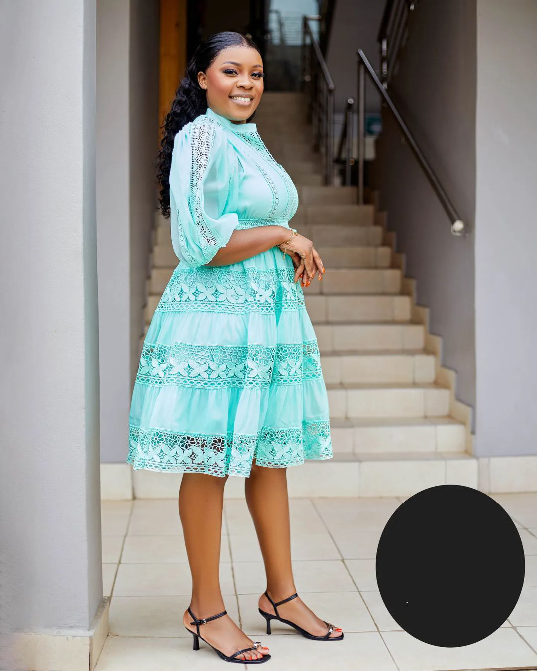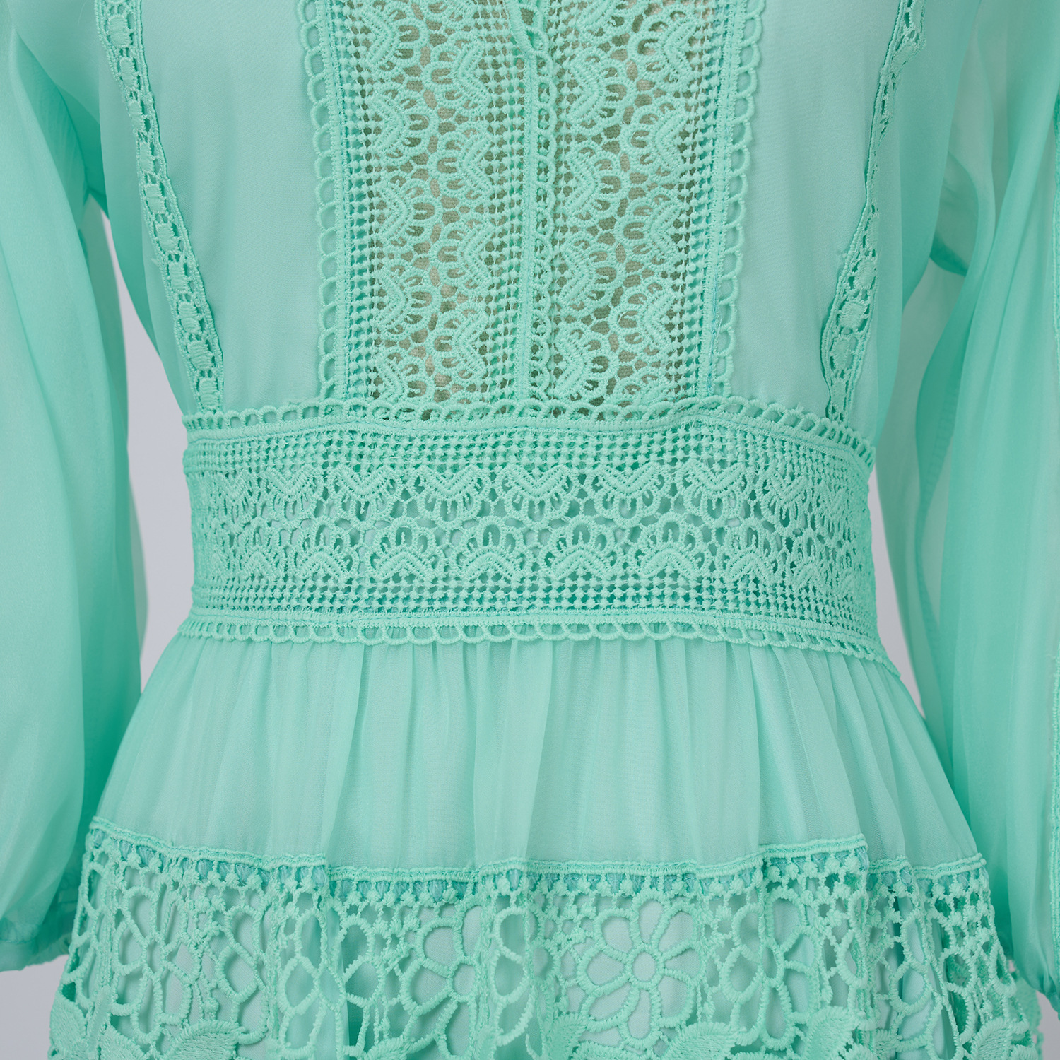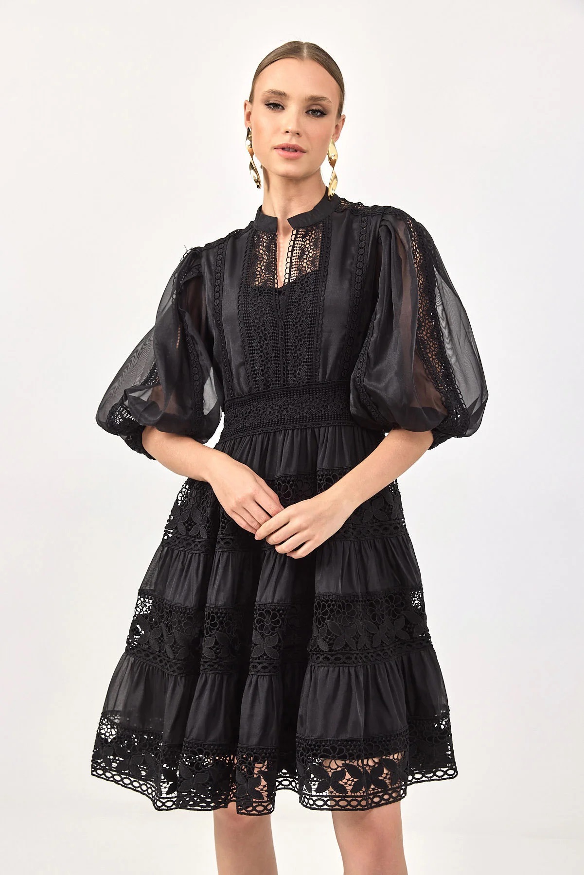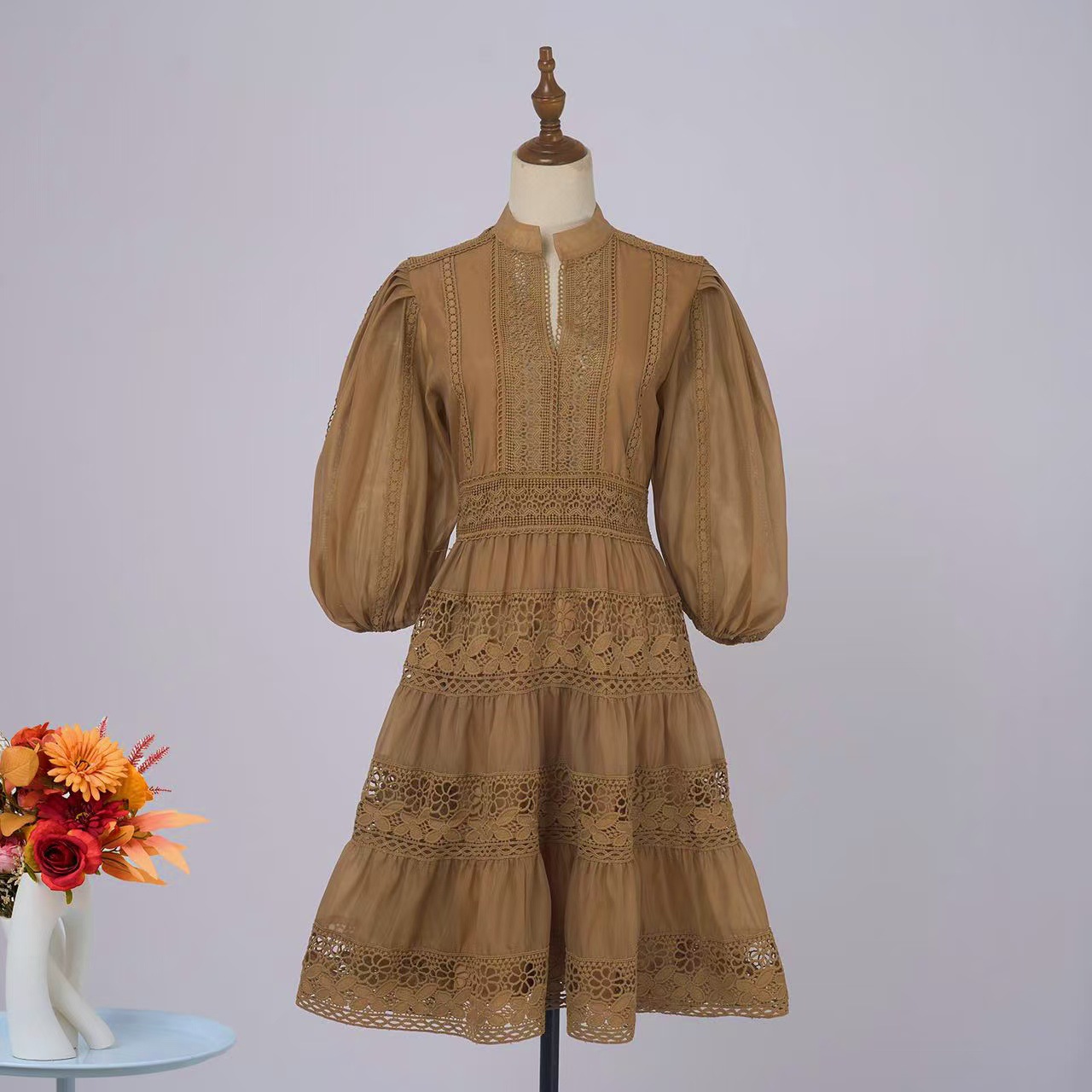 Copy| Product Name | Women Solid Half-Sleeve Lantern Sleeve Patchwork Dress |