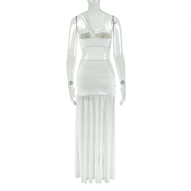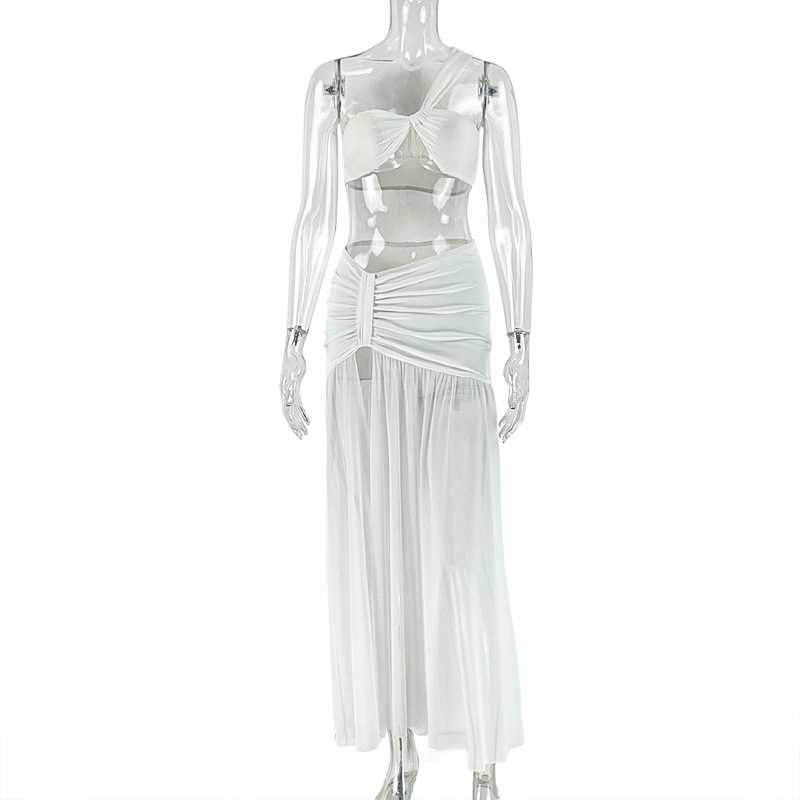 Copy| Product Name | Women Solid Holidays Bodycon One-Shoulder Crop Top and Skirt Two-Piece Set |