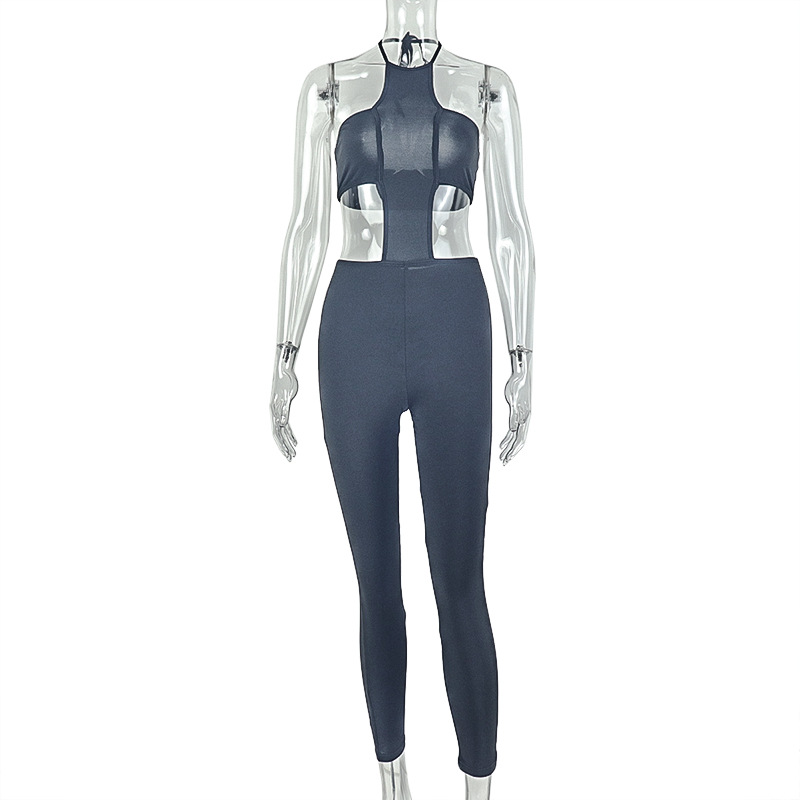 Copy| Product Name | Women Solid Sexy Backless Bodycon Halter Neck Jumpsuit |
