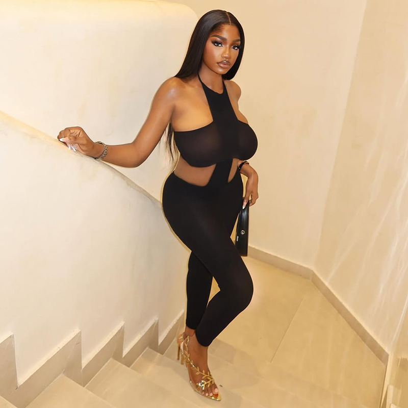 This Women Solid Sexy Backless Bodycon Halter Neck Jumpsuit Design Made Of High Quality Polyster And Spandex Material. It Is Stretchy, Durable And Comfortable. Cheap Sexy Jumpsuits For Women Has Long Been a Party Favorite. Global Lover Provide a Rich Selction Of Sequin, Beaded, See Through Mesh, Leopard, Floral Lace, Leather, Velvet, Tight And Fitted Wholesale Jumpsuit Without Moq Limit.