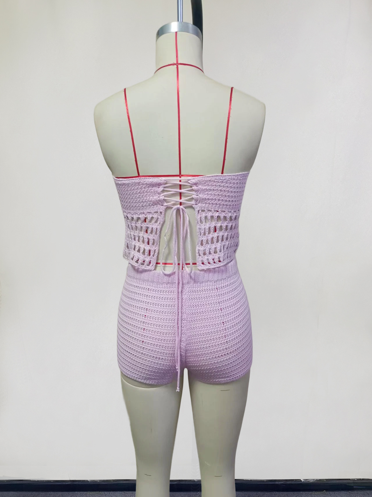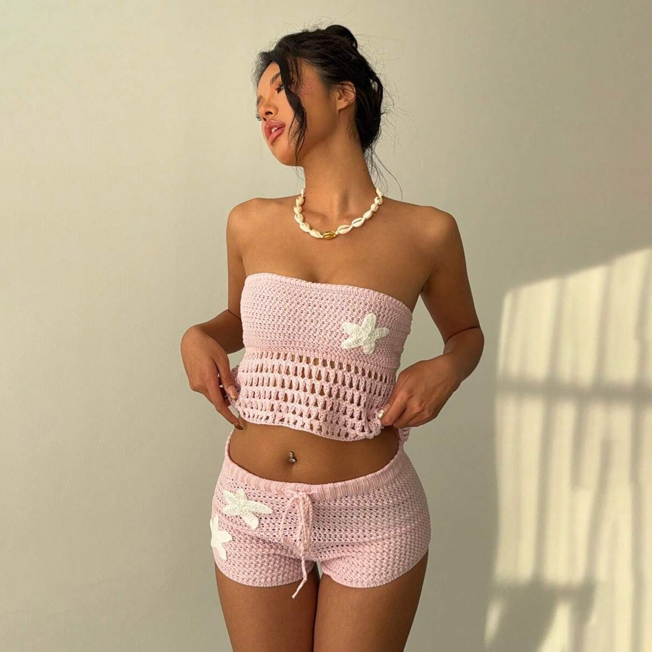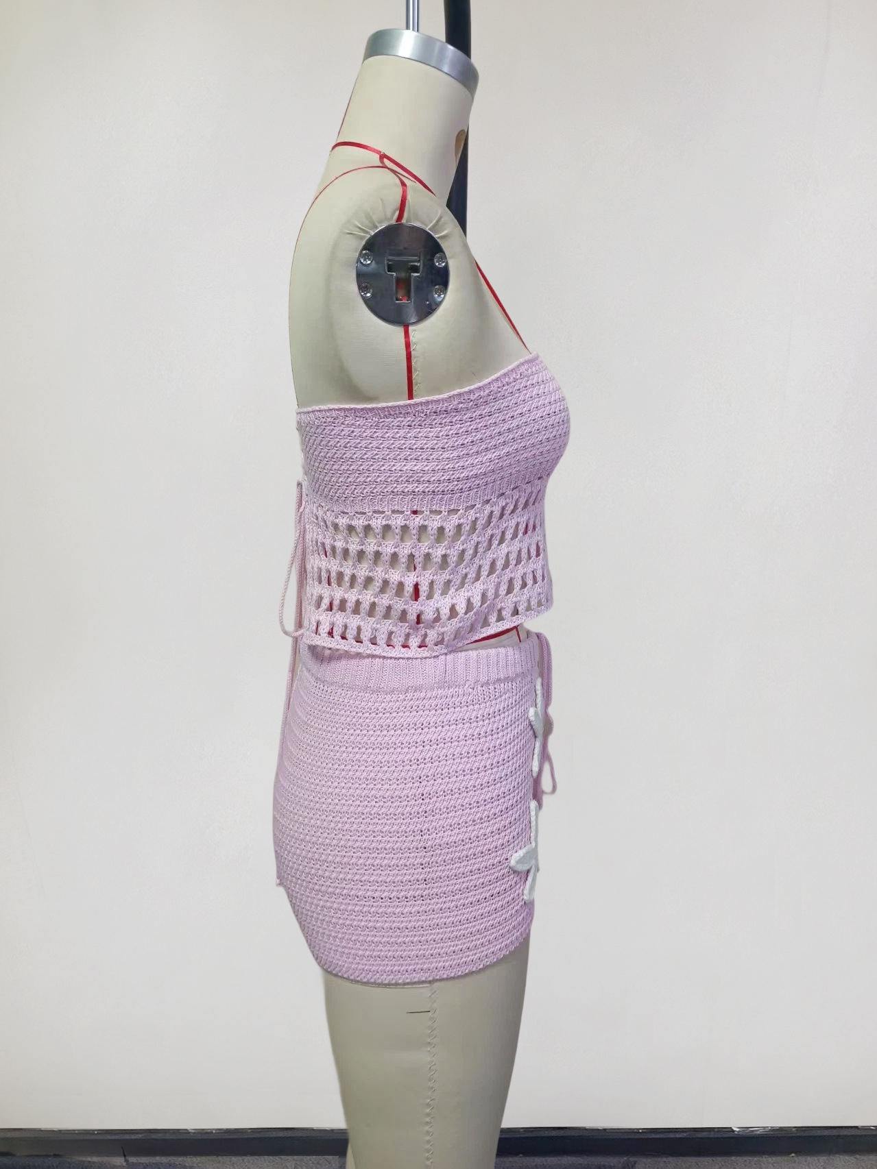 Copy| Product Name | Women Solid Sexy Knitting Beach Dress Bikini Cover-Up Swimwear Two-Piece Set |