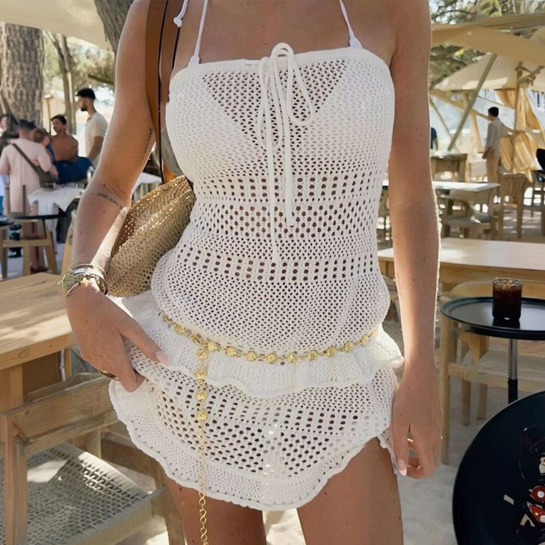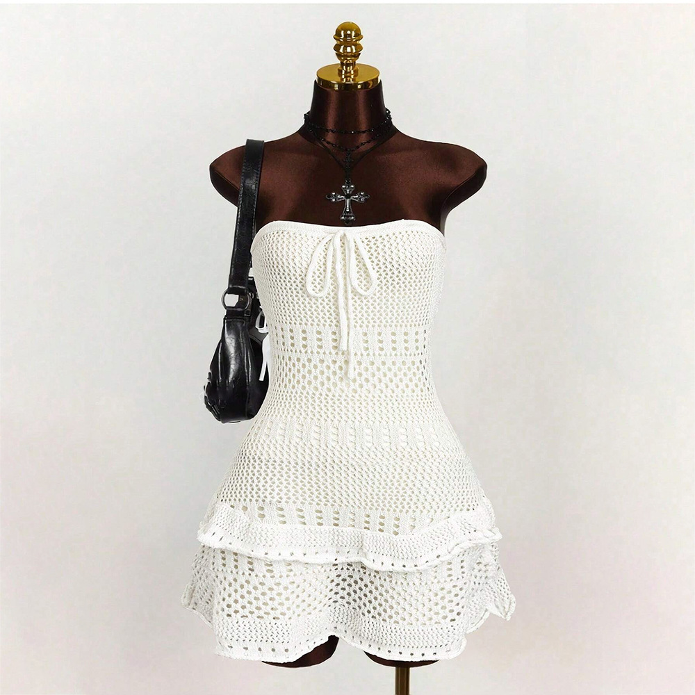 Copy| Product Name | Women Solid Sexy Knitting Hollow-Out Beach Cover-Up Bikini Beach Dress |
