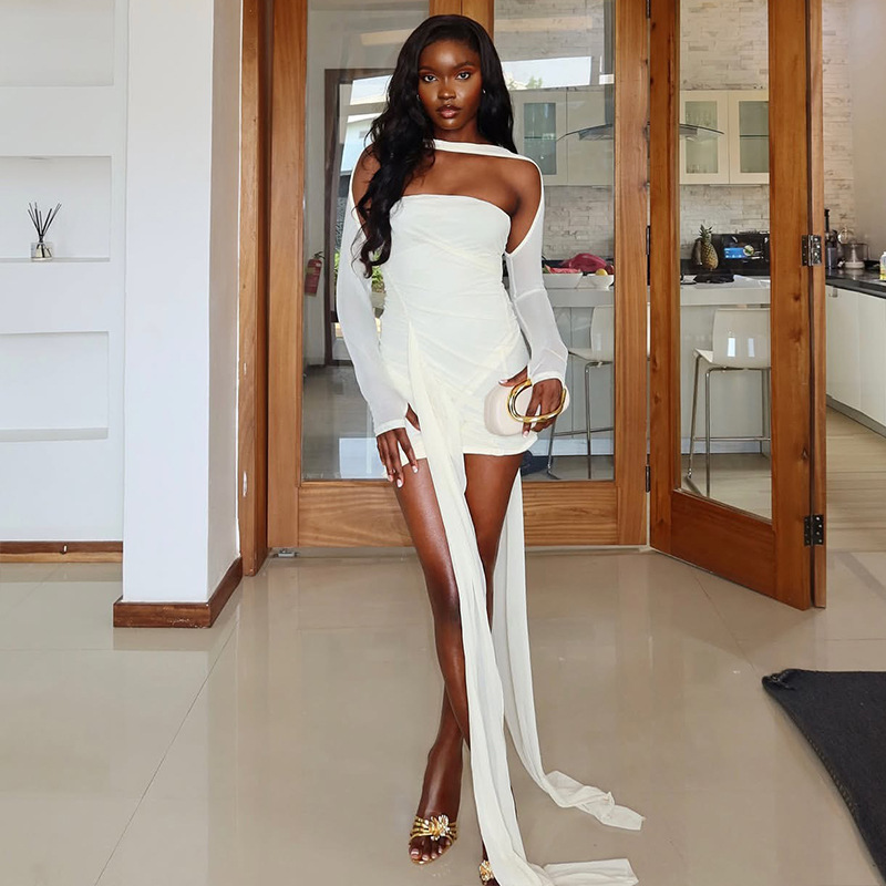 Copy| Product Name | Women Solid Sexy Off-Shoulder Long-Sleeve Dress |