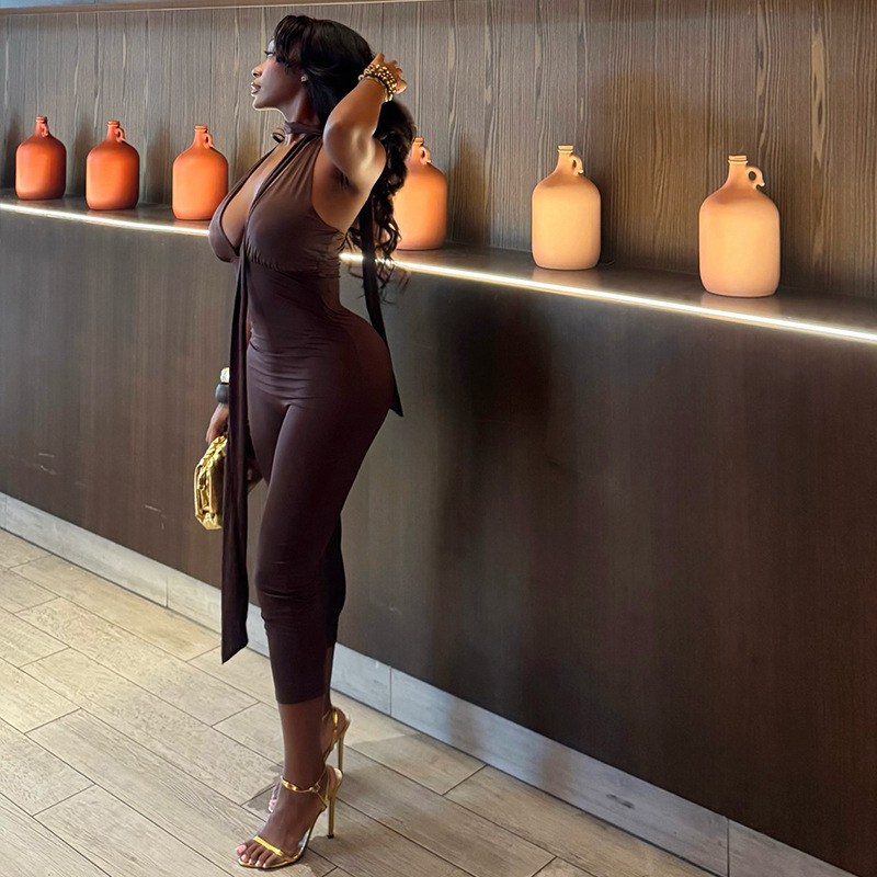 This Women Sporty v-Neck Lace-Up Solid Jumpsuit Design Made Of High Quality Polyster And Spandex Material. It Is Stretchy, Durable And Comfortable. Cheap Sexy Jumpsuits For Women Has Long Been a Party Favorite. Global Lover Provide a Rich Selction Of Sequin, Beaded, See Through Mesh, Leopard, Floral Lace, Leather, Velvet, Tight And Fitted Wholesale Jumpsuit Without Moq Limit.