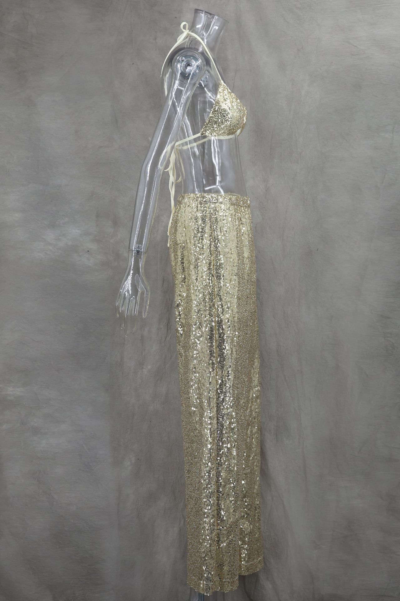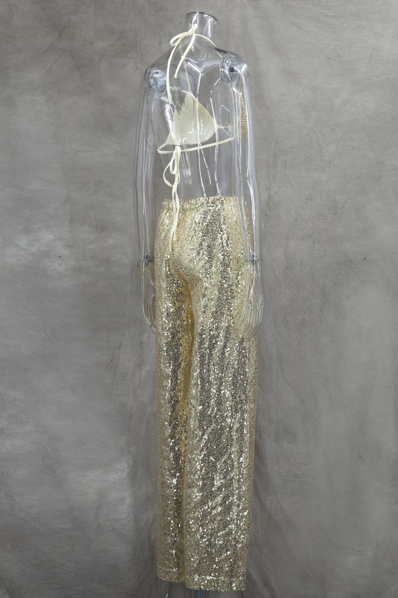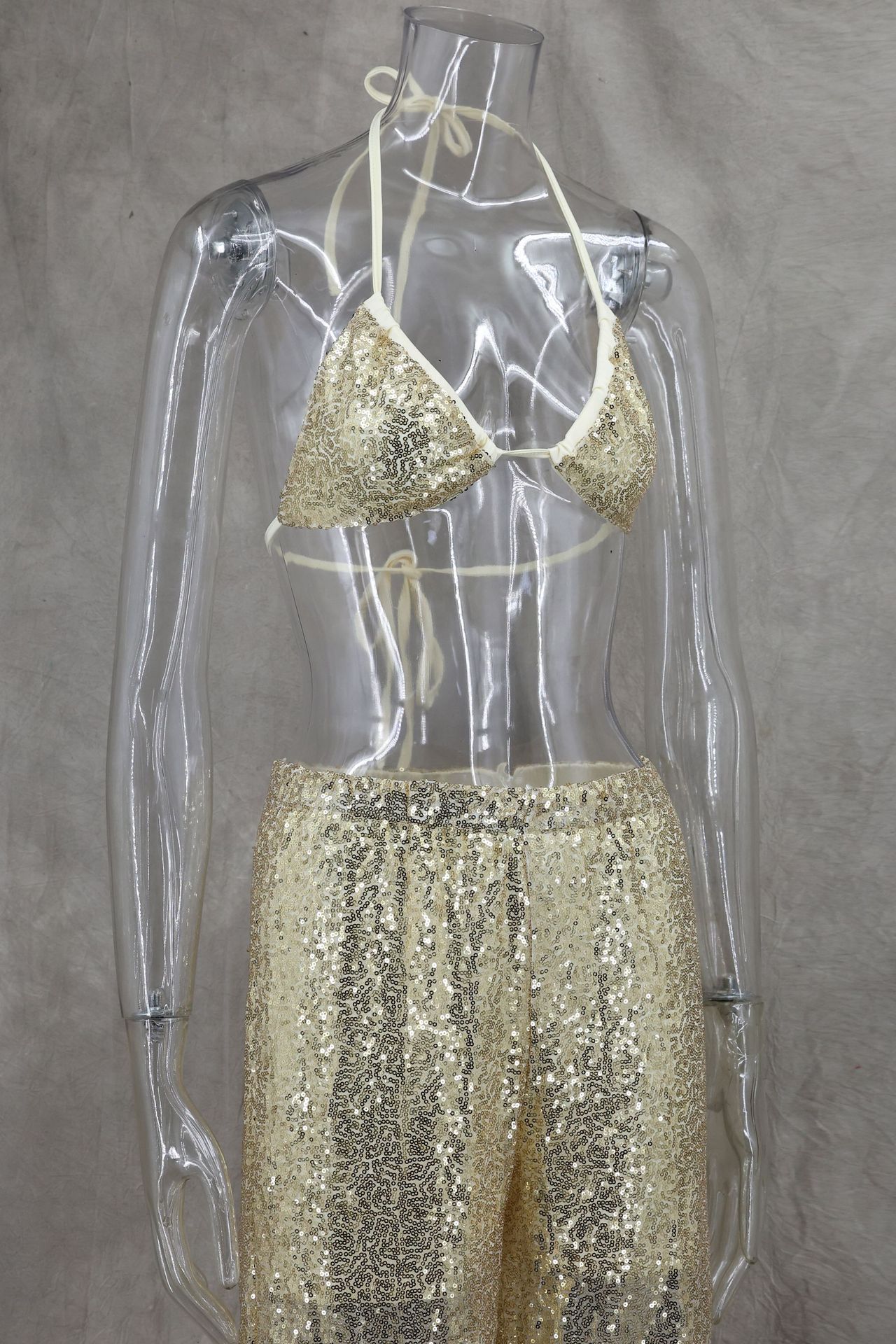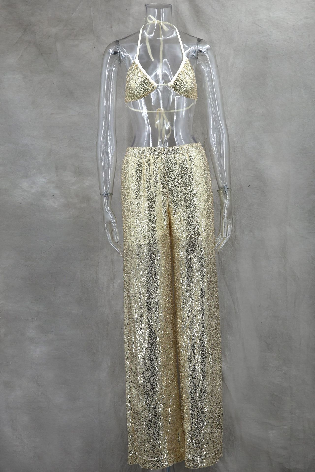 Copy| Product Name | Women Spring/Summer Bikini V-Neck Sexy Sequined Top and Wide-Leg Pants Two-Piece Set |