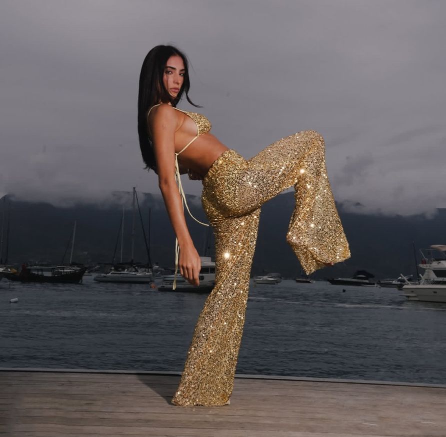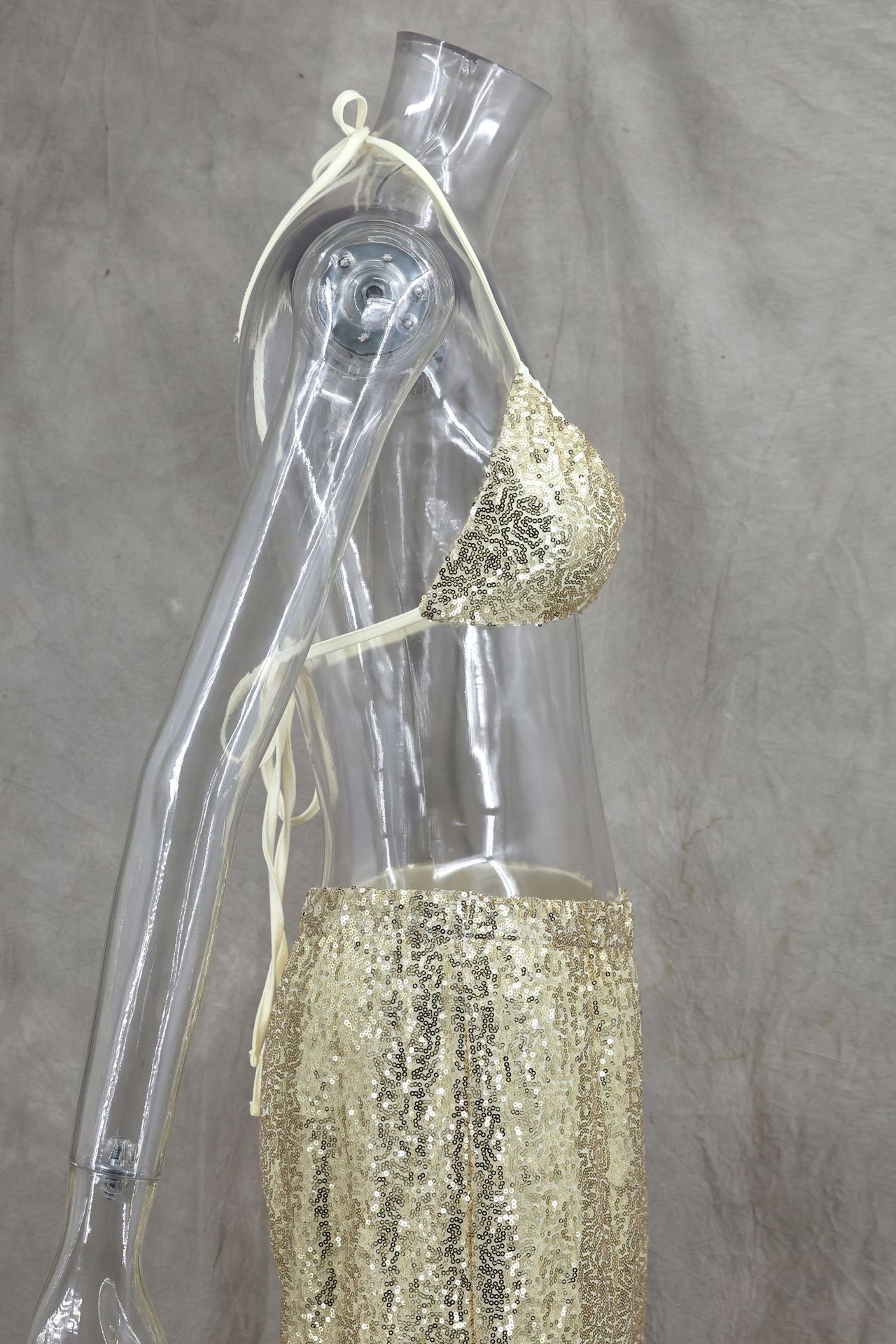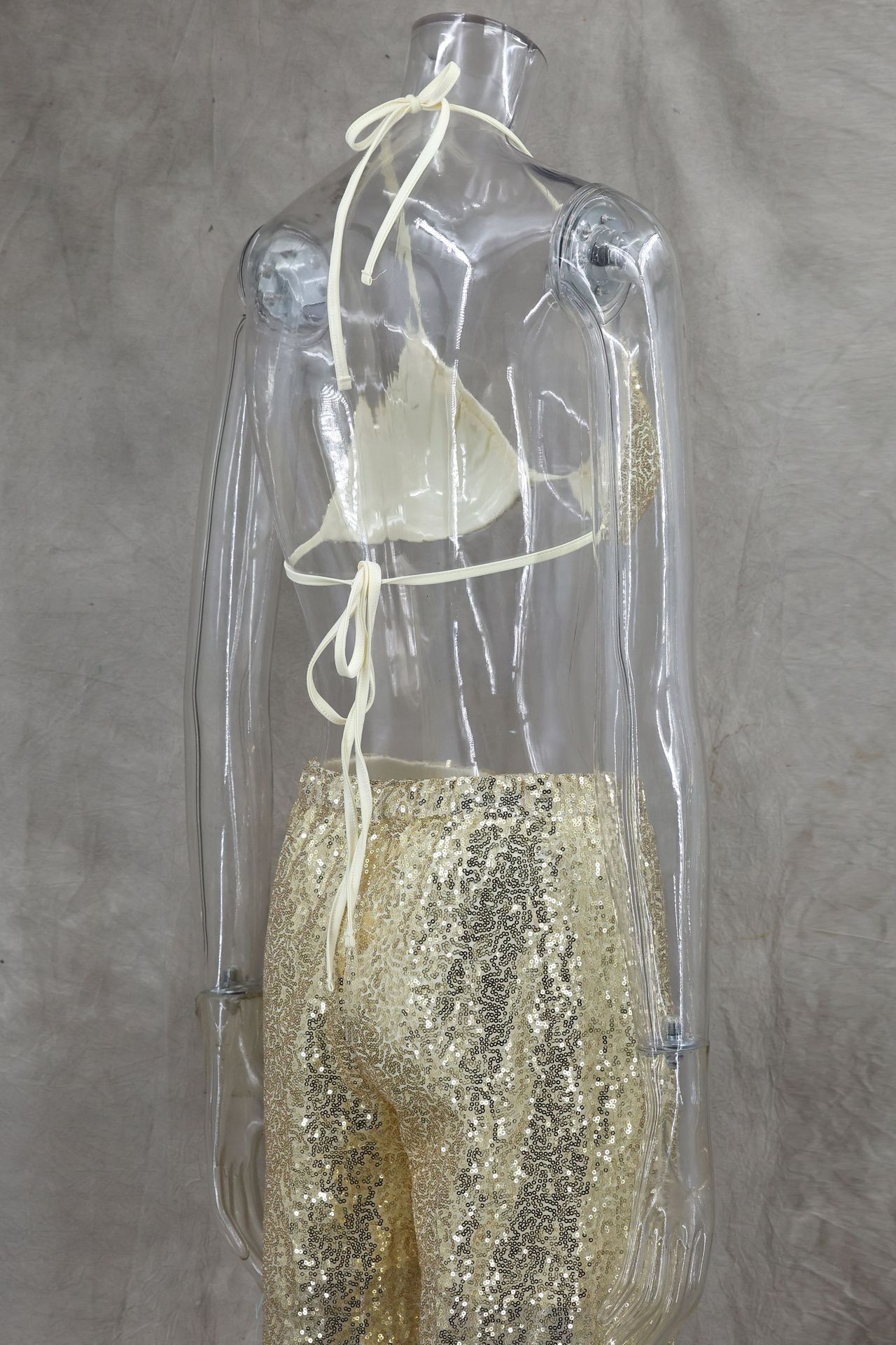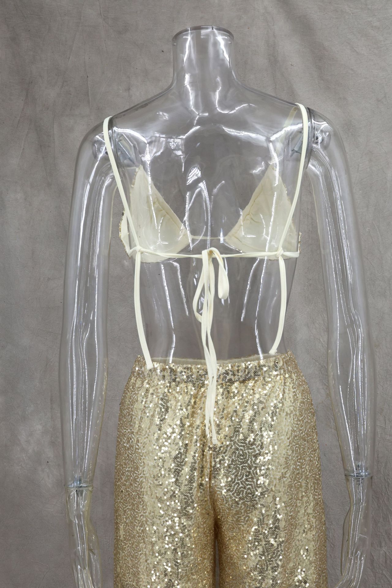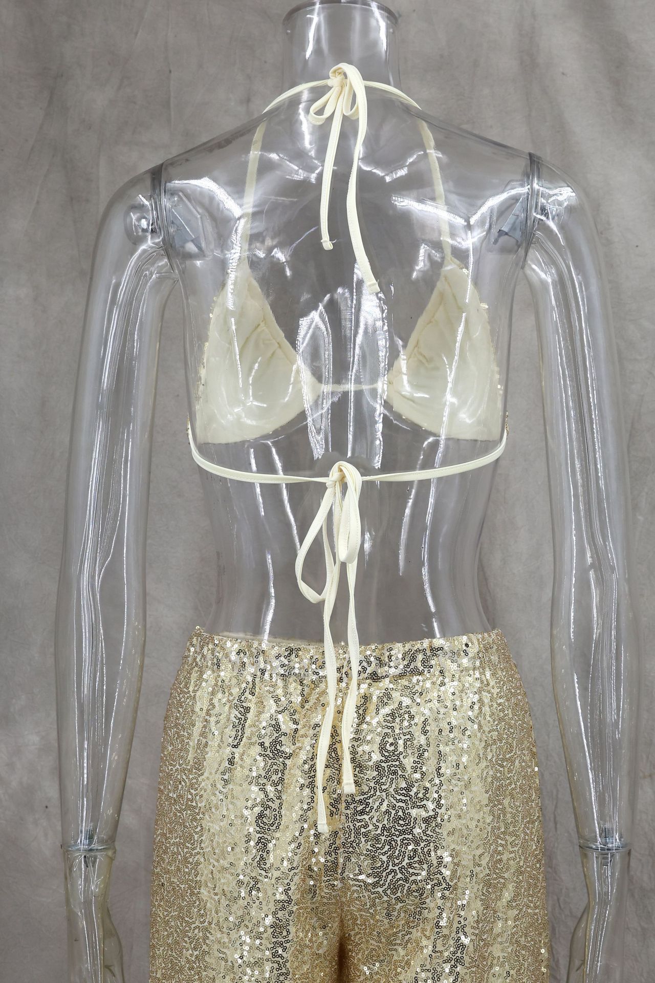 Copy| Product Name | Women Spring/Summer Bikini V-Neck Sexy Sequined Top and Wide-Leg Pants Two-Piece Set |