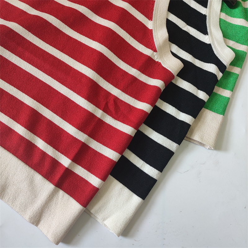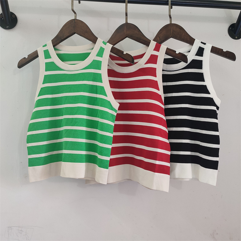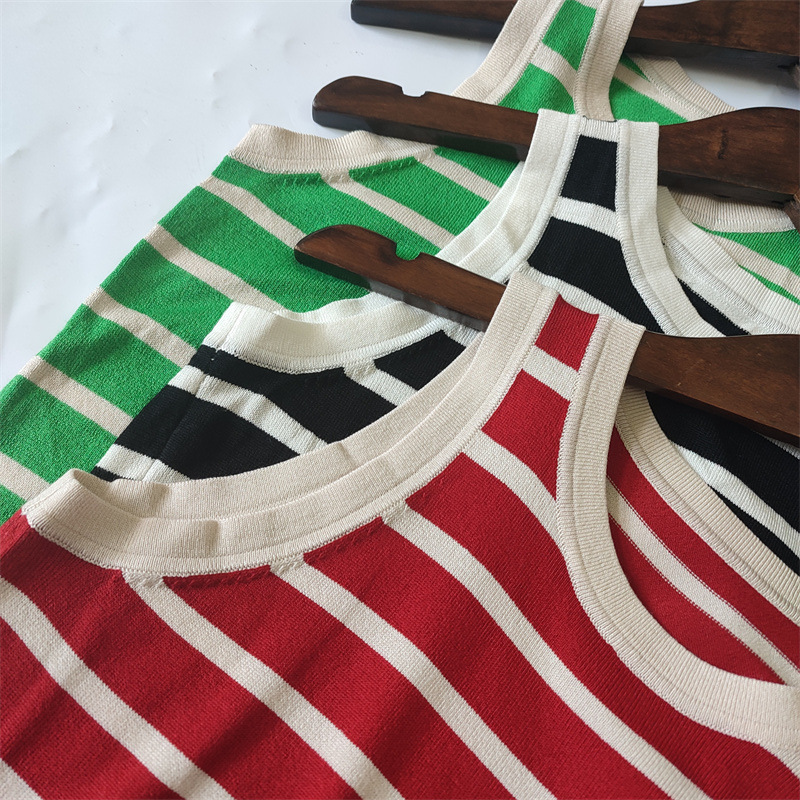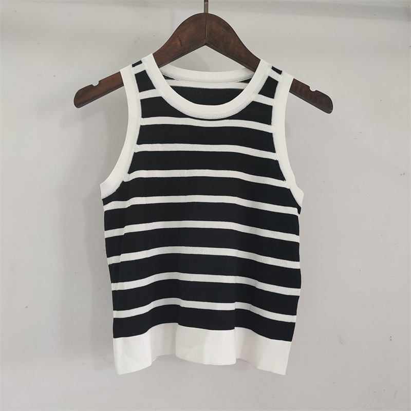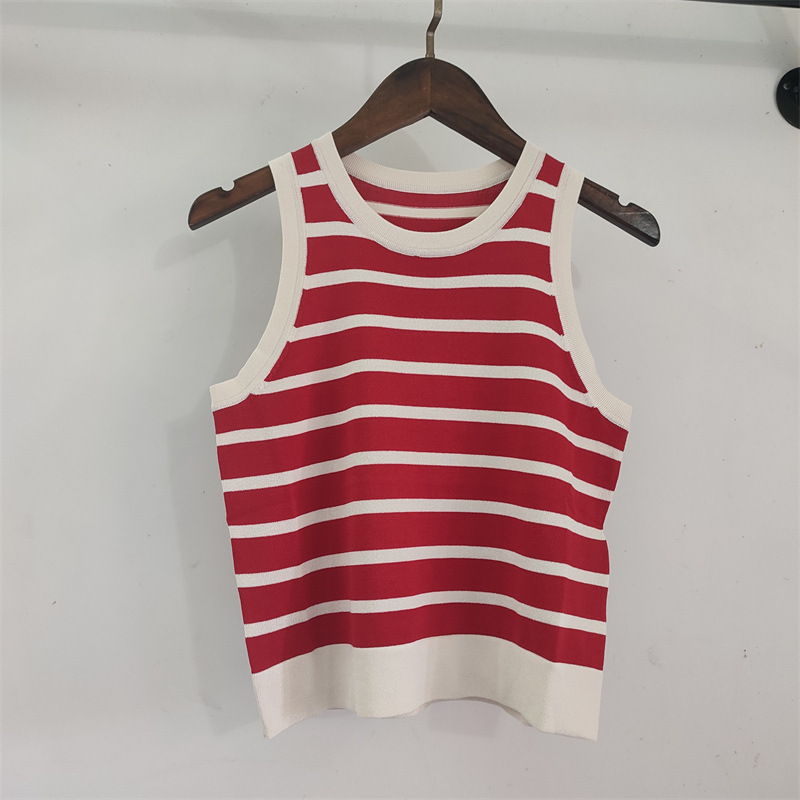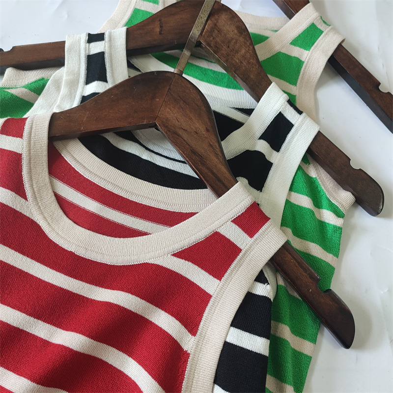Copy| Product Name | Women Spring Summer Round Neck Striped Knitting Tank Top |
