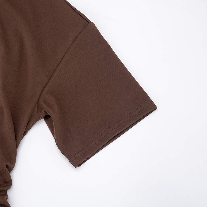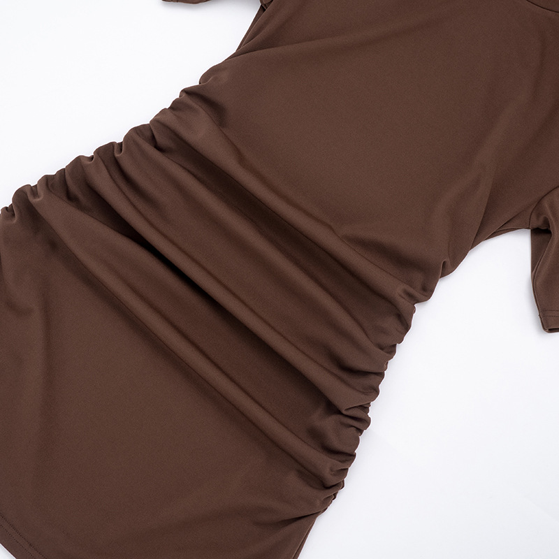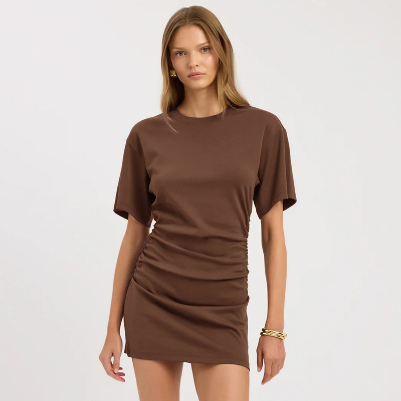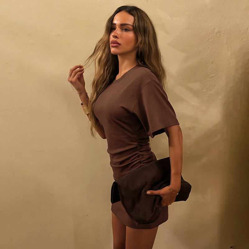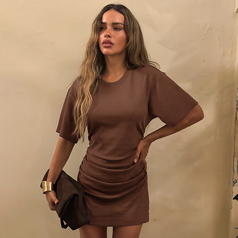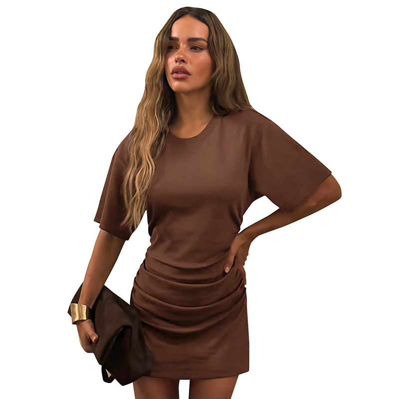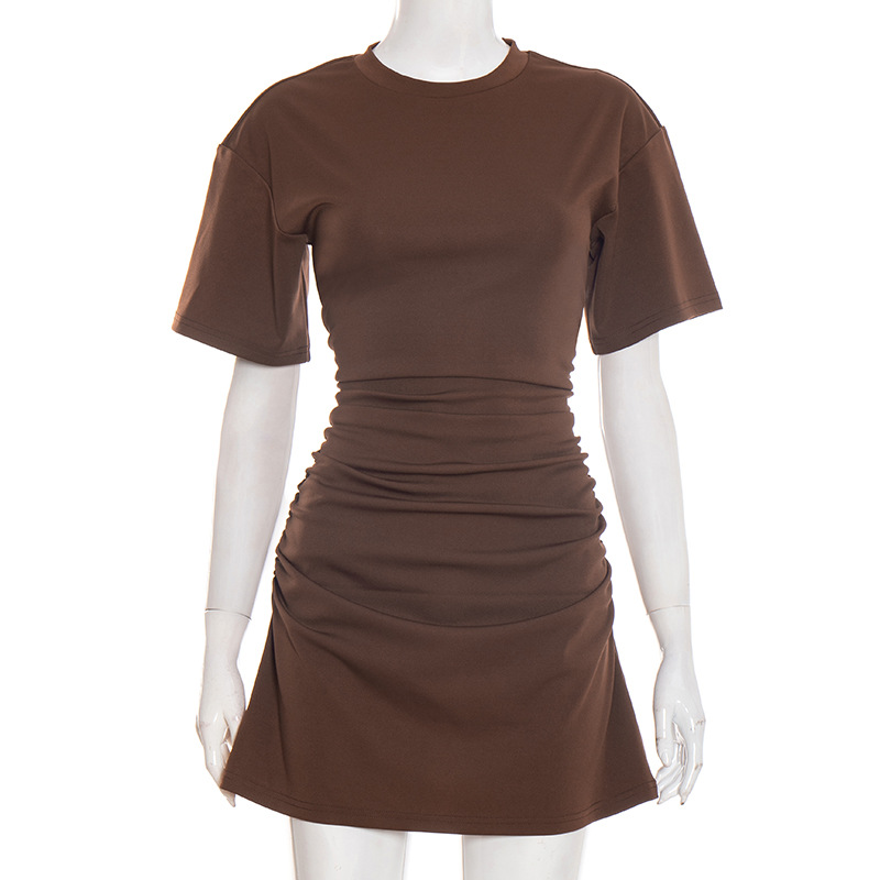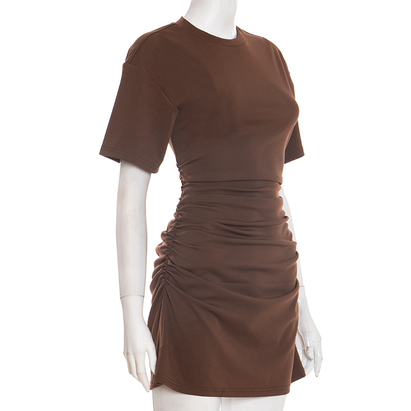 Copy| Product Name | Women Spring Summer Solid Round Neck Gathered Bodycon Dress |