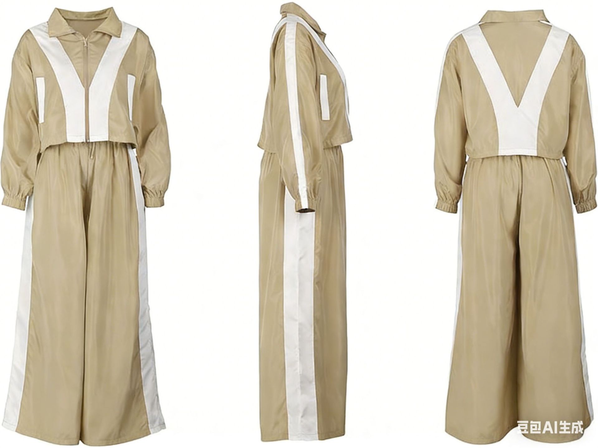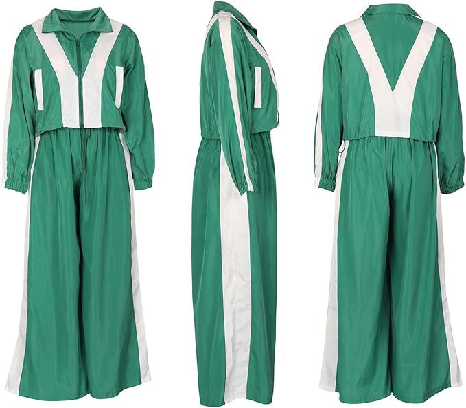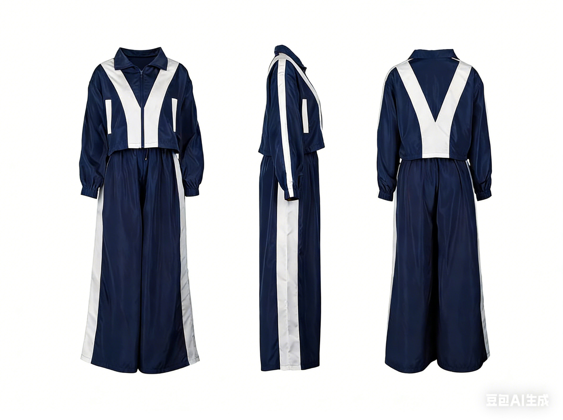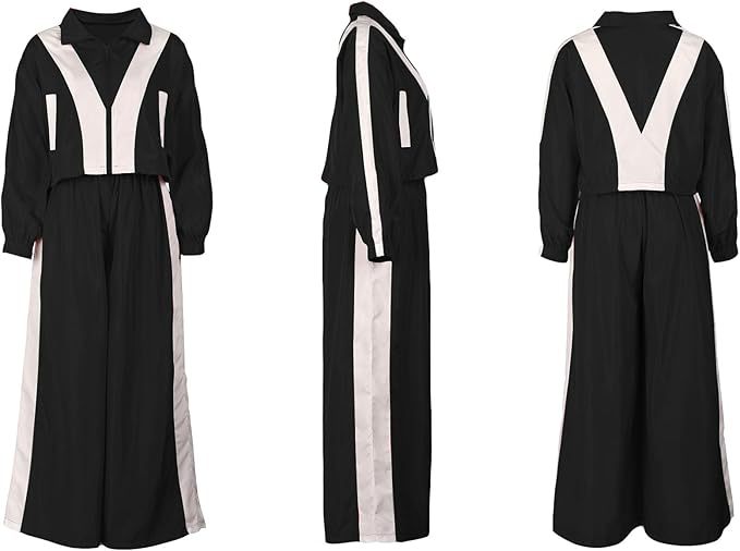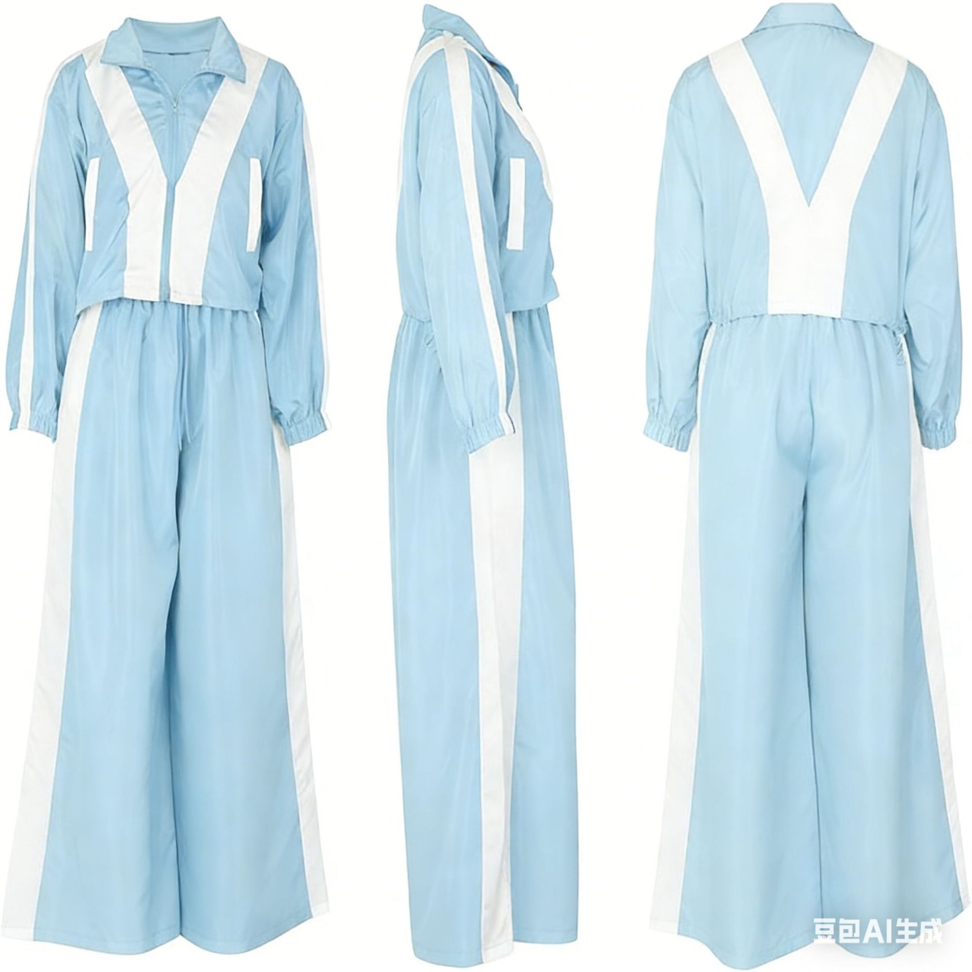 Copy| Product Name | Women Stand Collar Color-Blocked Long-Sleeved Top and Pants Two-Piece Set |