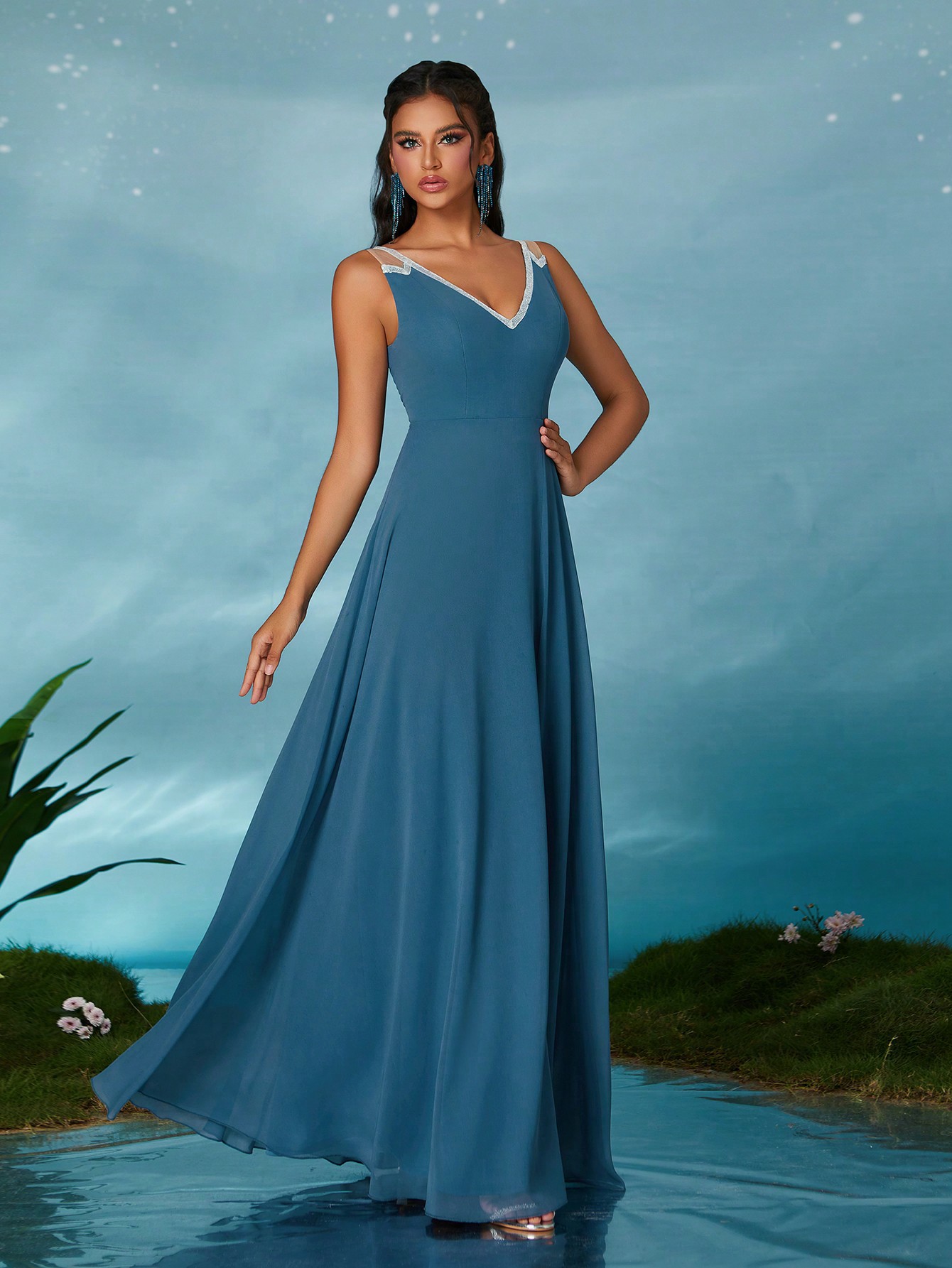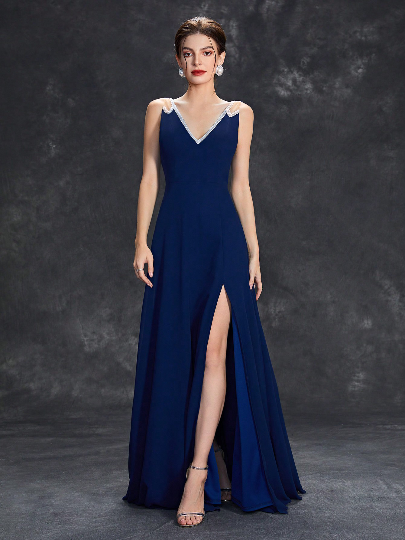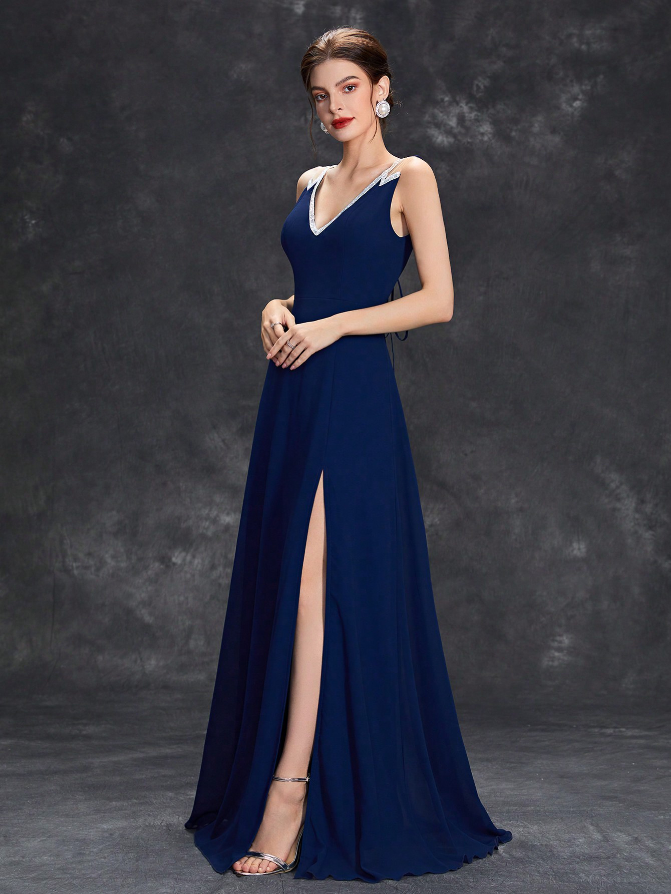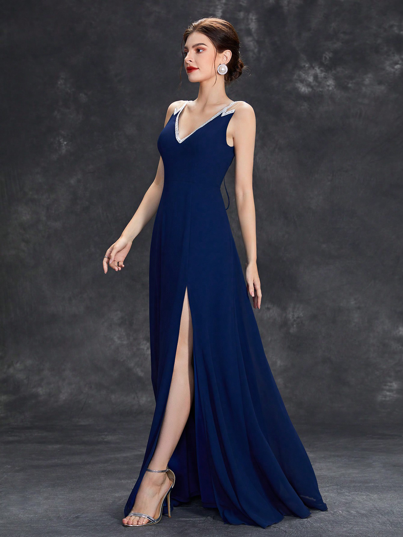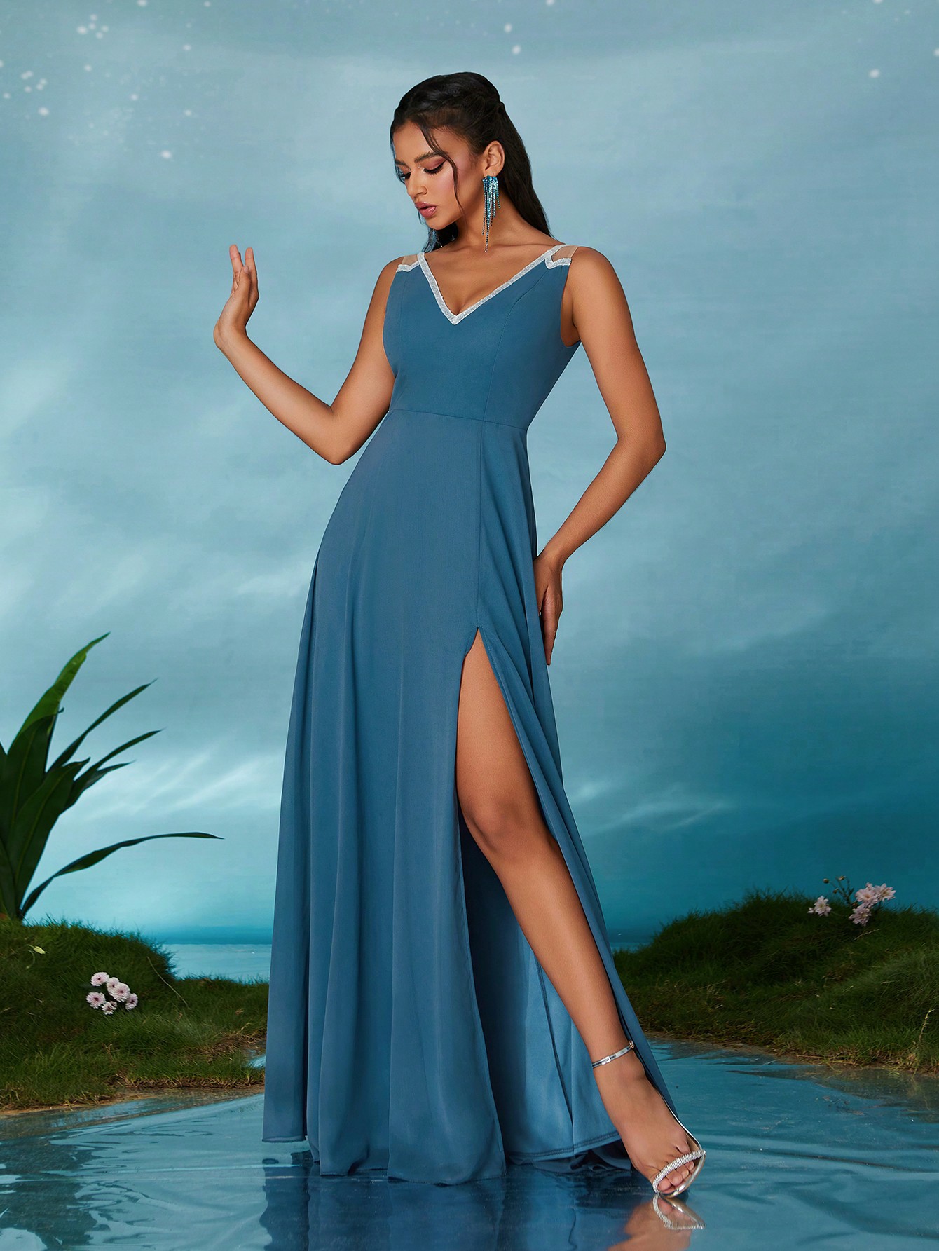 Copy| Product Name | Women Summer Solid Deep V Sleeveless Slit Formal Maxi Evening Dress |