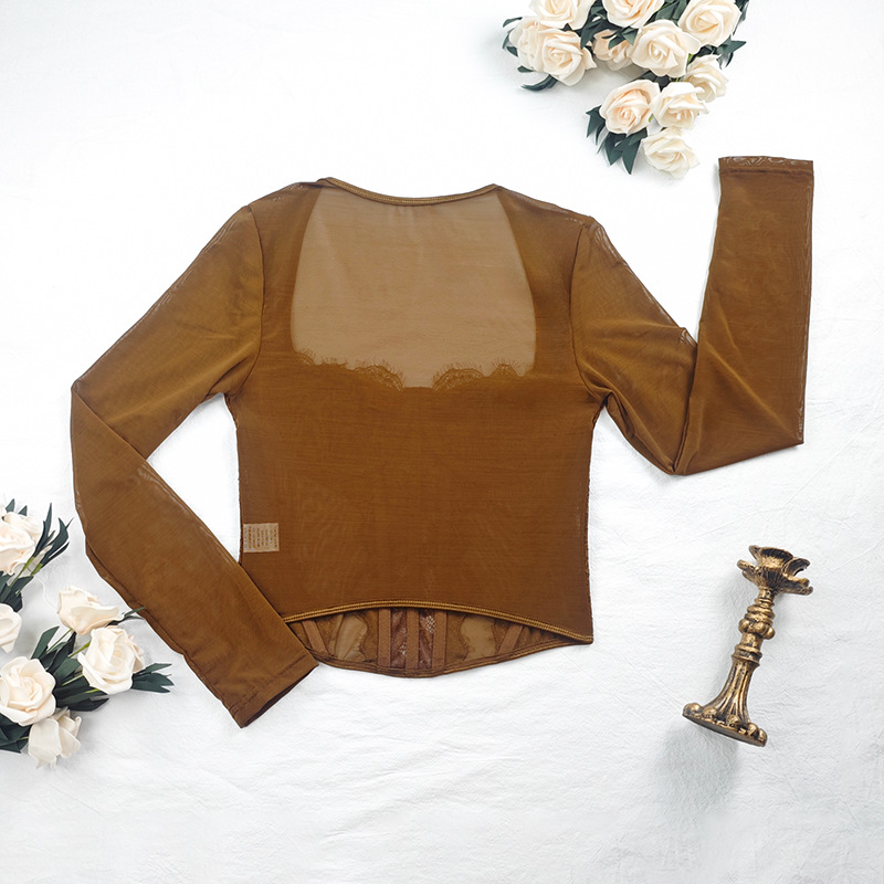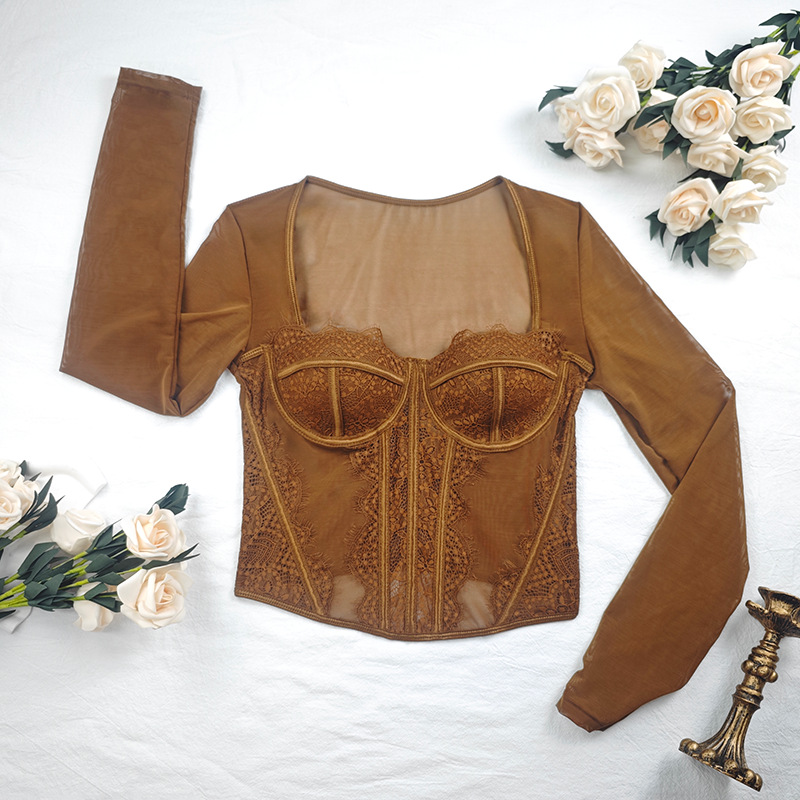 Copy| Product Name | Women Underwire Mesh Patchwork Top Sexy Lace See-Through Long-Sleeved Fishbone Bra |