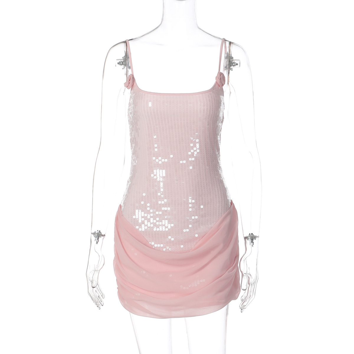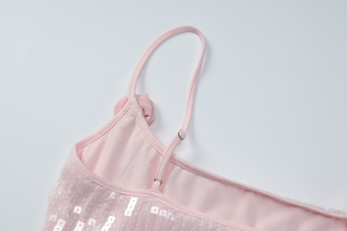 Copy| Product Name | Women Winter Spaghetti Strap Floral Sequin Patchwork Mesh Dress |