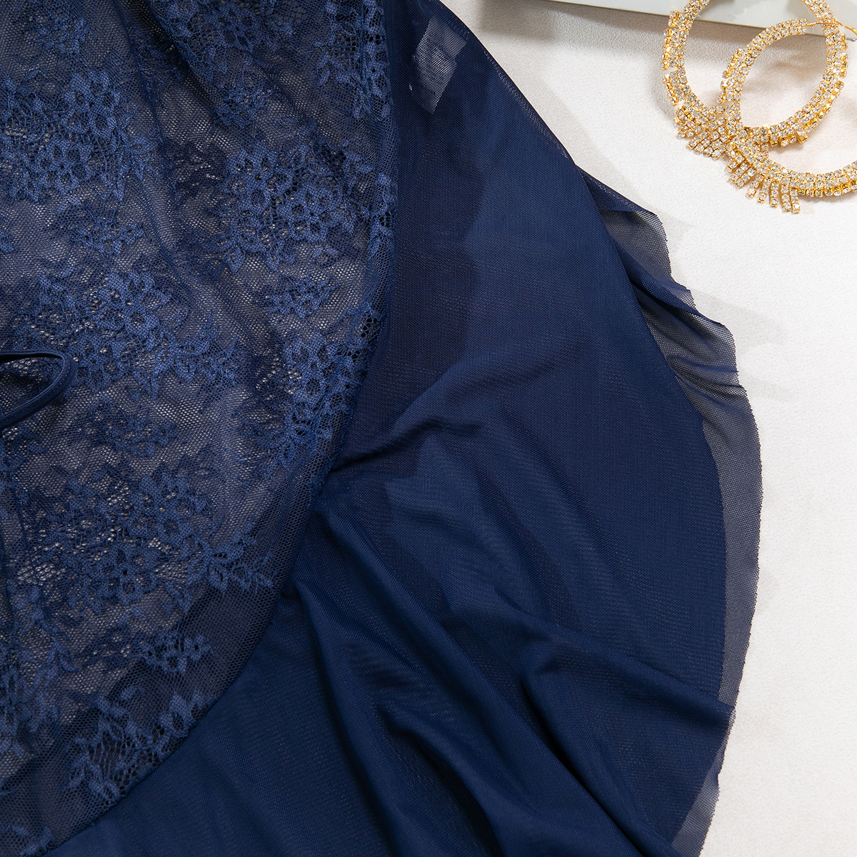 Copy| Product Name | Women cheongsam with slanted slits and exposed legs, lace half-see-through thong two-piece nightdress with sexy lingerie |