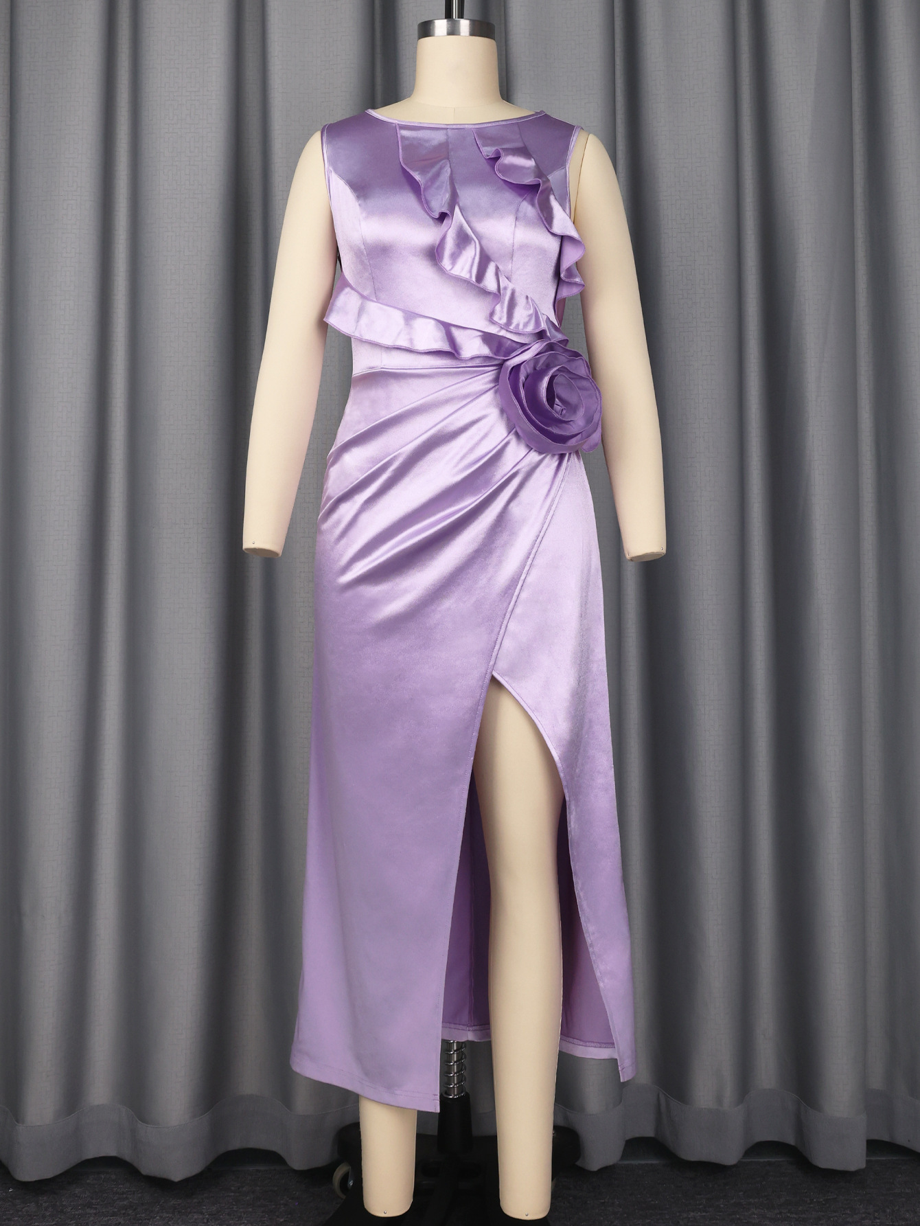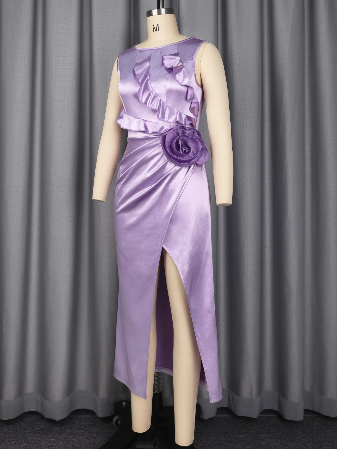 Copy| Product Name | Women irregular ruffled pleated floral slit sexy dress |