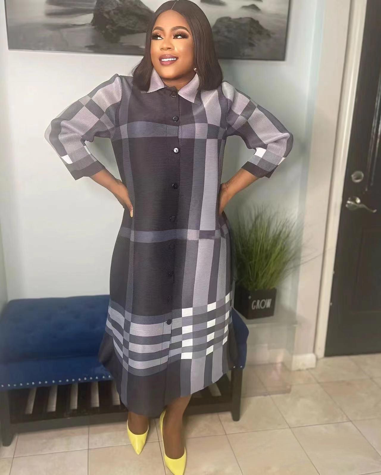 Copy| Product Name | Women's African Single-Breast Plus Size Fashion Plaid British Chic Shirt Dress |