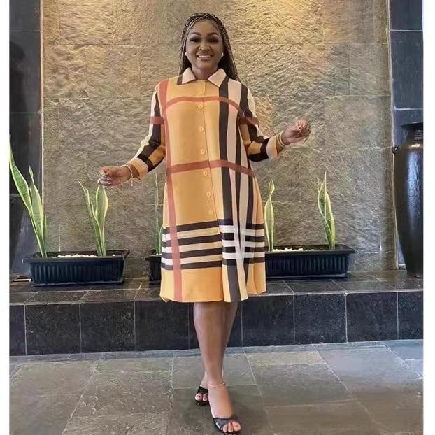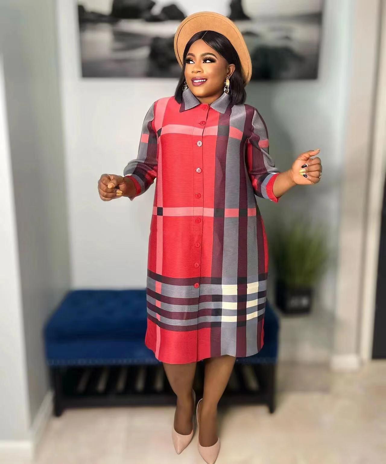 This Women's African Single-Breast Plus Size Fashion Plaid British Chic Shirt Dress Design Made Of High Quality Polyster And Spandex Material. It Is Stretchy, Durable And Comfortable. Casual Dresses With Long Sleeves Can Not Only Be Worn As Outerwear In Spring And Autumn, But Also Matching a Jacket In Winter, It Is a Must Have Item For Every Season. Grab Really Great Buy Casual Dresses For Women And Grow Your Business. No Moq In Global-Lover.