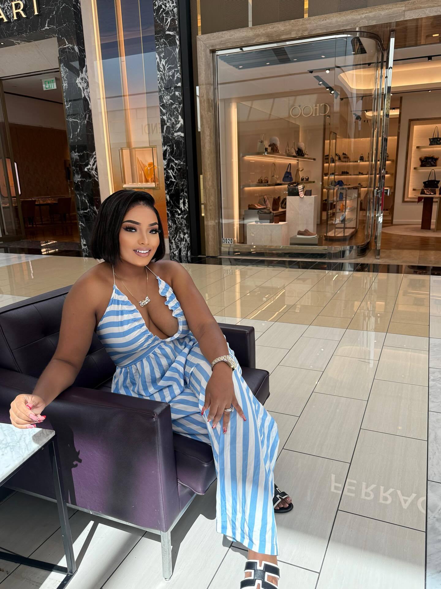 Copy| Product Name | Women's African Trendy Sexy Striped Halter Neck Strapless V-Neck Casual Jumpsuit |