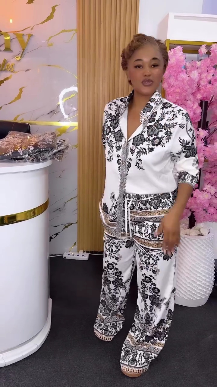 This Women's African Trendy Turndown Collar Print Shirt Wide Leg Pants Set Design Made Of High Quality Polyster And Spandex Material. It Is Stretchy, Durable And Comfortable. It Is a Must-Have Outfit For All Seasons. Wholesale Two Piece Pant Sets Can Solve Your Collocation Troubles. Explore More 2 Piece Pants Set On Global Lover Wholesale Women Clothing Online Store.
