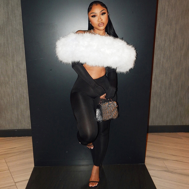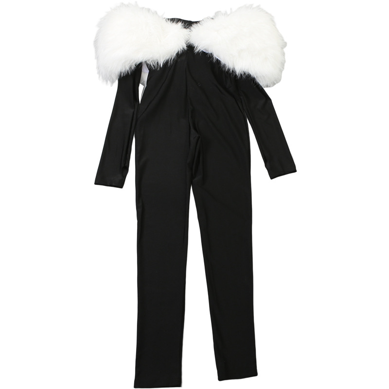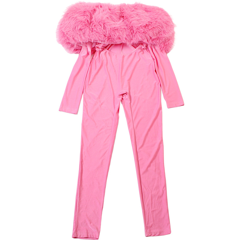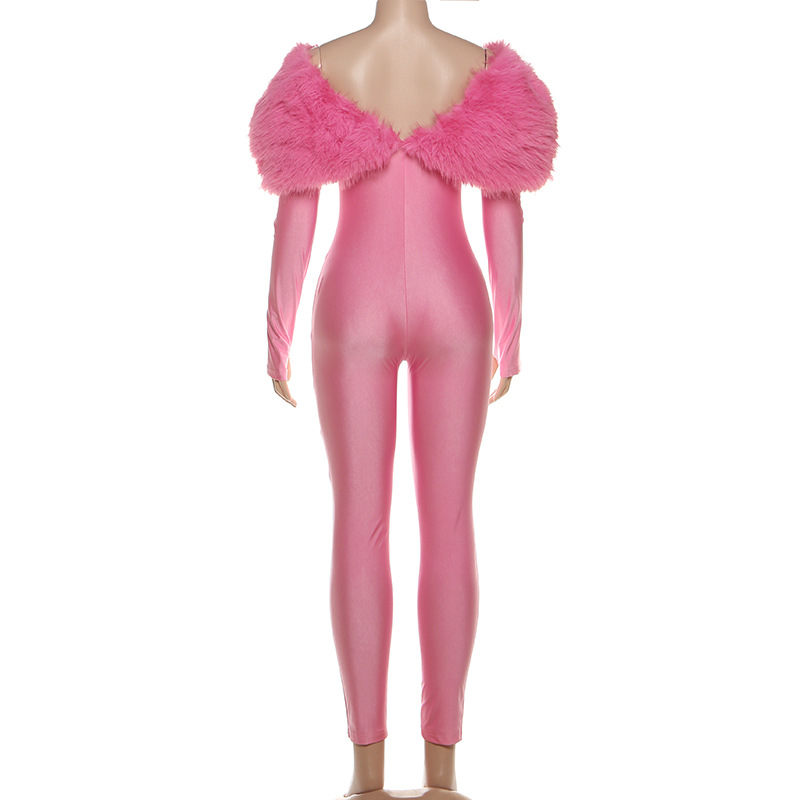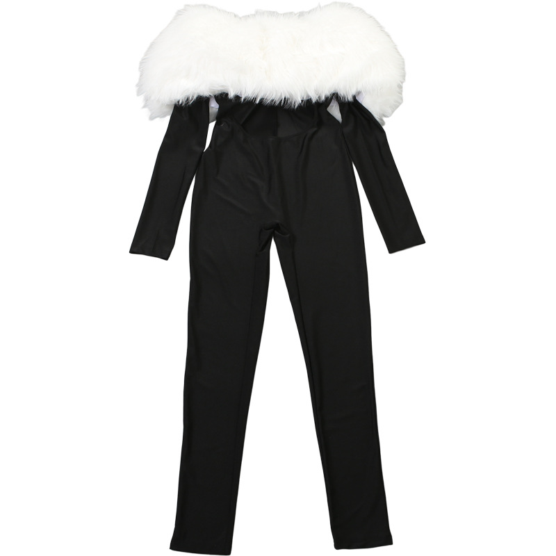 Copy| Product Name | Women's Autumn Off-Shoulder Furry Patchwork Sexy Hollow Out Long Sleeve Jumpsuit |