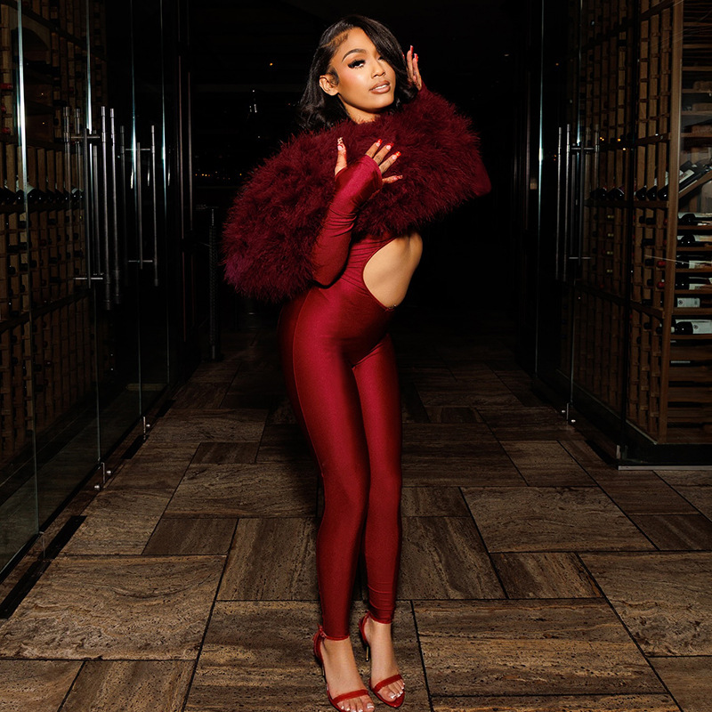 This Women's Autumn Off-Shoulder Furry Patchwork Sexy Hollow Out Long Sleeve Jumpsuit Design Made Of High Quality Polyster And Spandex Material. It Is Stretchy, Durable And Comfortable. Cheap Sexy Jumpsuits For Women Has Long Been a Party Favorite. Global Lover Provide a Rich Selction Of Sequin, Beaded, See Through Mesh, Leopard, Floral Lace, Leather, Velvet, Tight And Fitted Wholesale Jumpsuit Without Moq Limit.