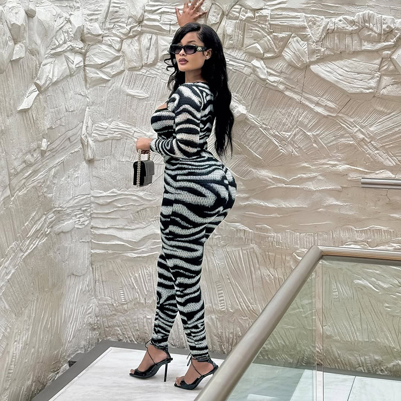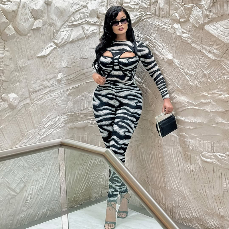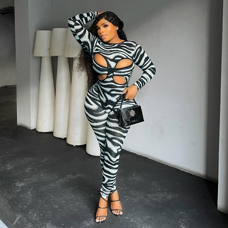This Women's Autumn Round Neck Cut-Out Long Sleeve Bodysuit Pants Set Design Made Of High Quality Polyster And Spandex Material. It Is Stretchy, Durable And Comfortable. Cheap Sexy Jumpsuits For Women Has Long Been a Party Favorite. Global Lover Provide a Rich Selction Of Sequin, Beaded, See Through Mesh, Leopard, Floral Lace, Leather, Velvet, Tight And Fitted Wholesale Jumpsuit Without Moq Limit.