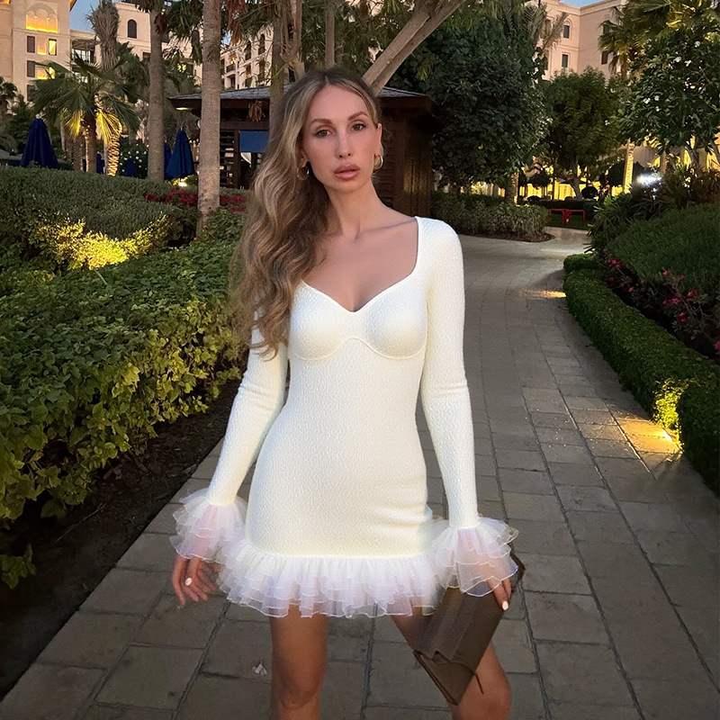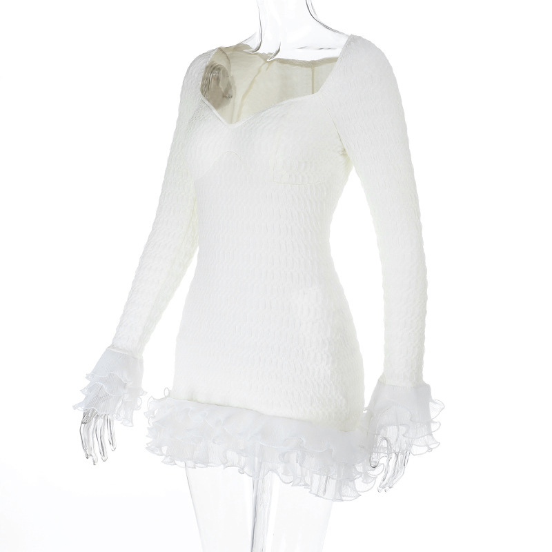 Copy| Product Name | Women's Autumn Textured Lace Trim Long Sleeve Slim Fit Dress |