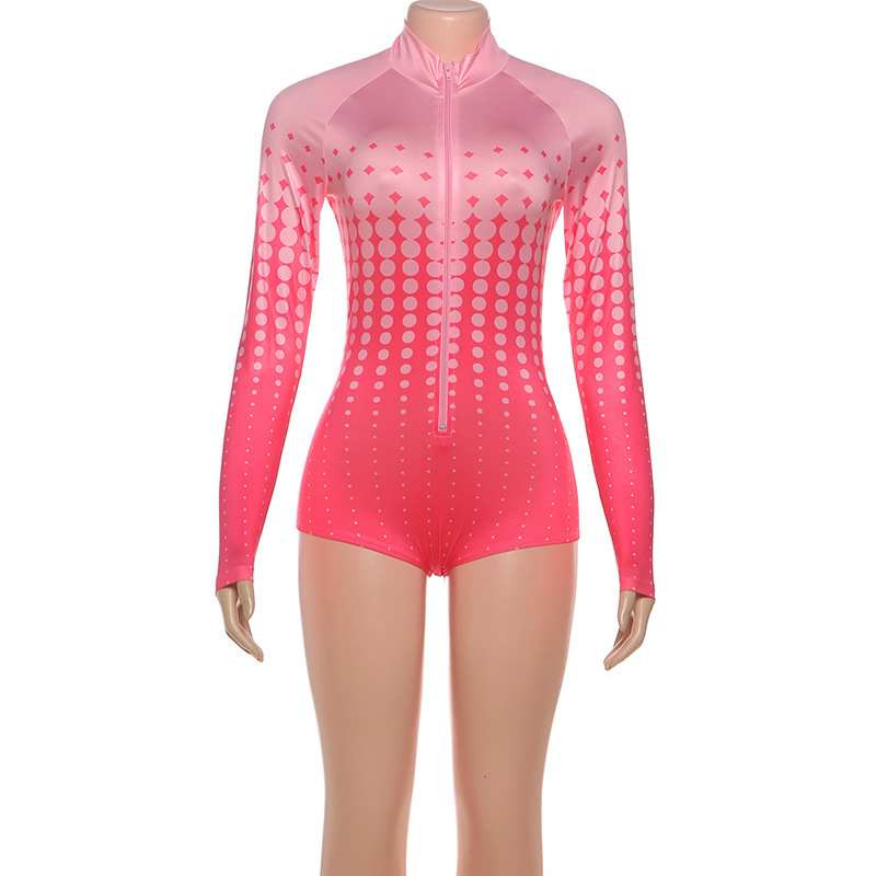 This Women's Autumn Winter Fashion Print Long Sleeve Stand Collar Zipper Slim Jumpsuit Design Made Of High Quality Polyster And Spandex Material. It Is Stretchy, Durable And Comfortable. It Is The Favorite Item For Summer. Wholesale Sexy Long Sleeve Playsuit Has Long Been a Party Choice. Global Lover Provide a Rich Selection Of Sequin, Beaded, See Through Mesh, Leopard, Floral Lace, Leather, Velvet, Denim, Tight And Fitted Wholesale Jumpsuit On Trend. When You Need More Buy Women’s Playsuits At Whoelsale Price For Resale, Global Lover Wholesale Women Apparel Online Store Is Your Best Choice.