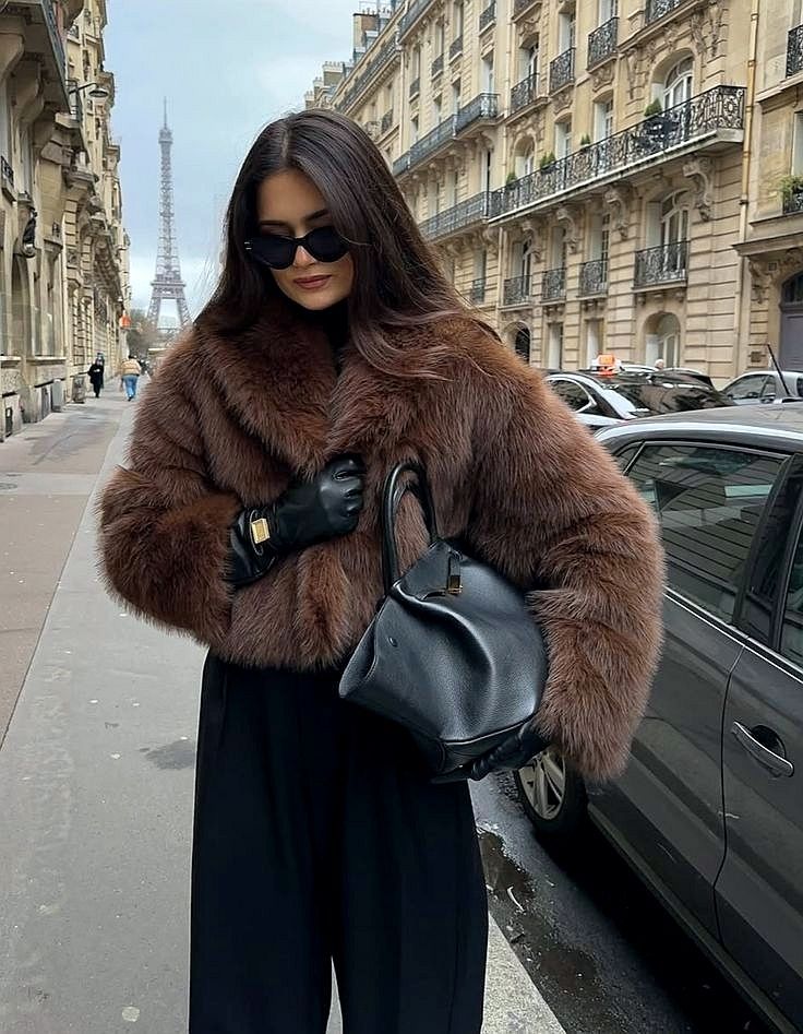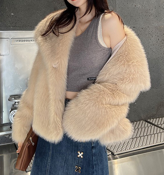 Copy| Product Name | Women's Autumn Winter Short Fashion Faux Fur Plush Turndown Collar Coat |