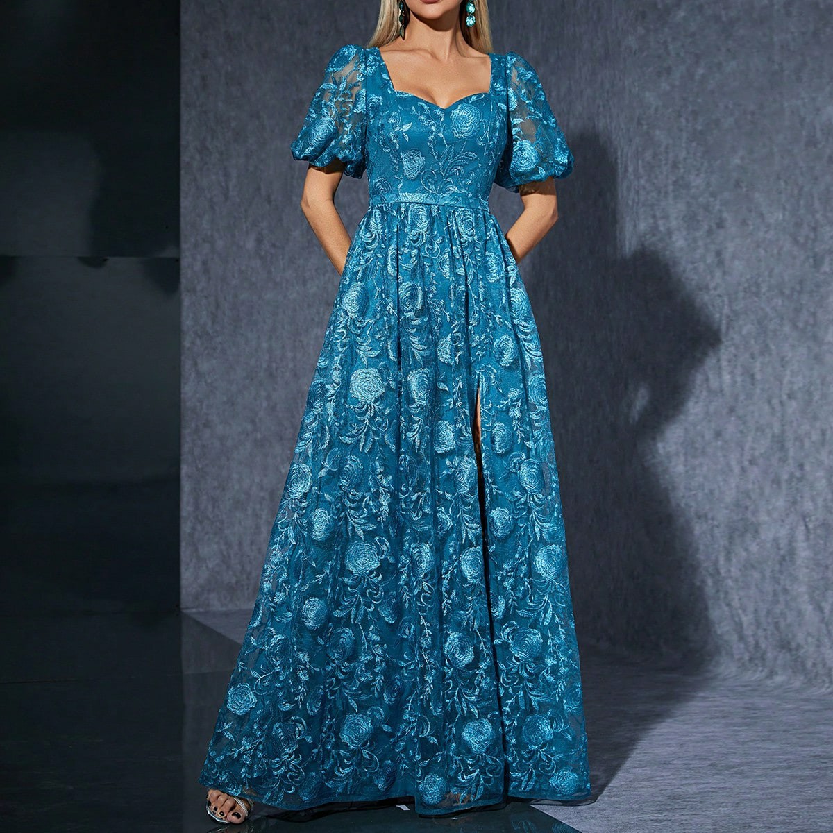 This Women's Blue Puff Sleeve Sweet Formal Party Slit Evening Dress Design Made Of Good Quality Polyster And Spandex Material, Which Is Stretchy, Durable And Comfortable. The Long Evening Dresses And Gowns Is Always The Mainly Choice For All Kinds Of Parties, Cocktail, Prom, Events, And Dating Occasions. Evening Gowns At Global Lover Comes With Huge Selections - Sequins, Beaded, Satin, Velvet, Lace.... When You Need Wholesale Evening Dresses, Global Lover Wholesale Women Garment Online Shop Is Your One-Stop Online Shopping Choice.