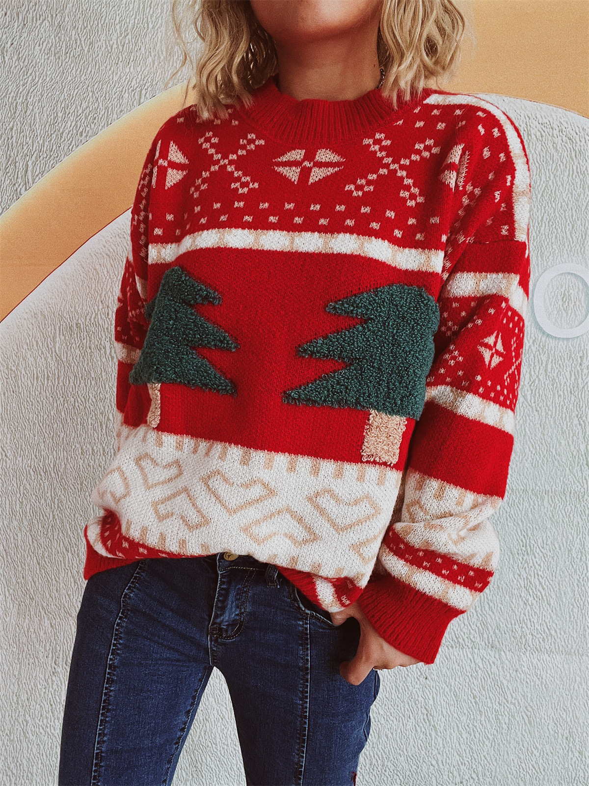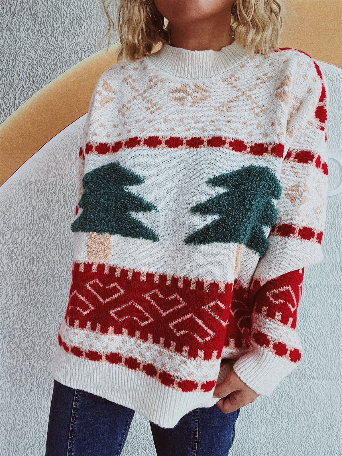 Copy| Product Name | Women's Casual Round Neck Knitted Christmas Cartoon Jacquard Holiday New Year Sweater |