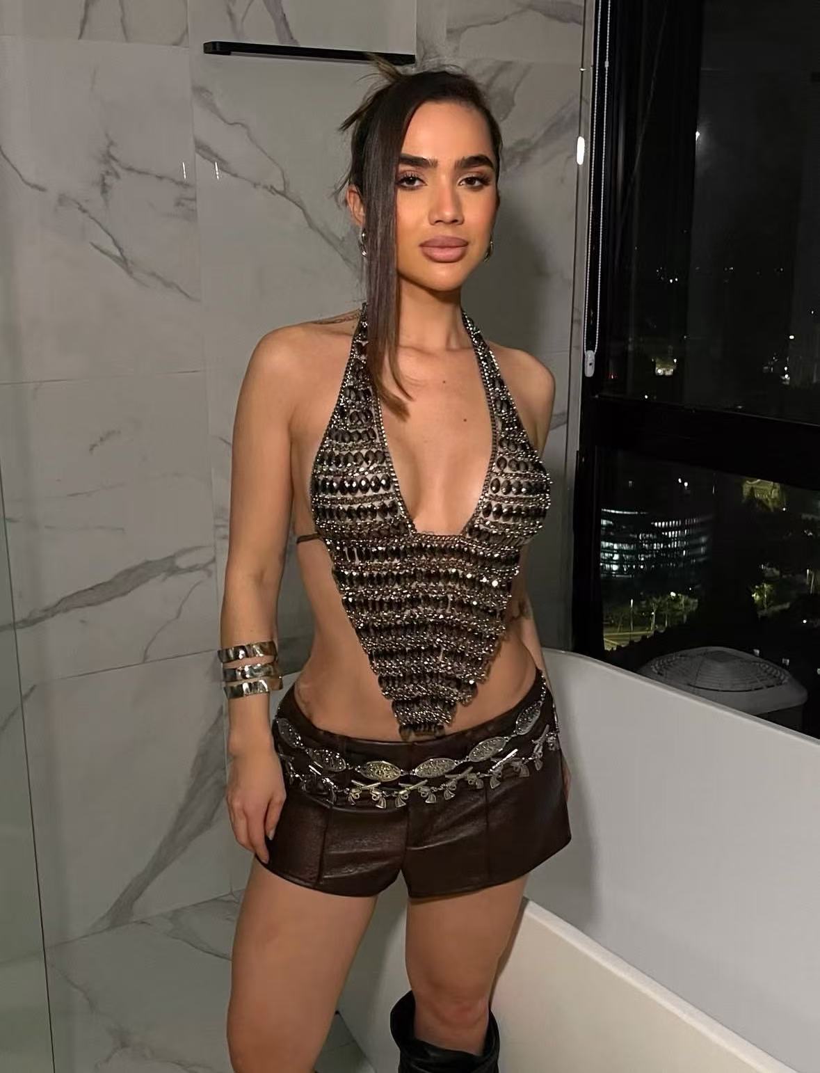 This Women's Chest Chain Body Chain Black Gemstone Bustier Holiday Outfit Sparkling Diamond Bra Top Is Soft And Comfortable. Camisole Tank Top Is a Must-Have Item For Your Closet, It Can Be Worn Inside In Autumn/Spring And Matching a Perfect Jacket Or Blazer, But Also Can Be Worn Individually For a Seaside Trip In Summer. Global Lover Offer Wide Range Designs Of Wholesale Tank Tops For Women - From Basics Camisole To Sweater Vest, From Party Sexy Tank Tops To Street Style Tank Crop Top. When You Need More Wholesale Woman Tops, You Can Always Find What You Need On Our Wholesale Women Clothing Online Store.