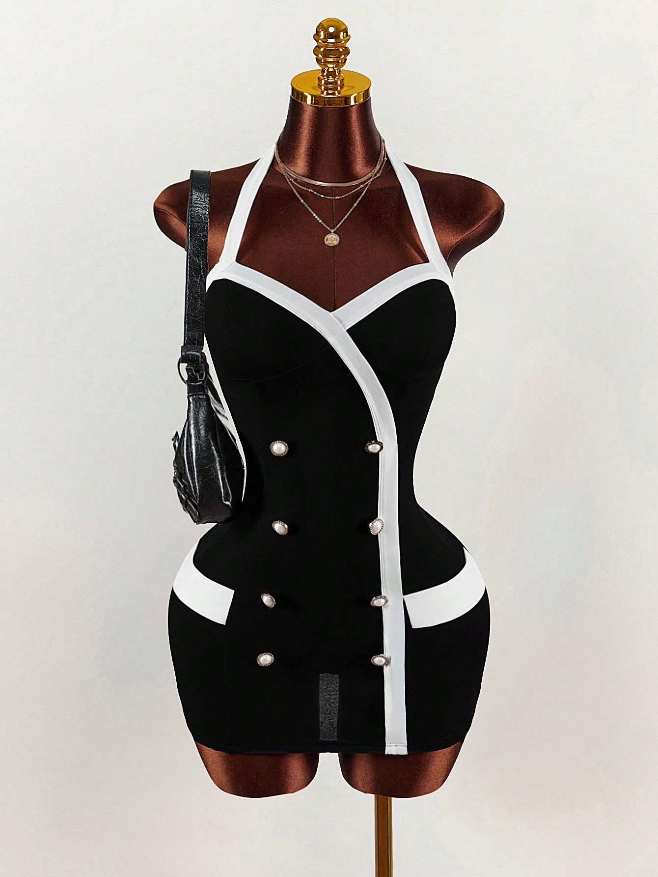 Copy| Product Name | Women's Chic Colorblock Halter Neck Low Back Bodycon Mini Dress |