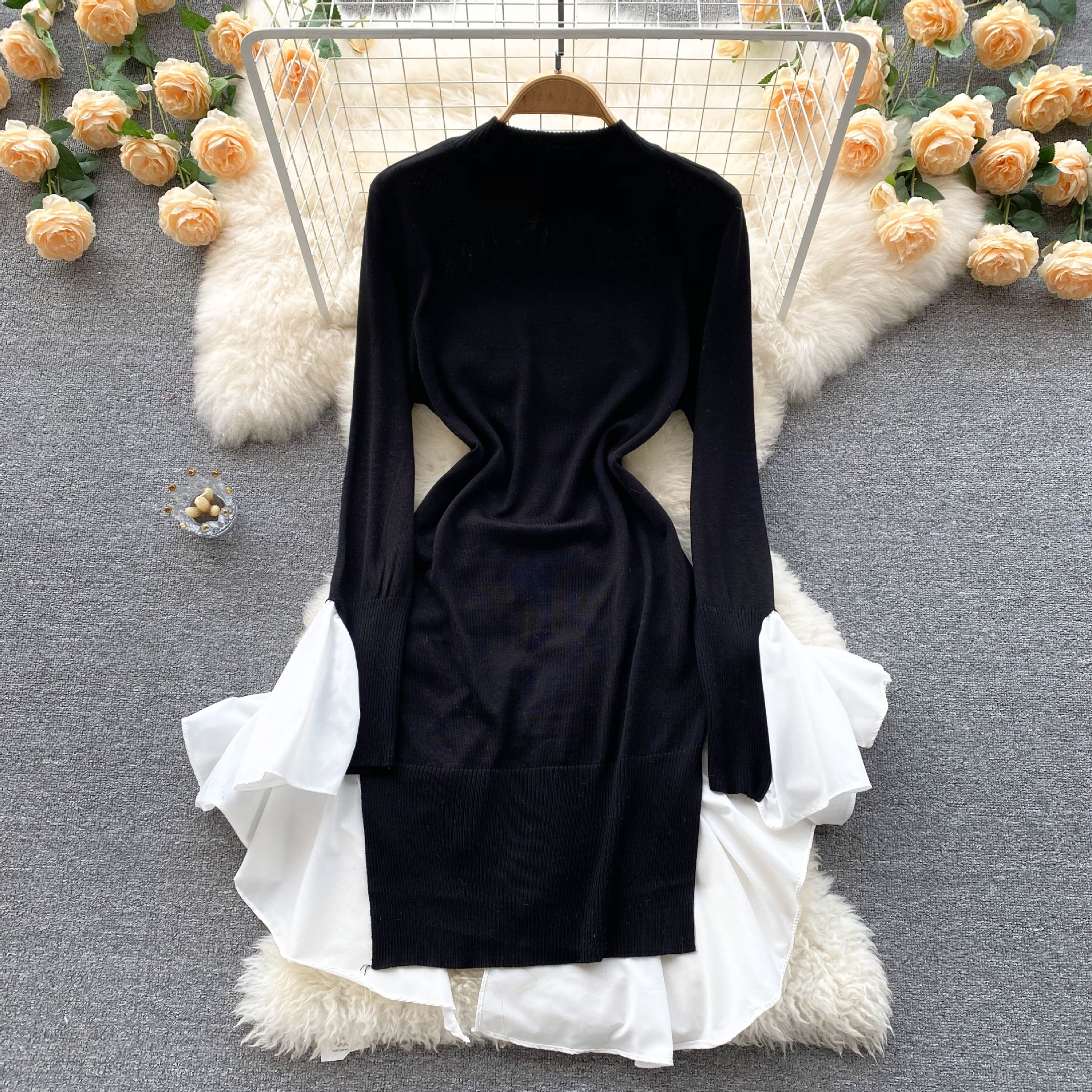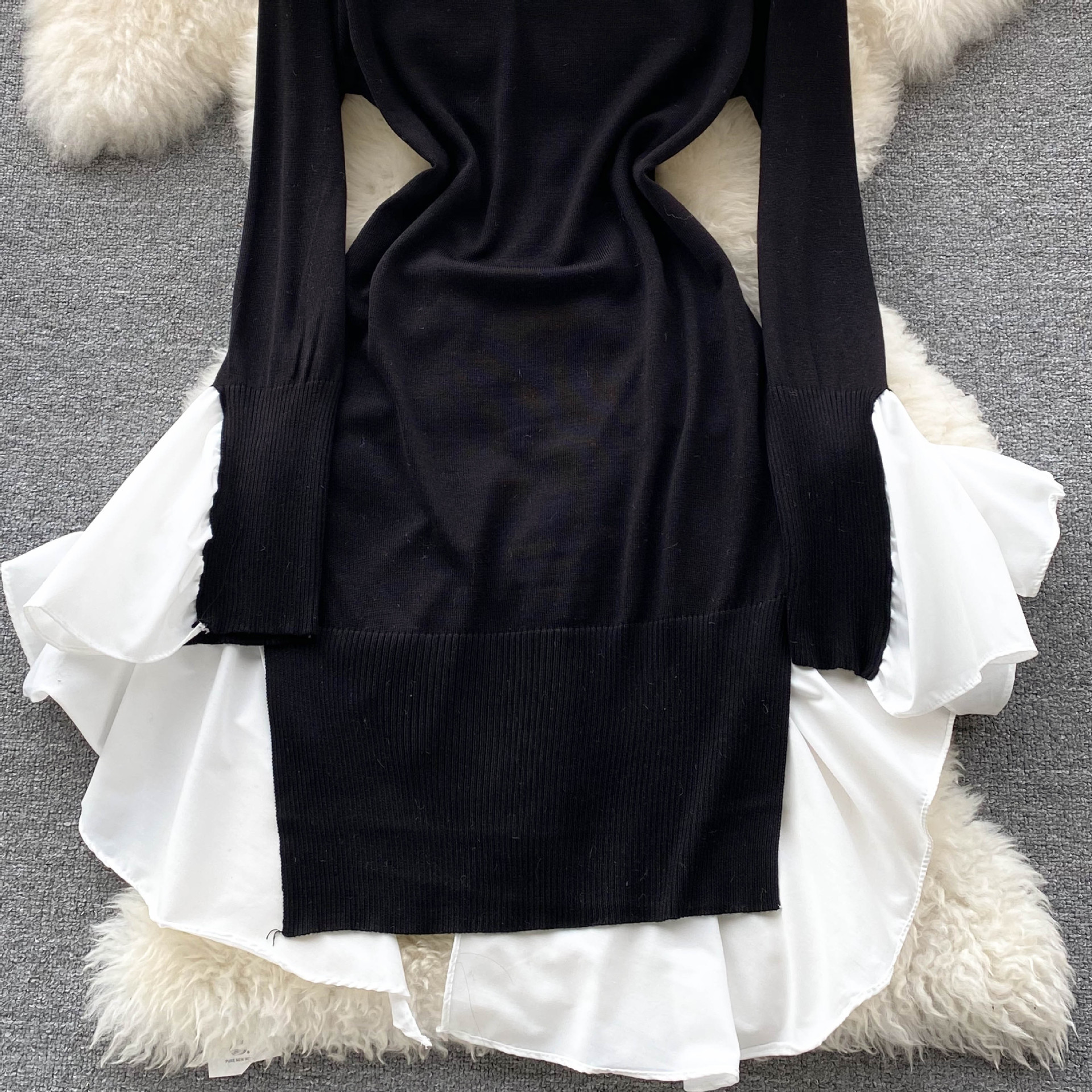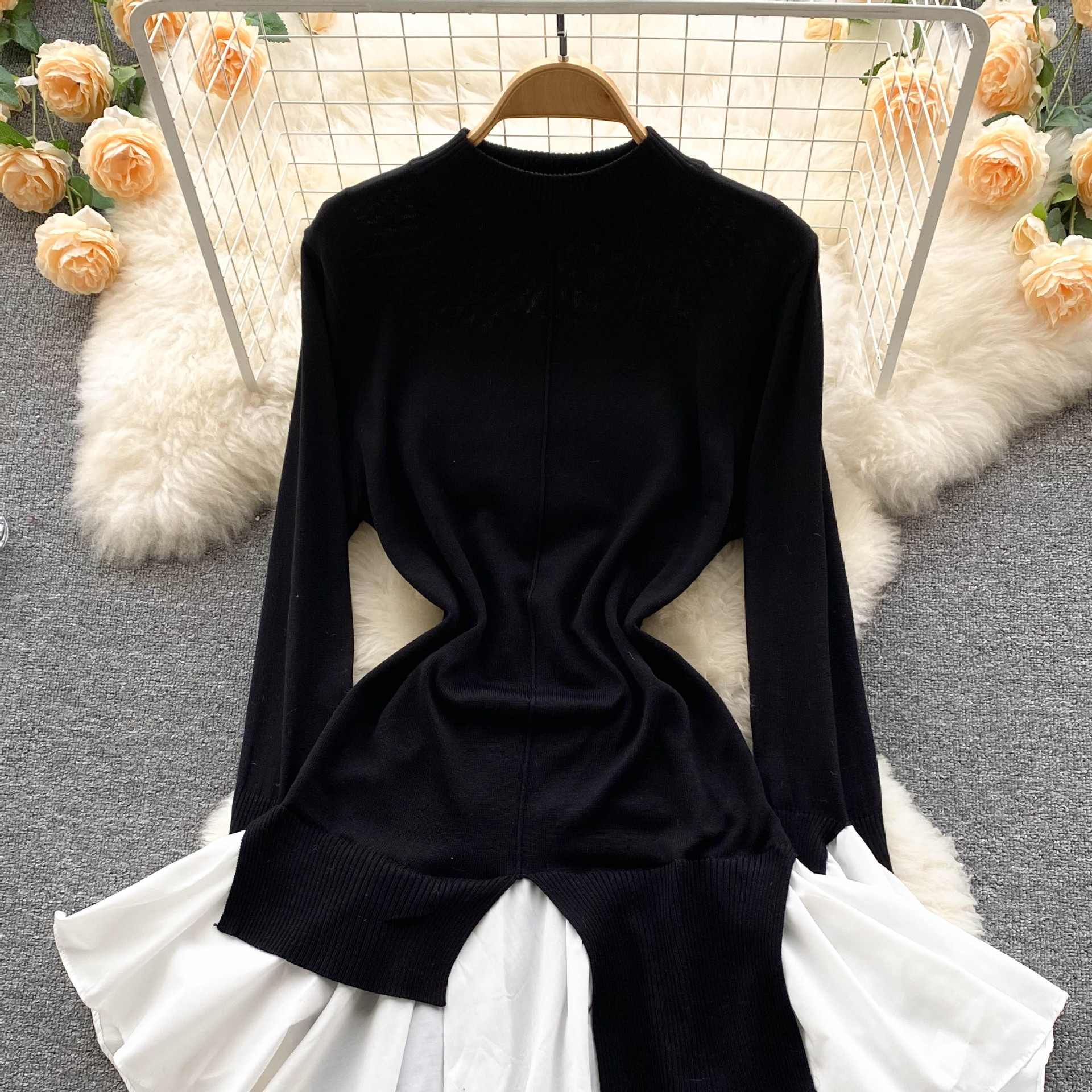 | Product Name | Women's Chic Slim Waist Slim Fit Asymmetric Color-Block Midi Knitted Dress |
