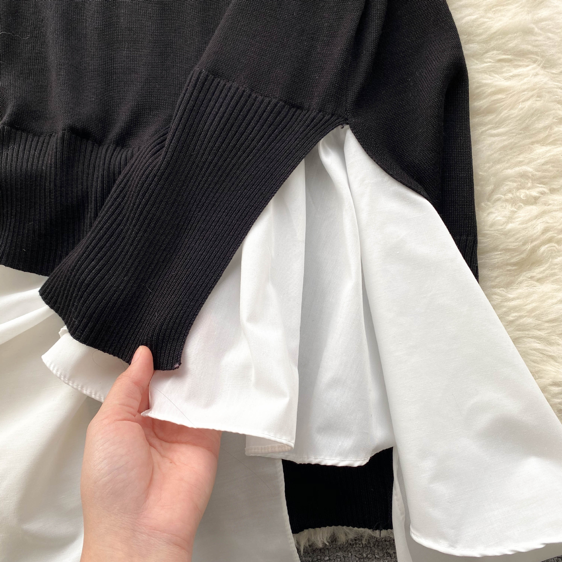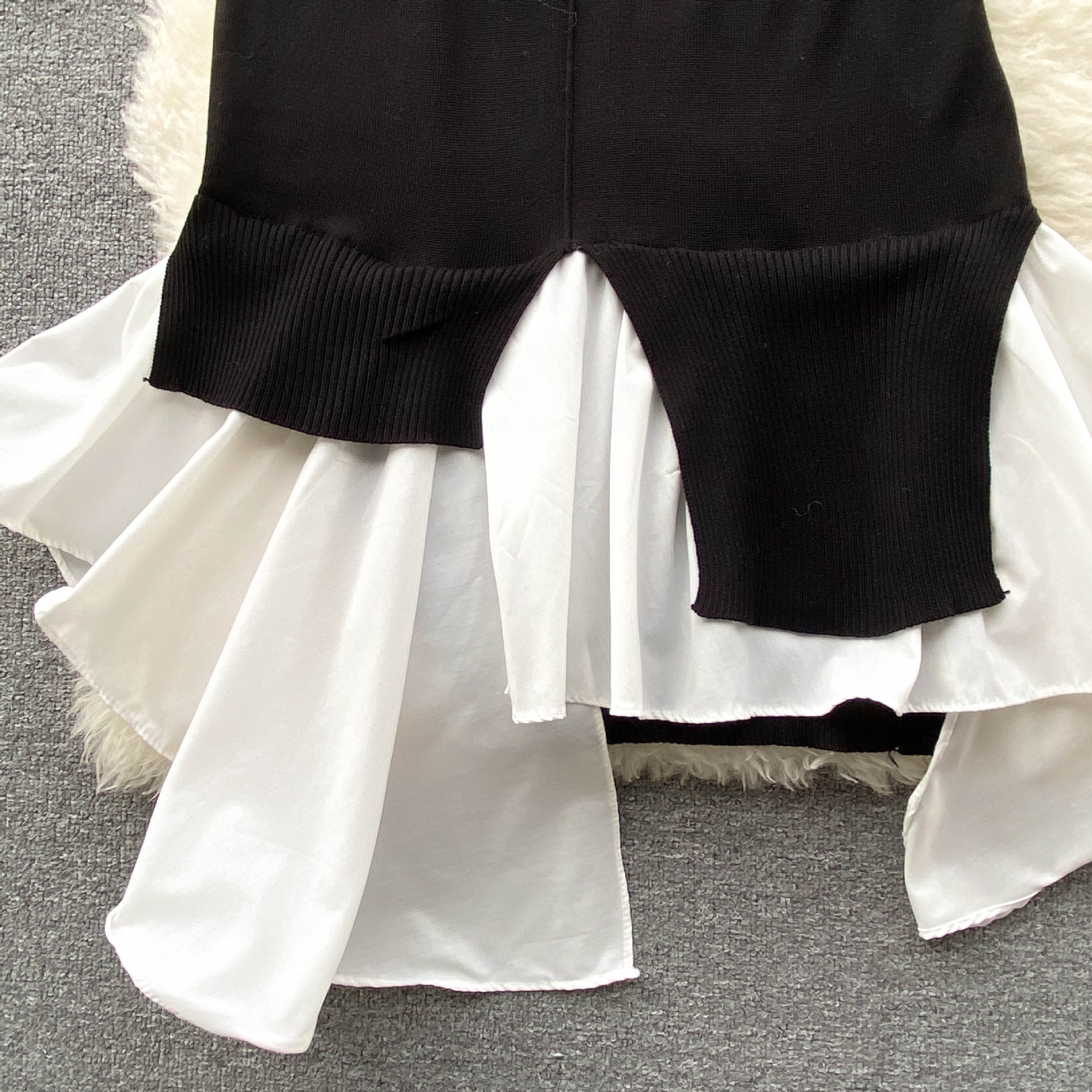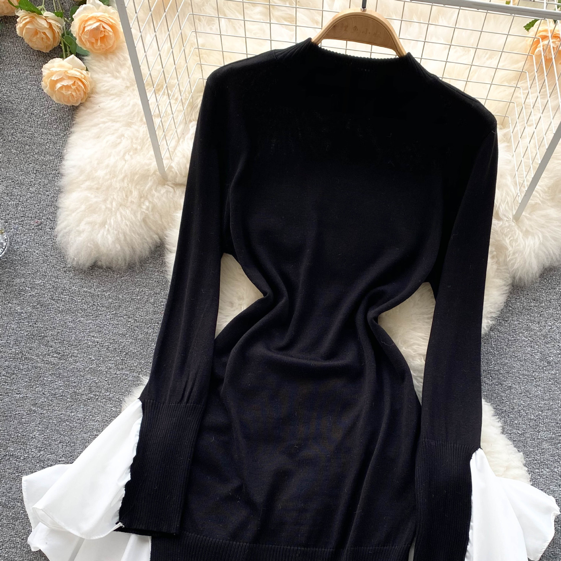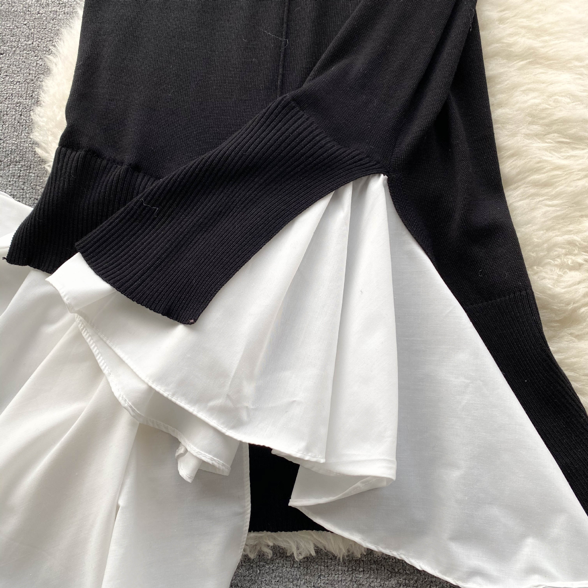 | Product Name | Women's Chic Slim Waist Slim Fit Asymmetric Color-Block Midi Knitted Dress |