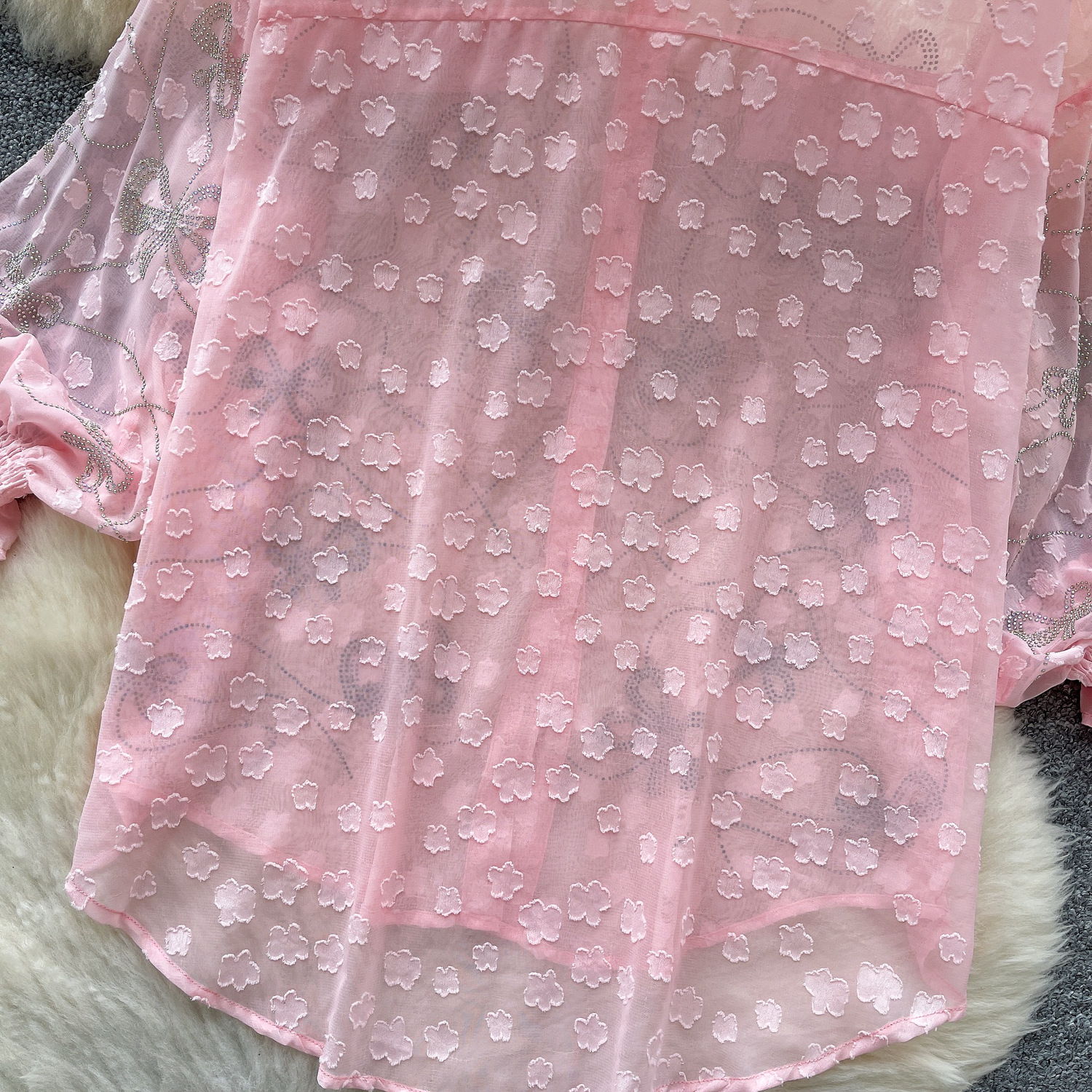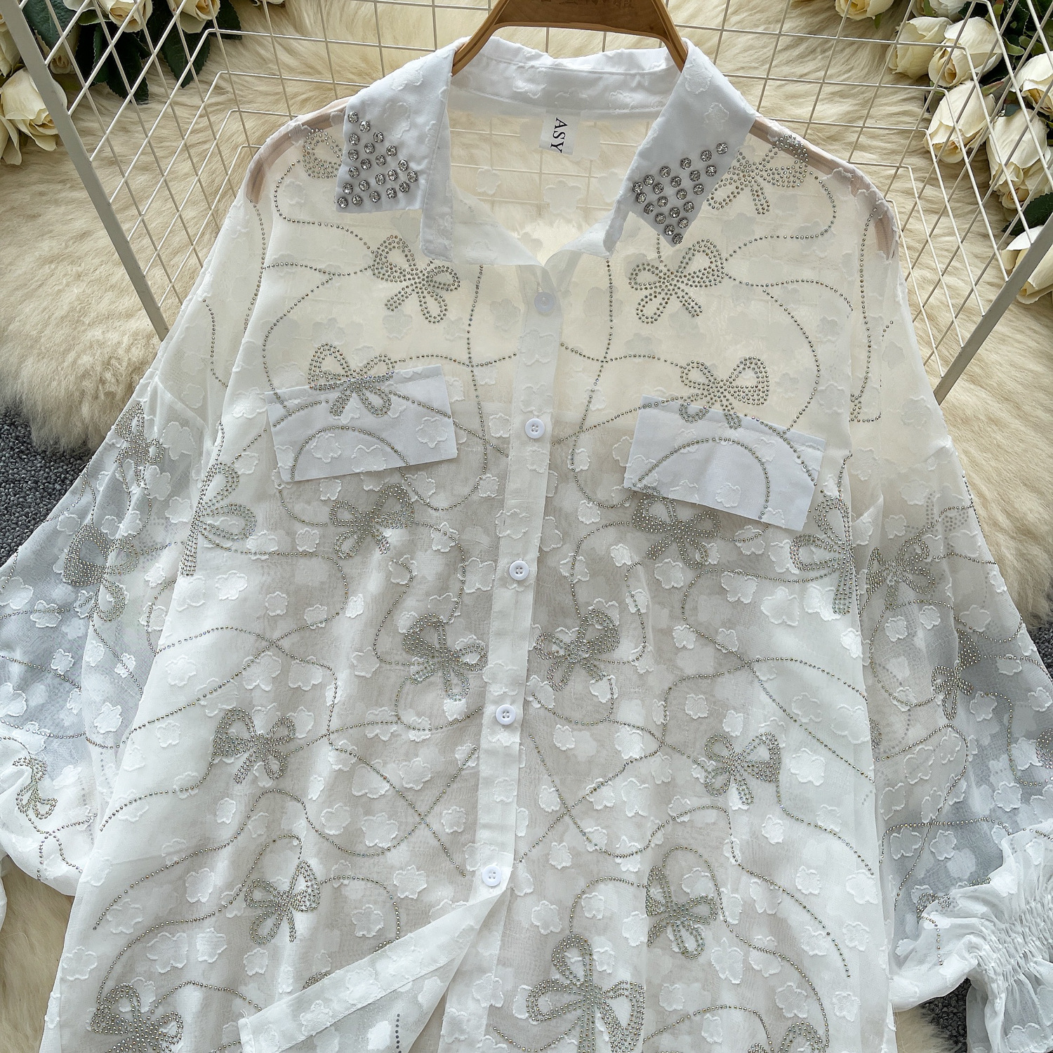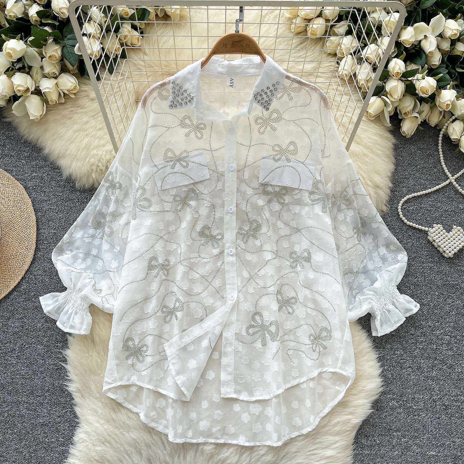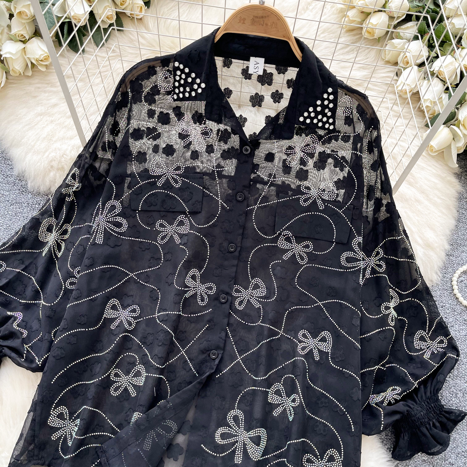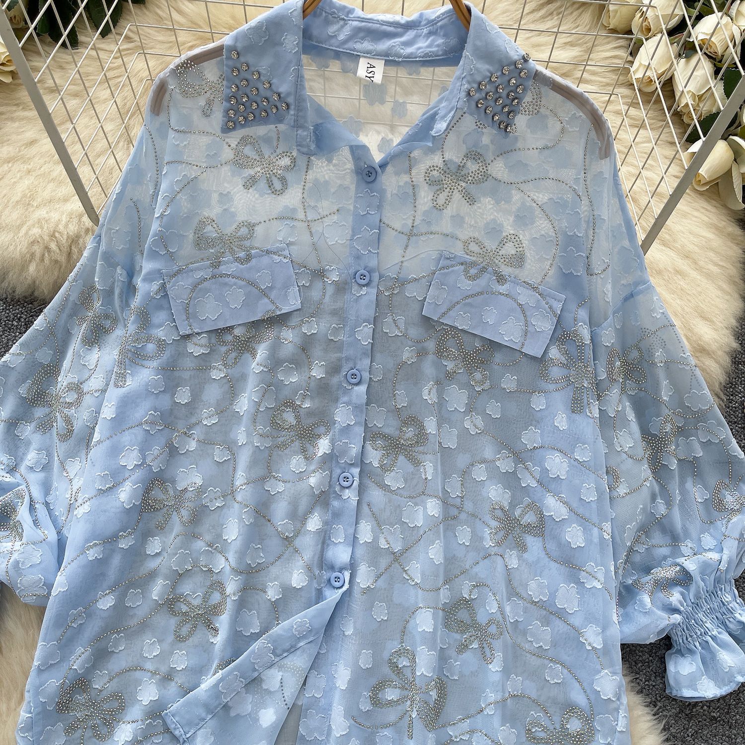 Copy| Product Name | Women's Fashion Butterfly Beaded Thin Loose Chiffon Shirt |