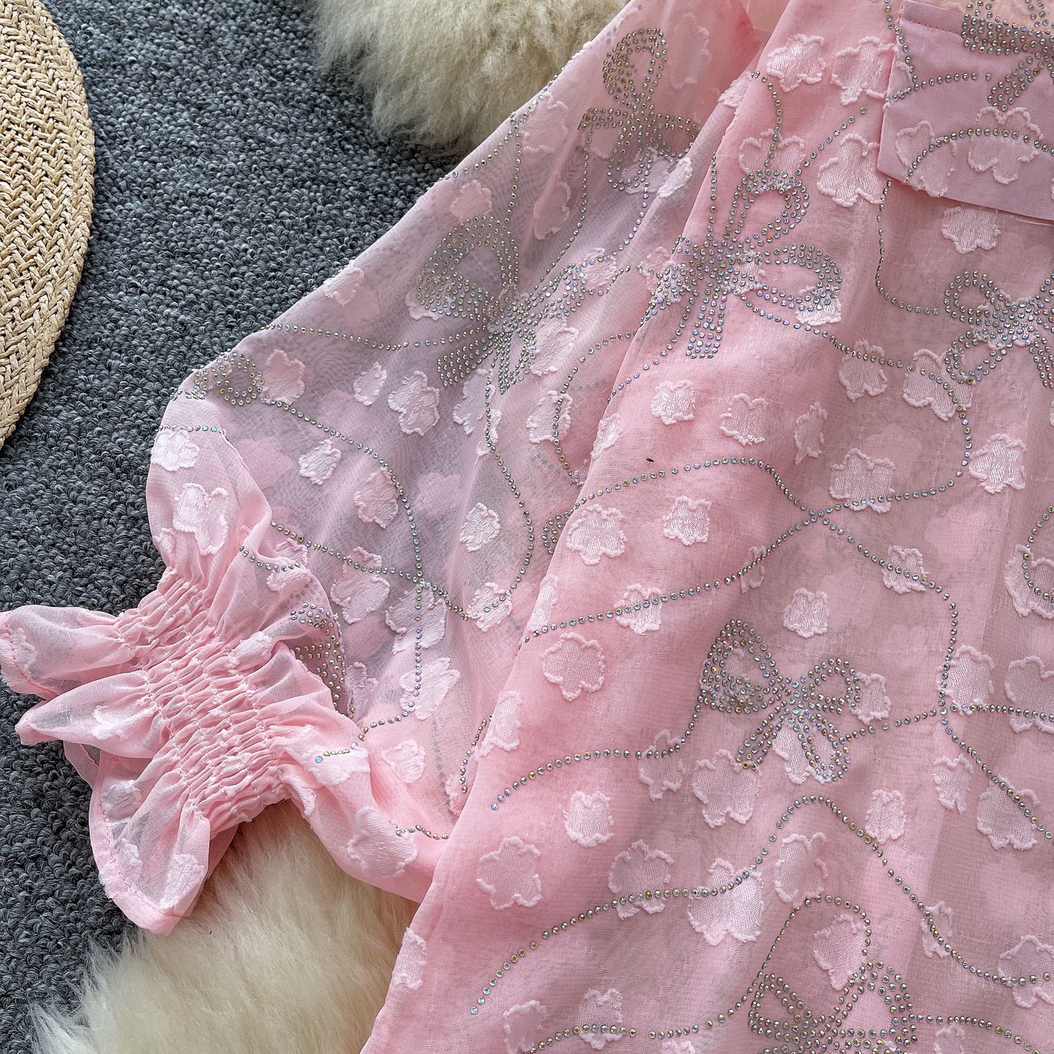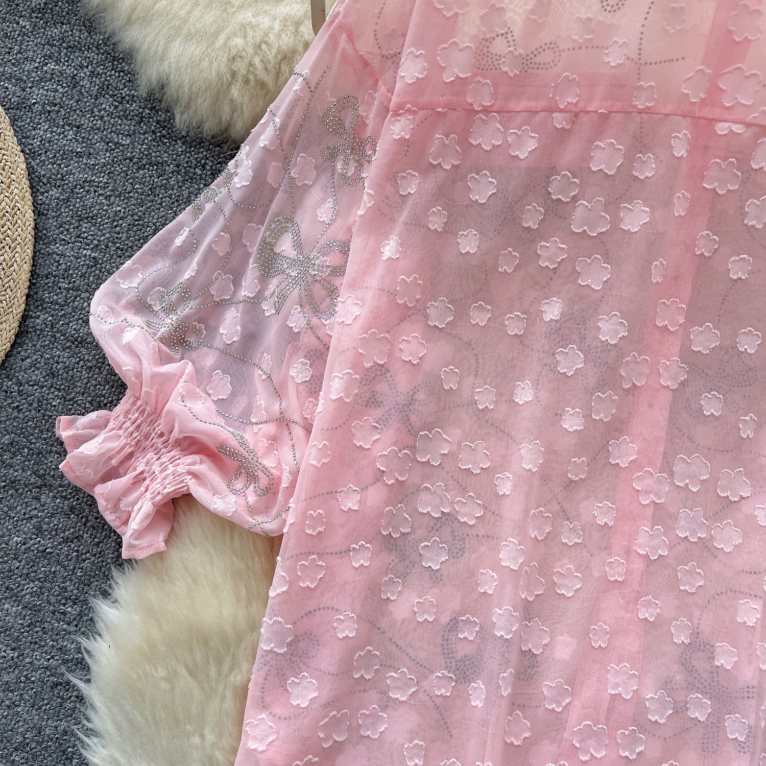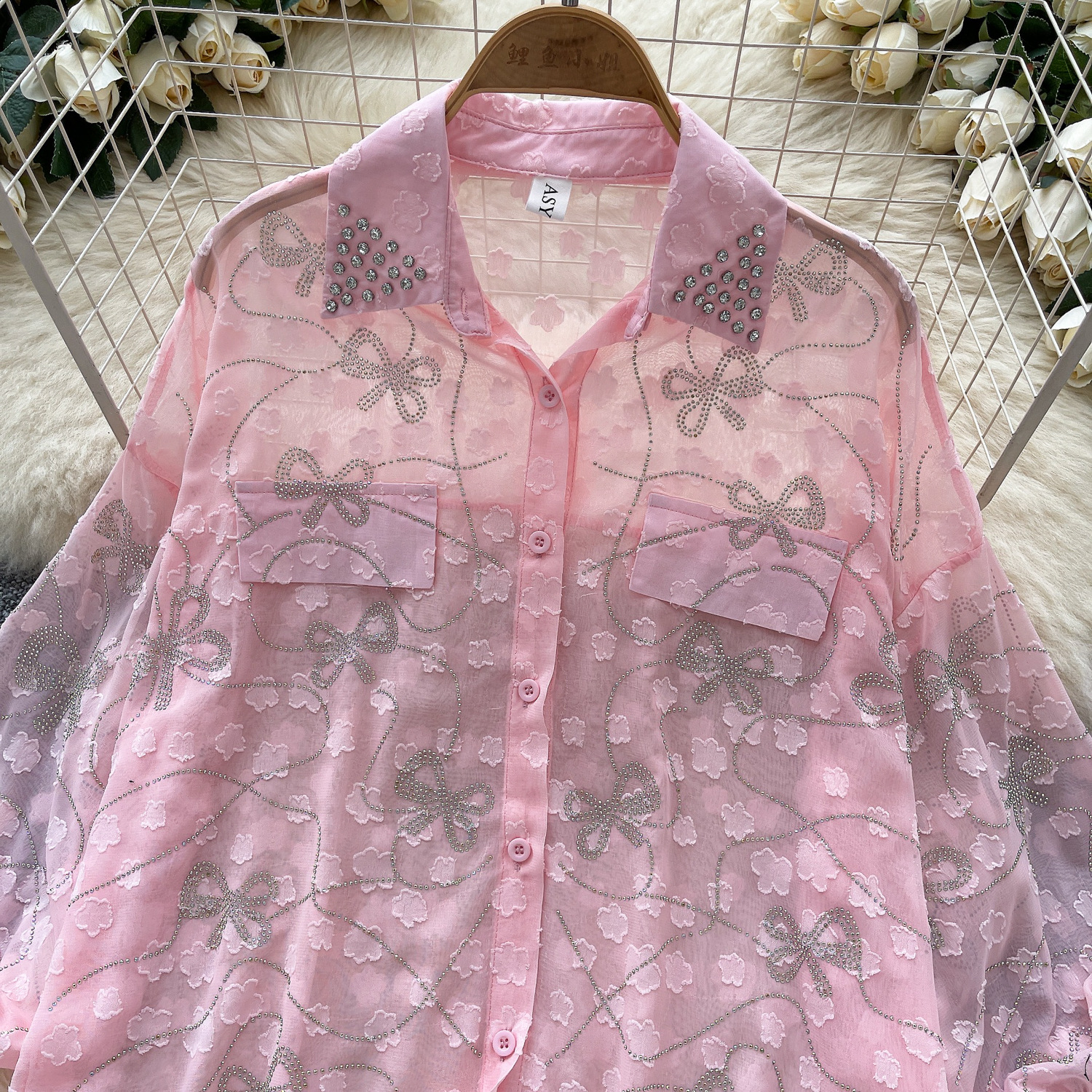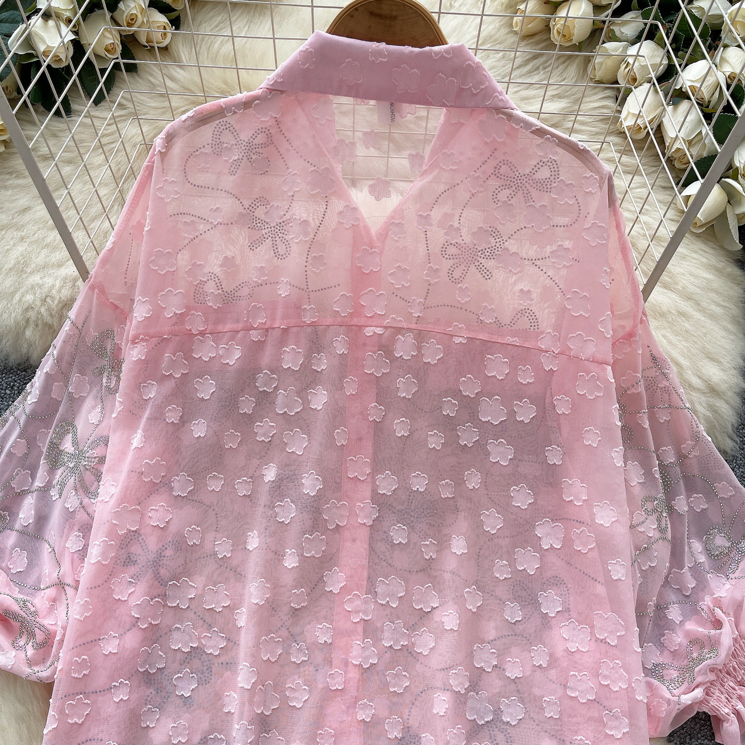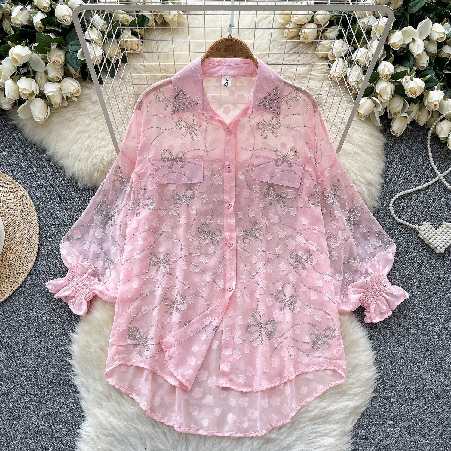 Copy| Product Name | Women's Fashion Butterfly Beaded Thin Loose Chiffon Shirt |