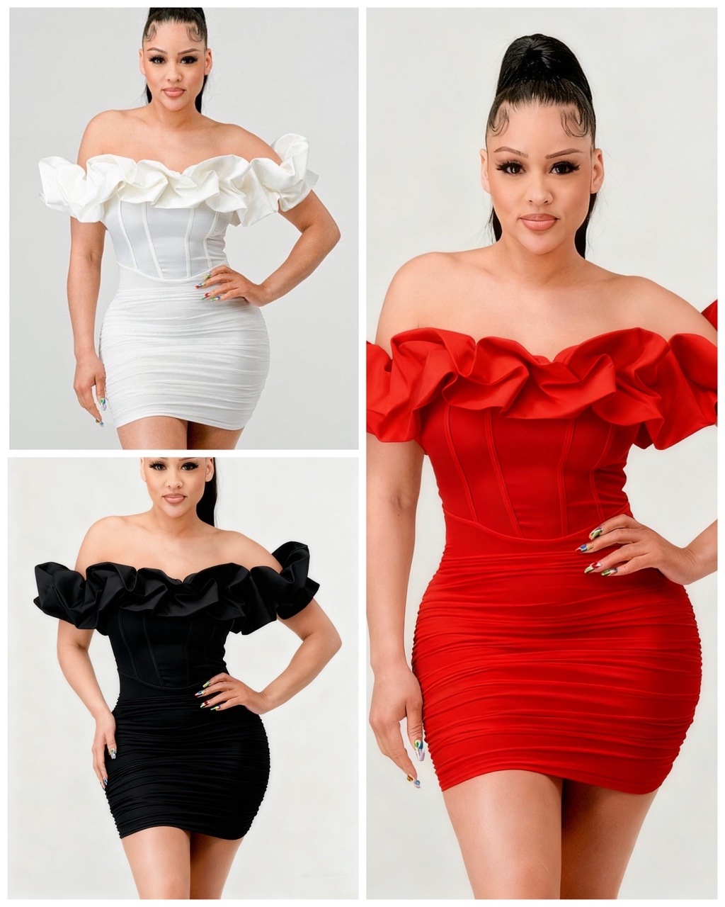 This Women's Fashion Sexy Ruffle Off Shoulder Bodycon Dress Design Made Of High Quality Polyster And Spandex Material. It Come With Good Stretch And Wearing Comfortable And Feeling Freedom. The Tight And Fitted Dress Is The Most Popular Options From Party Girls. Shop Bodycon Dresses At Global Lover And Find Amazing Designs Sequins, Beaded, Diamond, Crystals, Lace... Global Lover Wholesale Women Dresses Online Store Help All Kinds Of Business Owner To Grow Their Business By Providing Vary Dresses At Cheap Price And No Moq Limit.