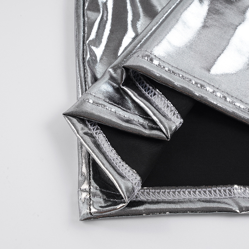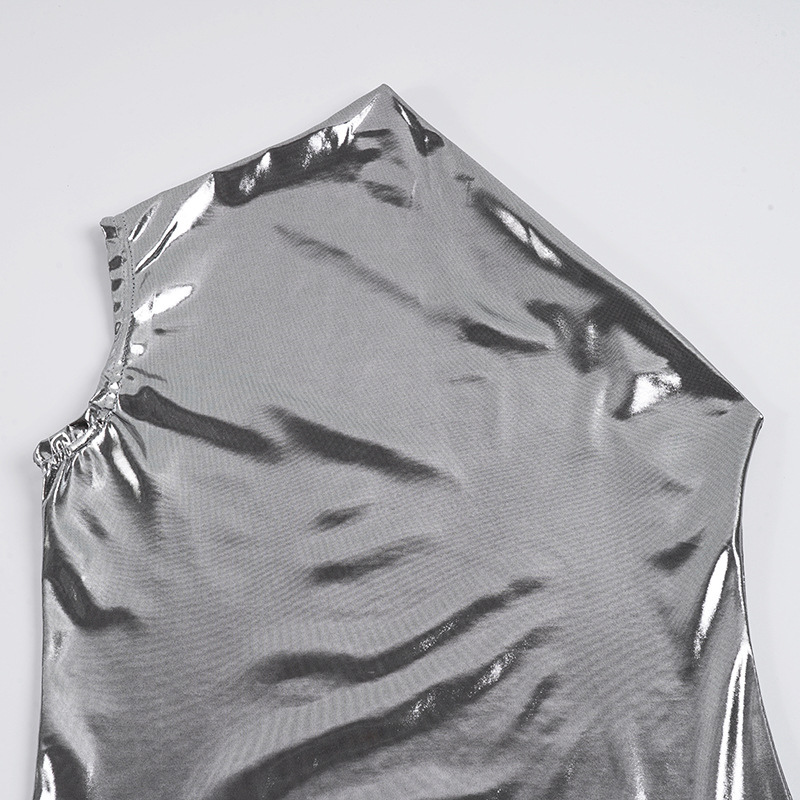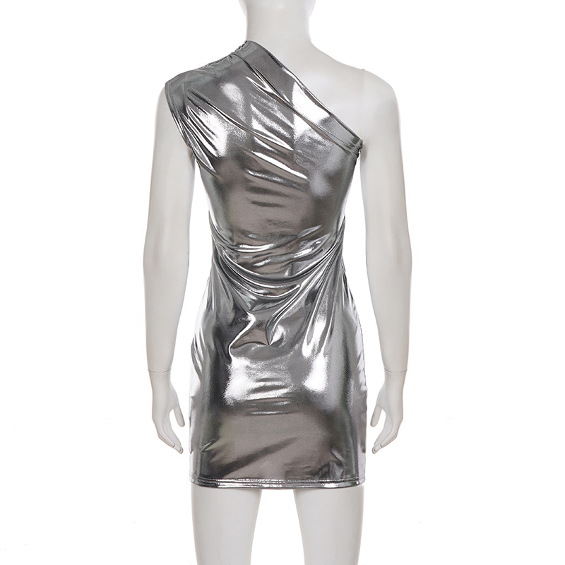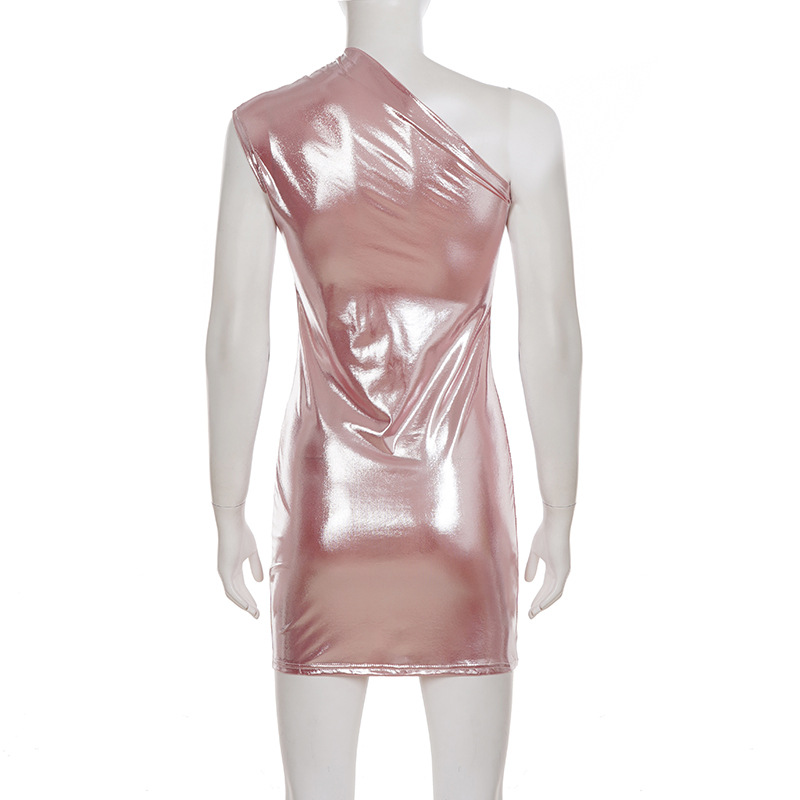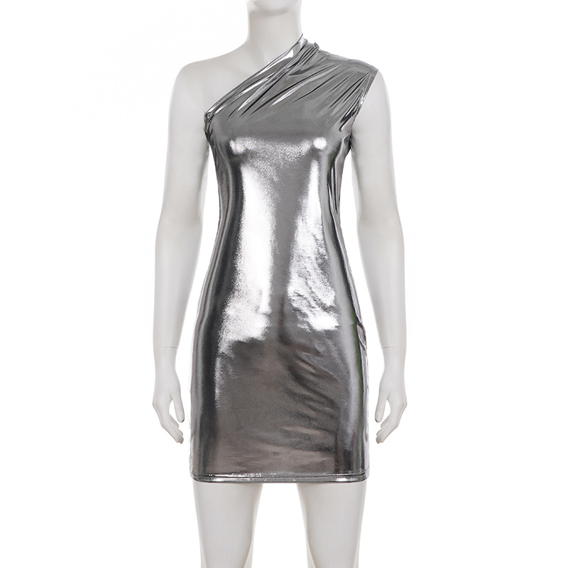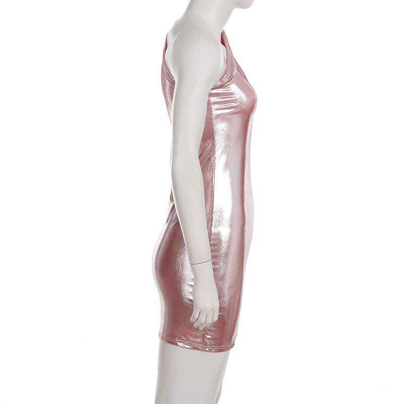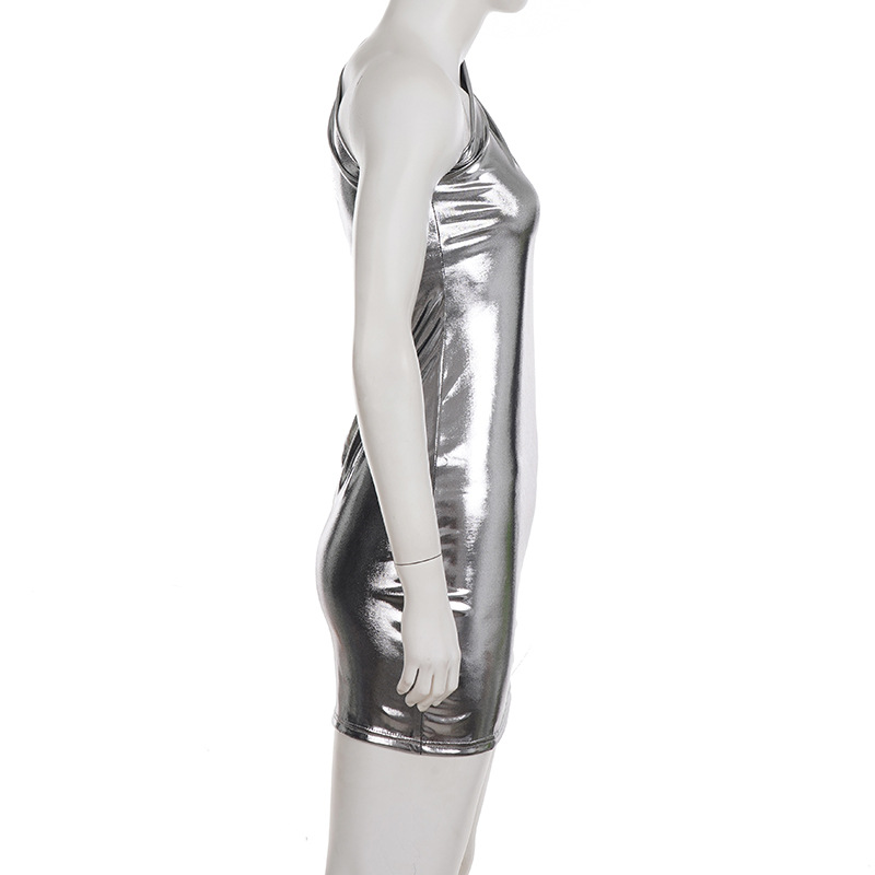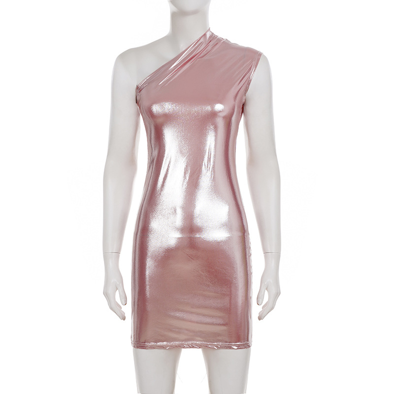 Copy| Product Name | Women's Fashion Shiny Slash Shoulder Sleeveless Bodycon Mini Dress |