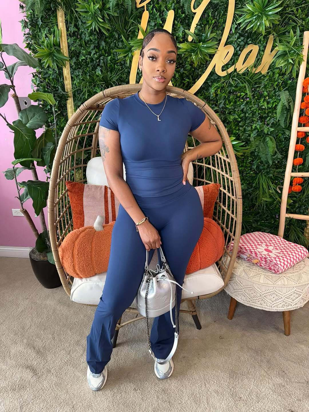 This Women's Fashion Solid Color Slim Sexy Yoga Stretch Short Sleeve Top And Pants Set Design Made Of High Quality Polyster And Spandex Material. It Is Stretchy, Durable And Comfortable. It Is a Must-Have Outfit For All Seasons. Wholesale Two Piece Pant Sets Can Solve Your Collocation Troubles. Explore More 2 Piece Pants Set On Global Lover Wholesale Women Clothing Online Store.