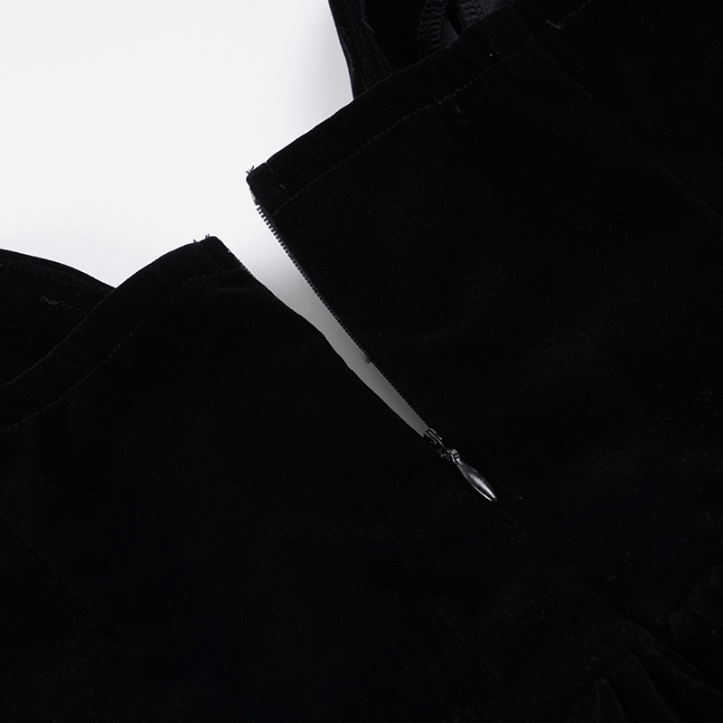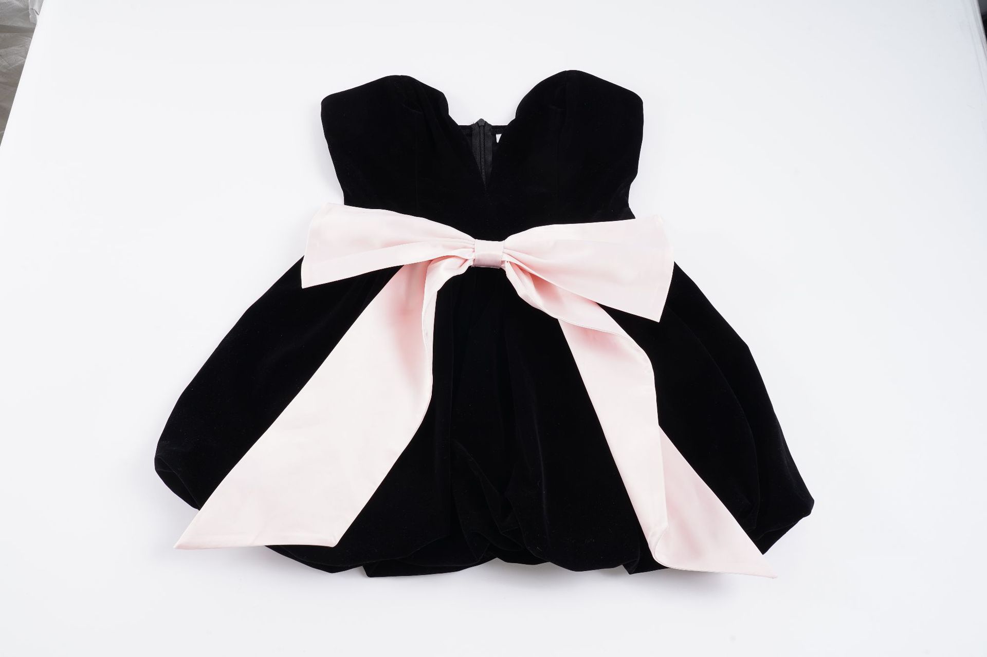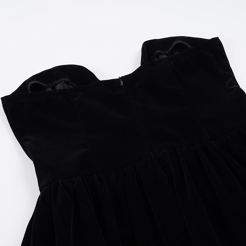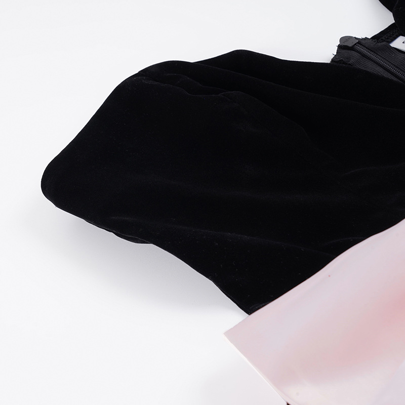 Copy| Product Name | Women's Fashion Strapless Velvet Colorblock Bow Patchwork Slim Waist Puffy Dress |