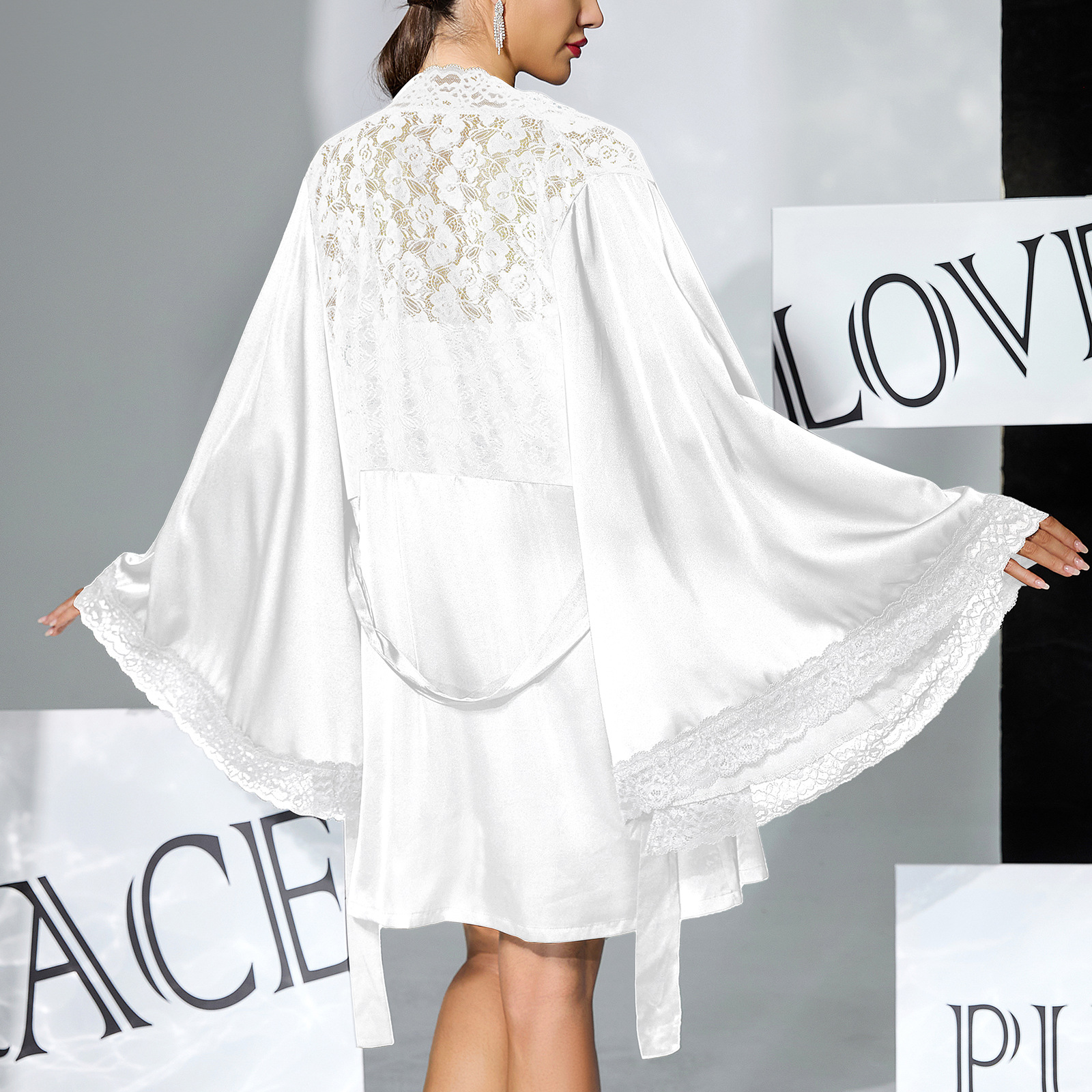 Copy| Product Name | Women's Lace Black and White Sexy Camisole Nightgown Two-Piece Set |