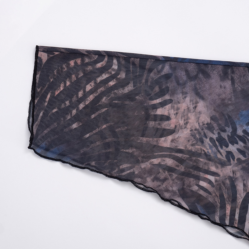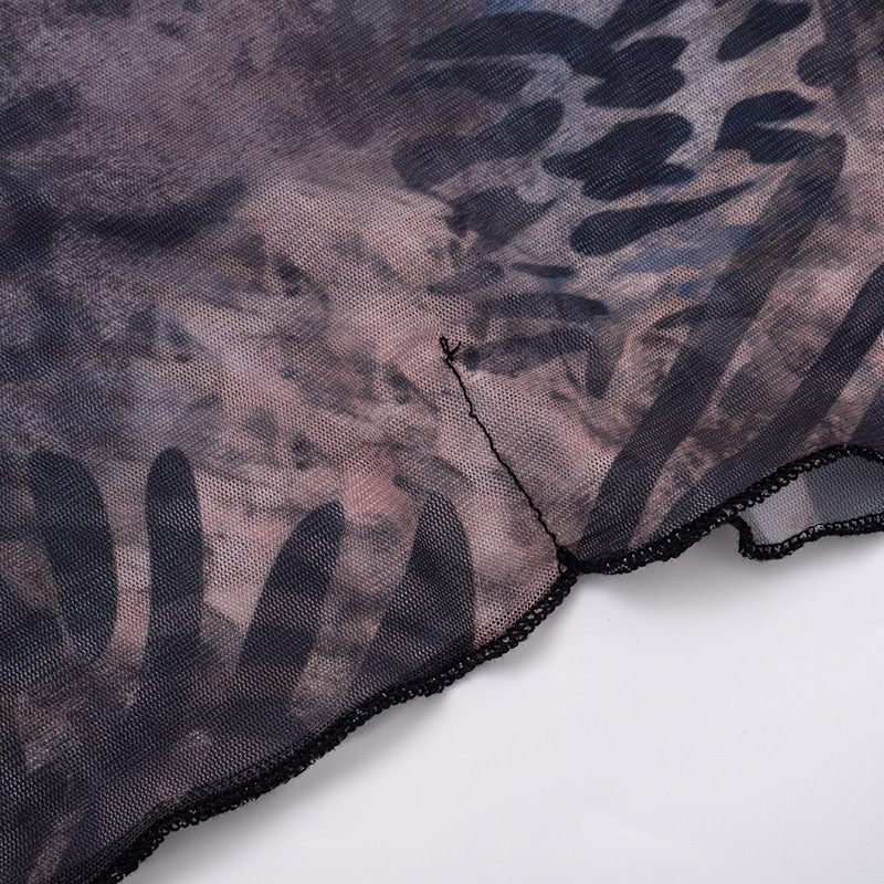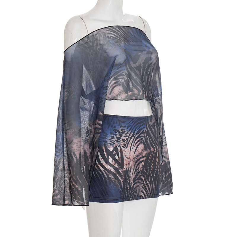 Copy| Product Name | Women's Leopard Print Mesh Slash-Shoulder Long Sleeve Top + Tight-Fitting Short Skirt Two-Piece Set |