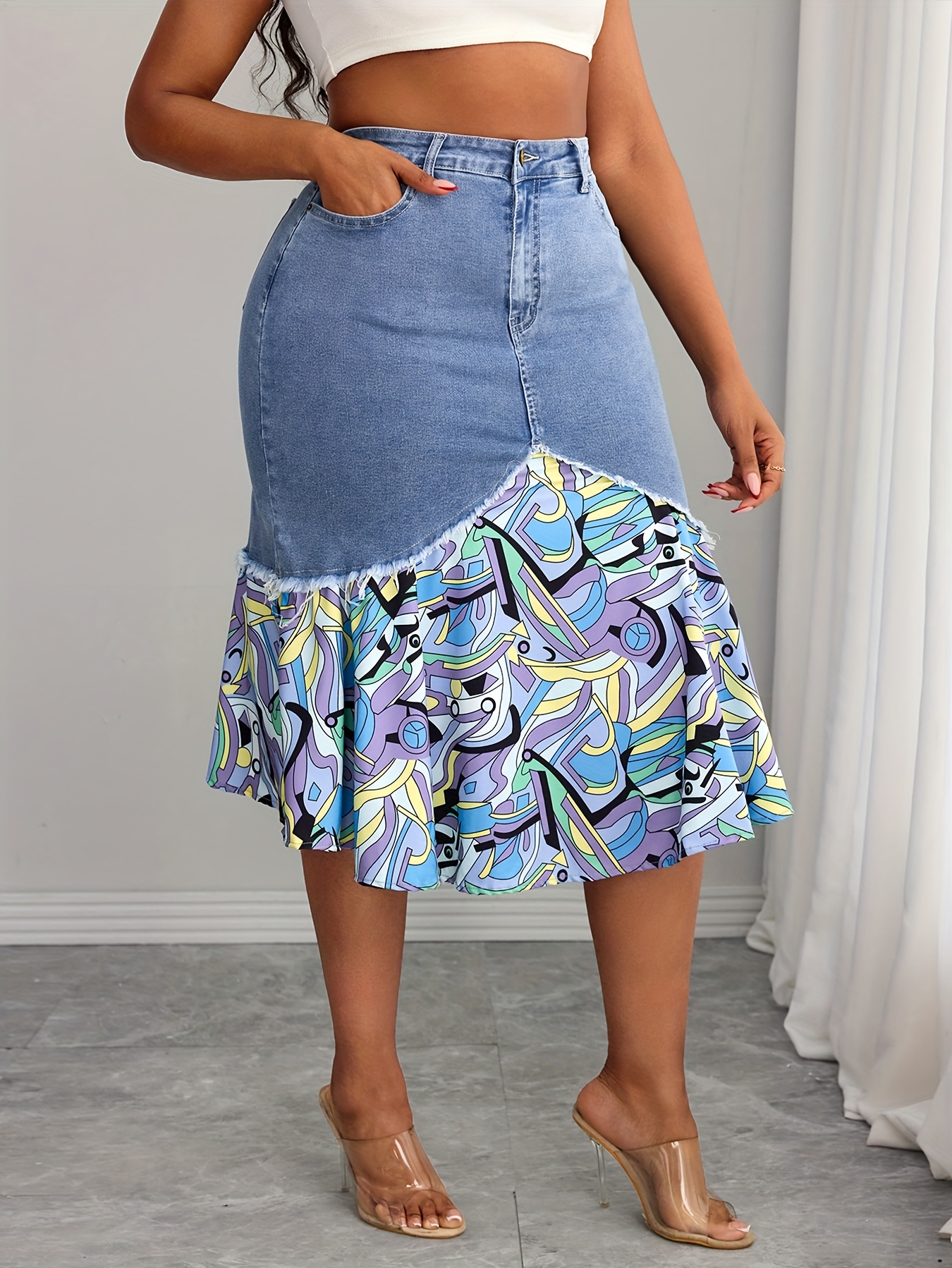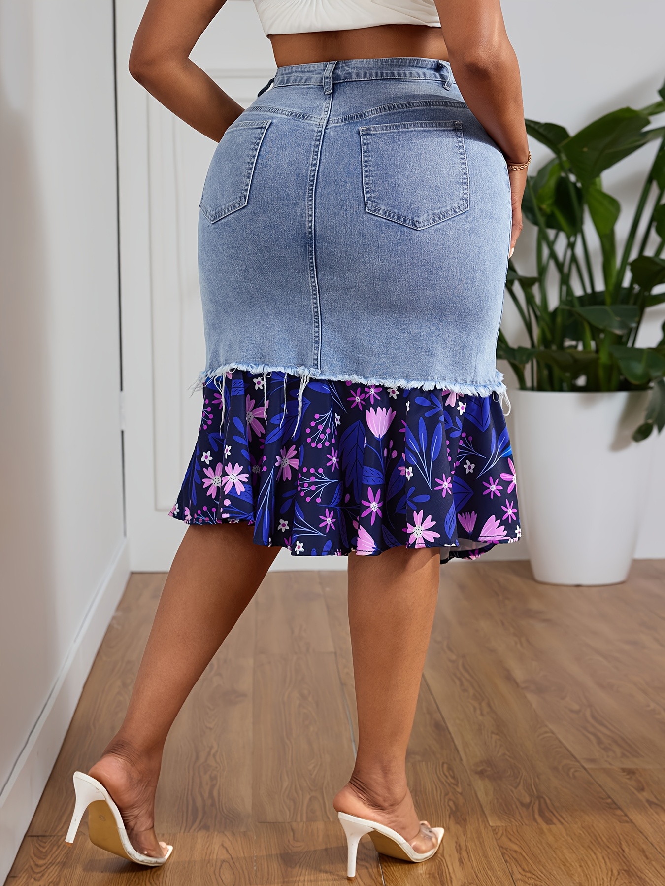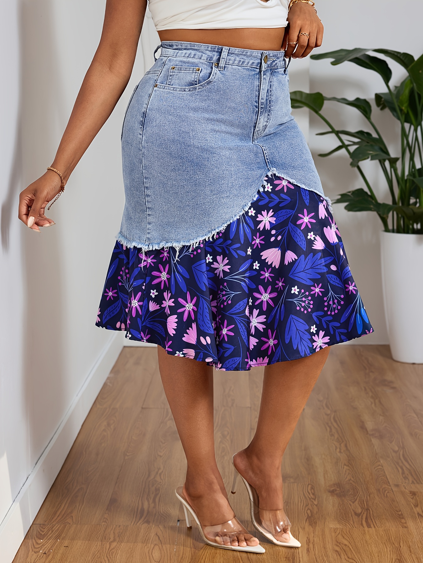 Copy| Product Name | Women's Plus Size Fashion Floral Patchwork Denim Skirt |