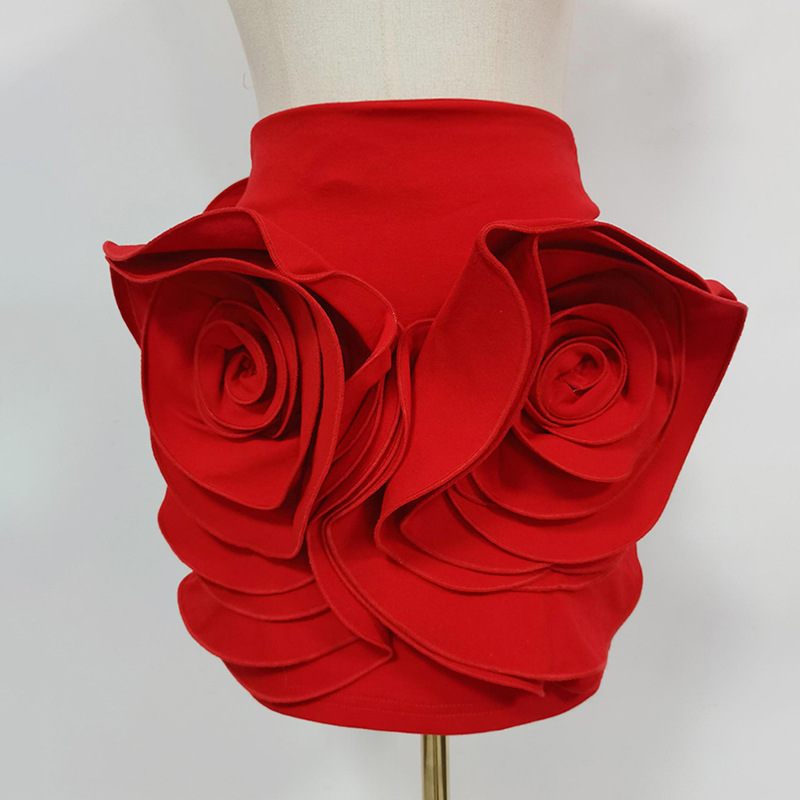 Copy| Product Name | Women's Red High Waist Chic Floral Fashion Short Skirt |