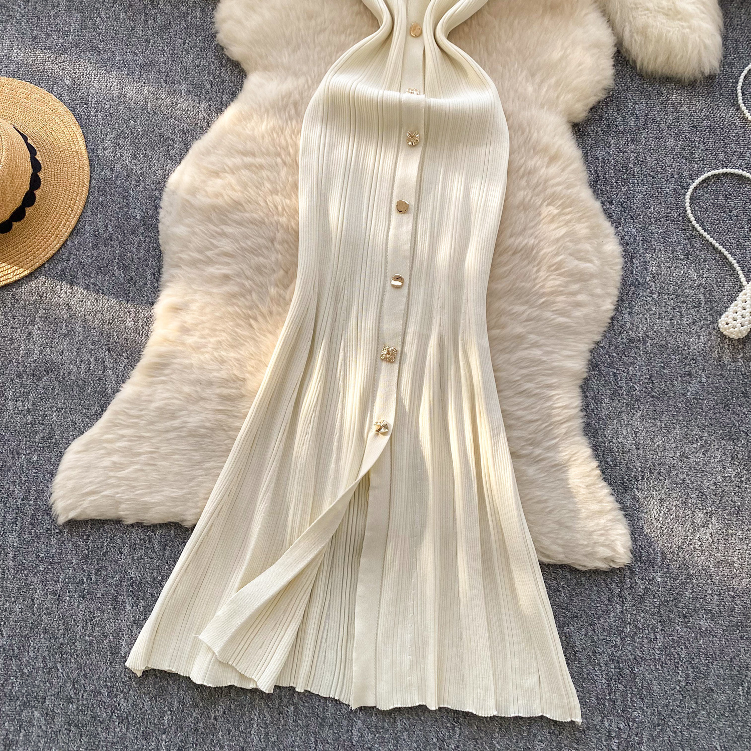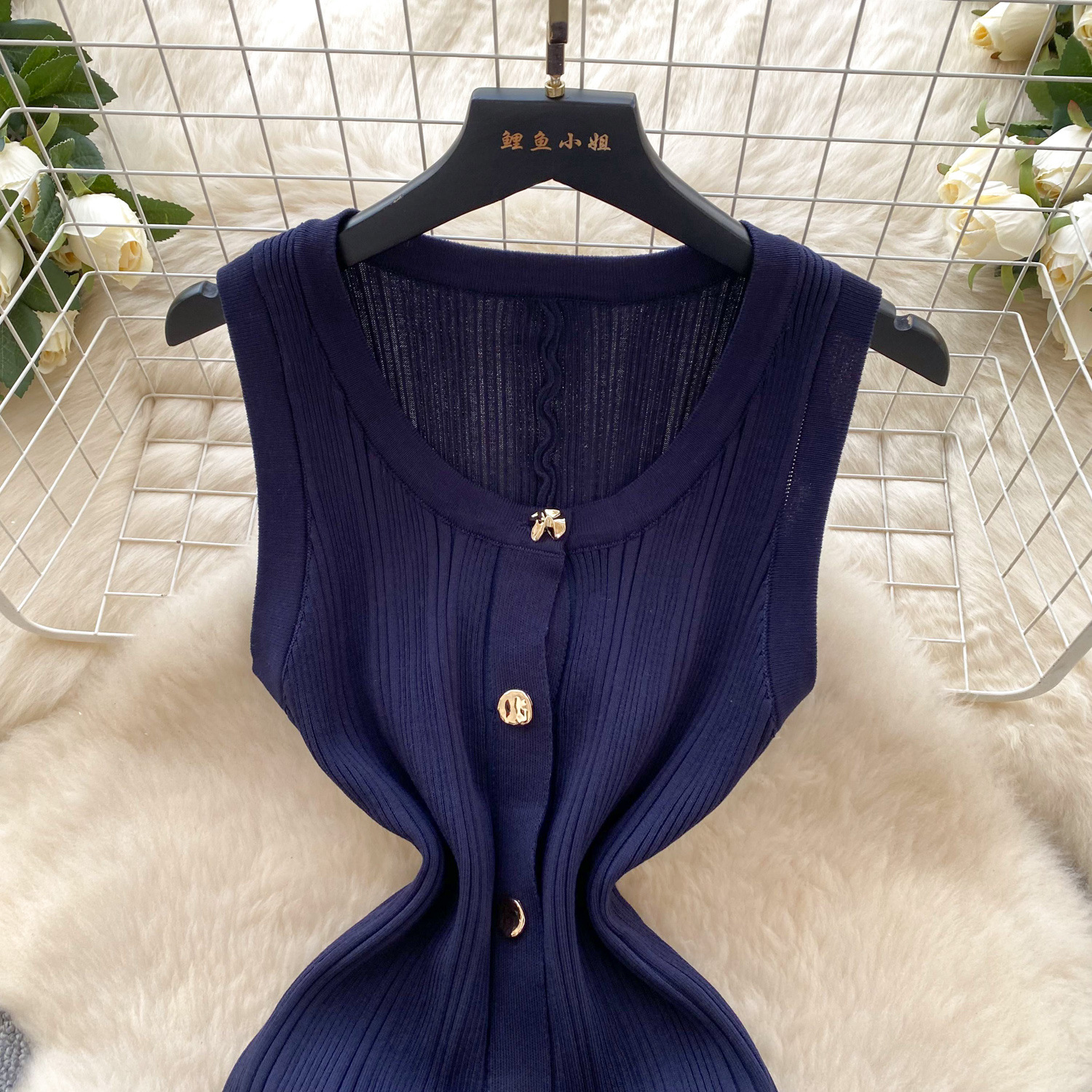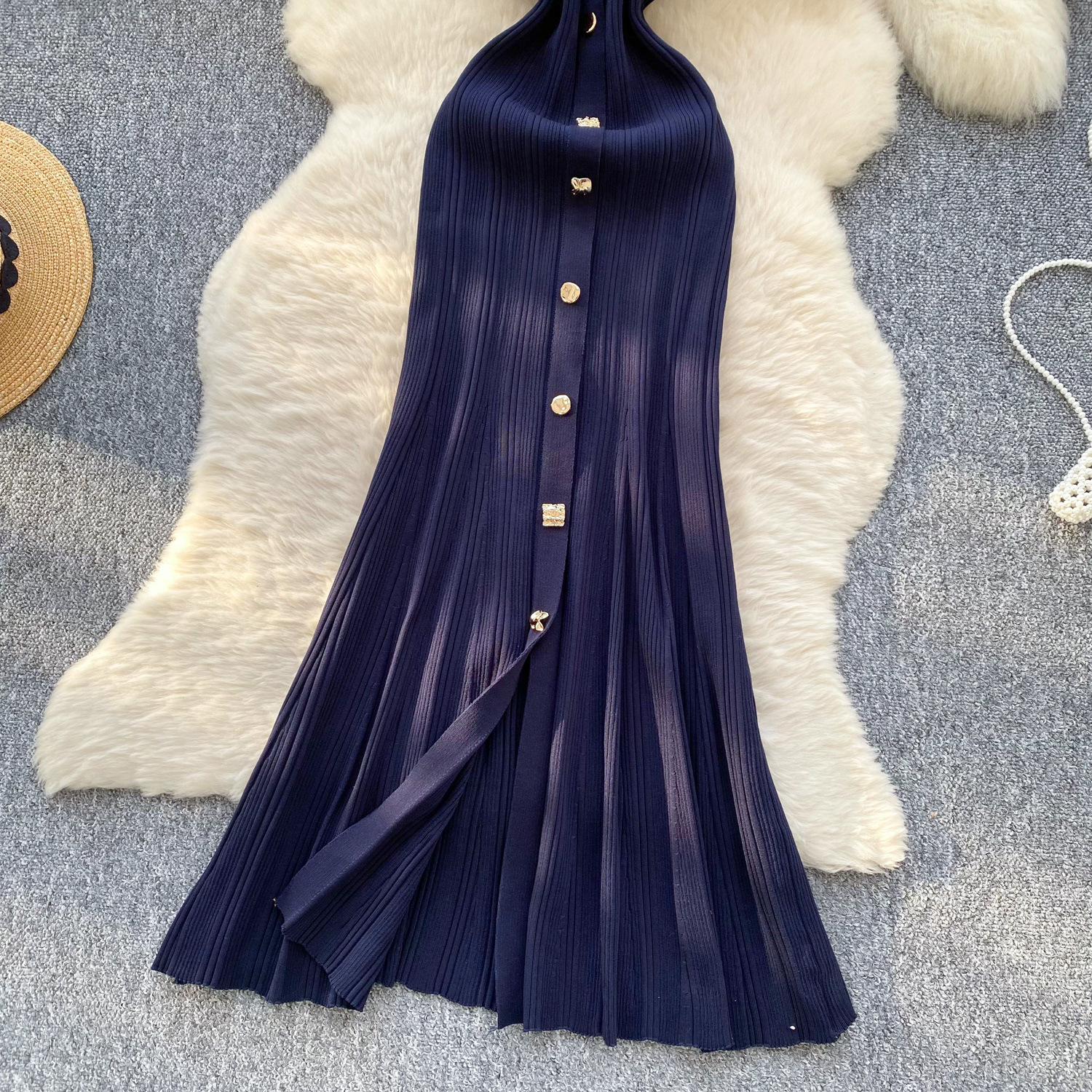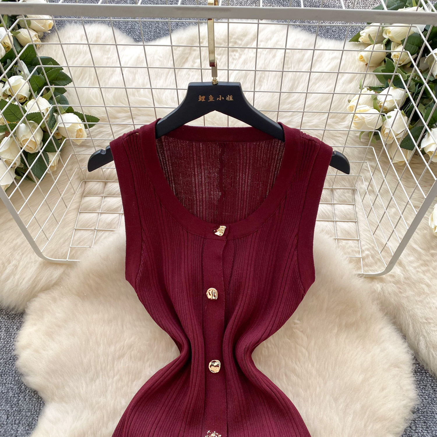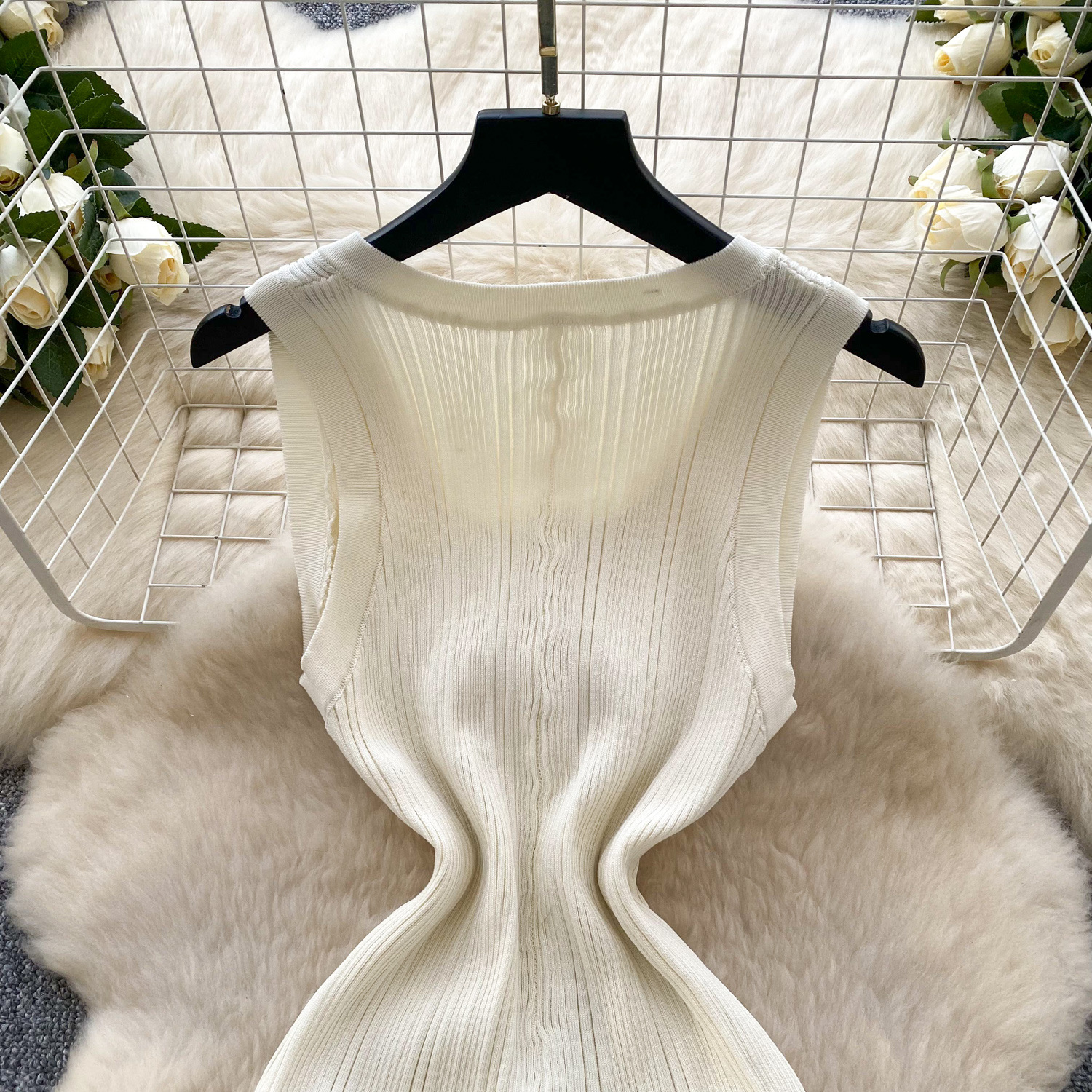 Copy| Product Name | Women's Round Neck Sleeveless Knit Slim Fit Metal Button Tight-Fitting Bodycon Long Dress |