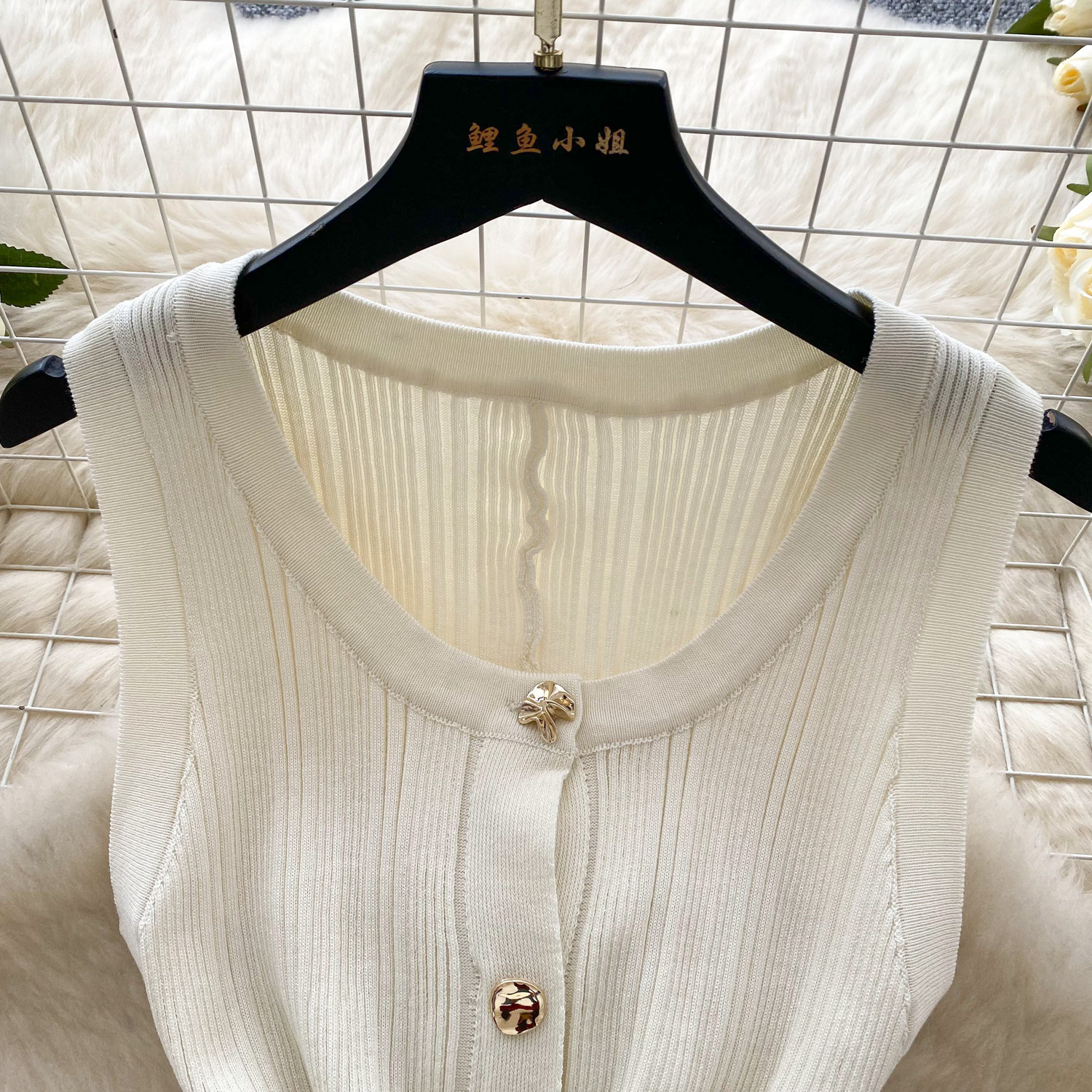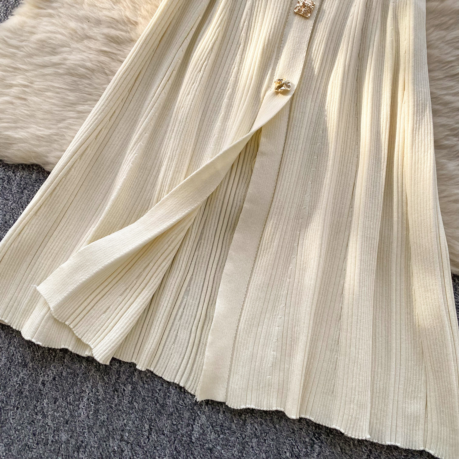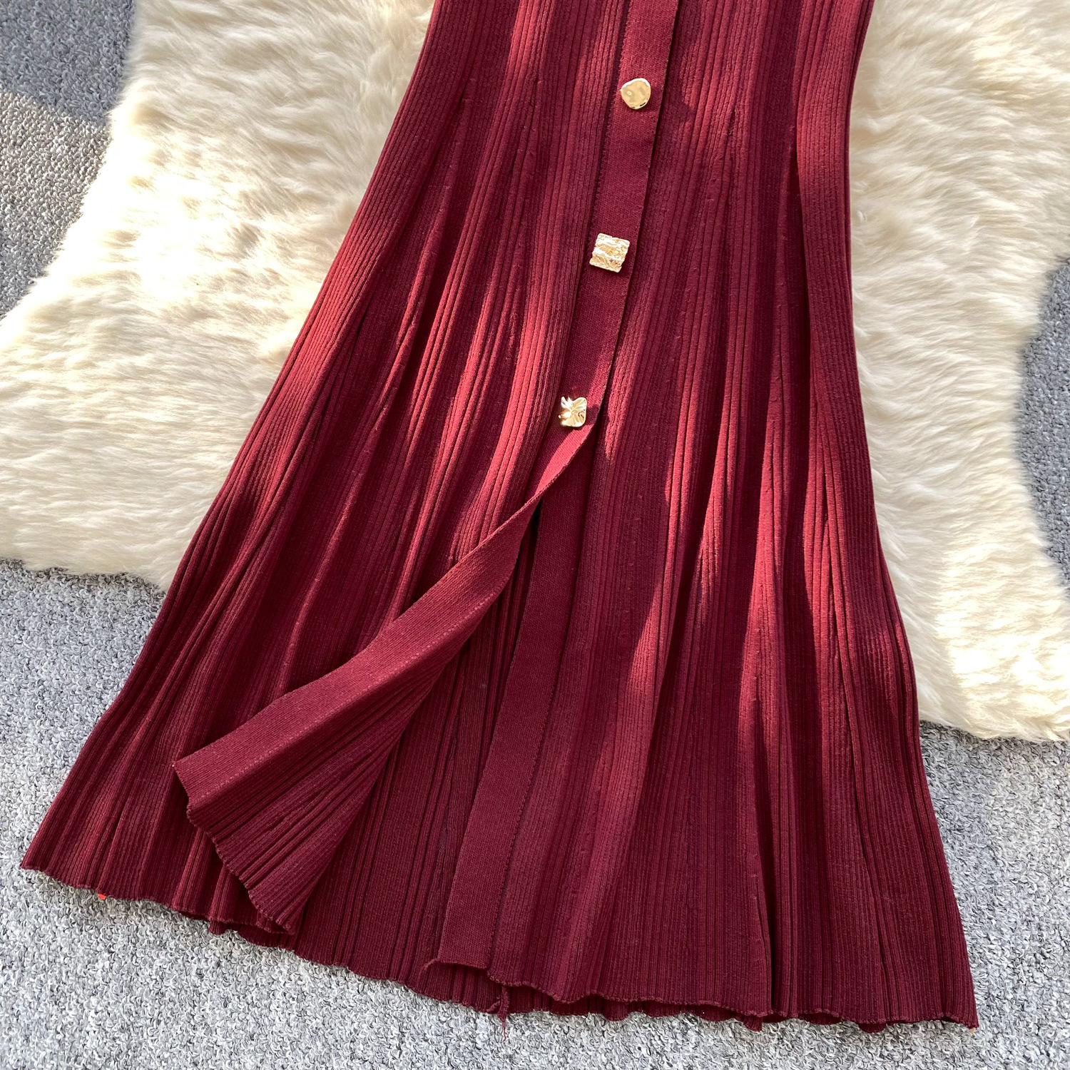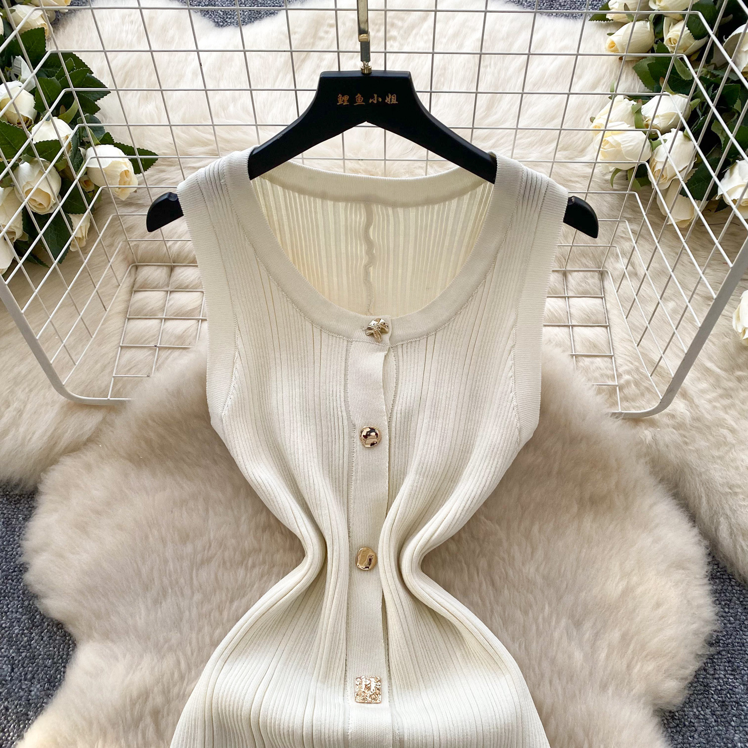 Copy| Product Name | Women's Round Neck Sleeveless Knit Slim Fit Metal Button Tight-Fitting Bodycon Long Dress |