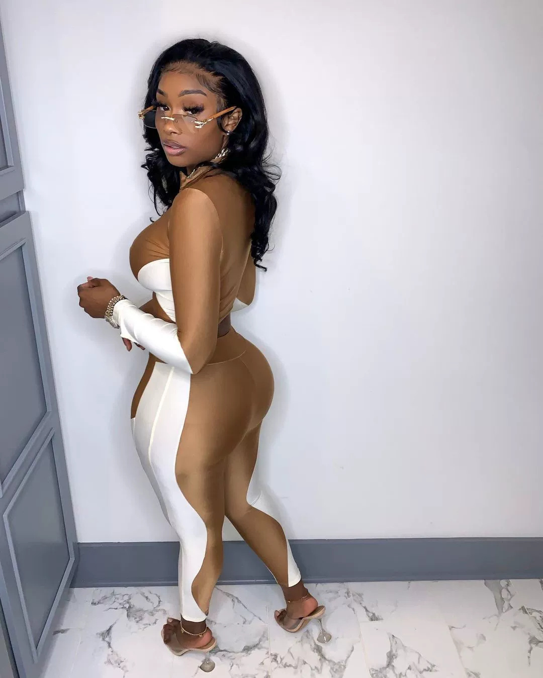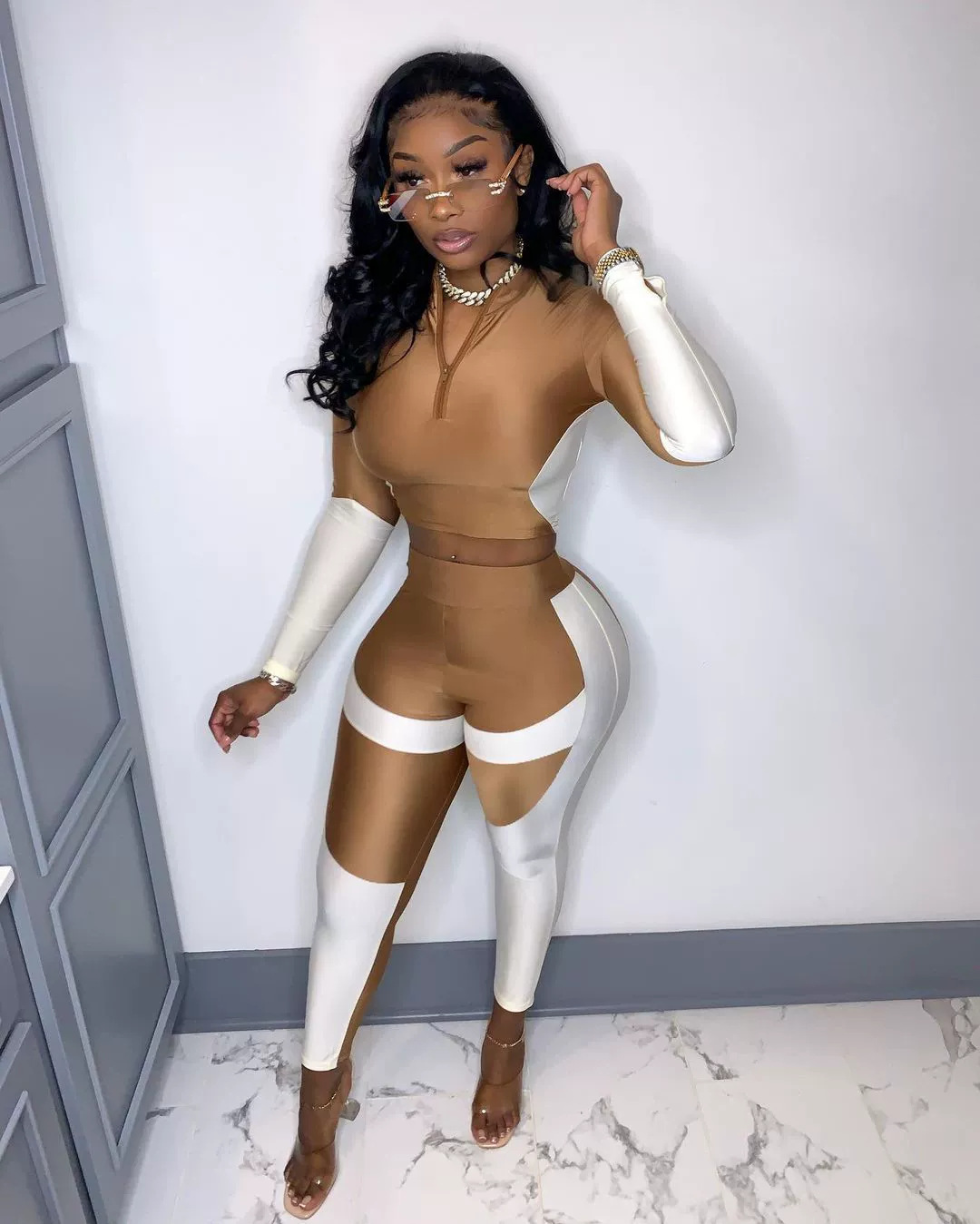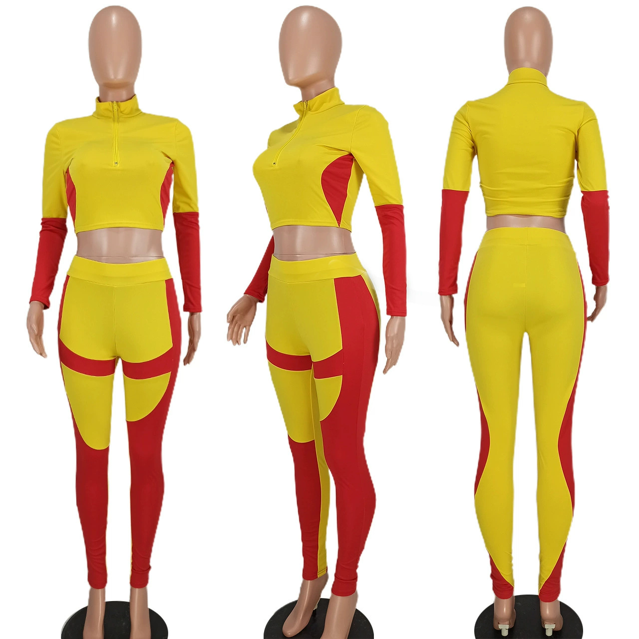 Copy| Product Name | Women's Sexy Casual Colorblock Open-Waist Two-Piece Pants Set |