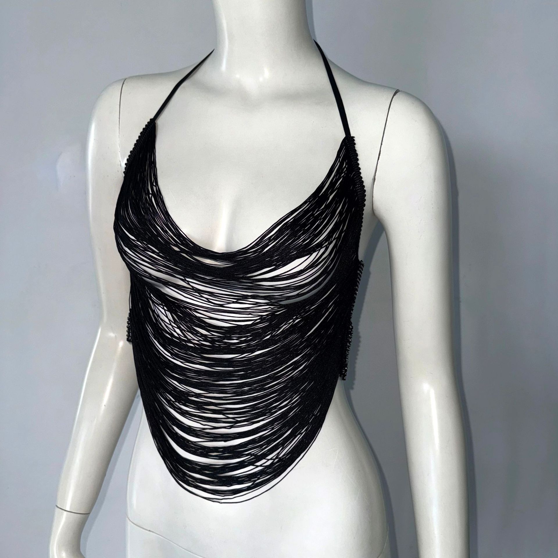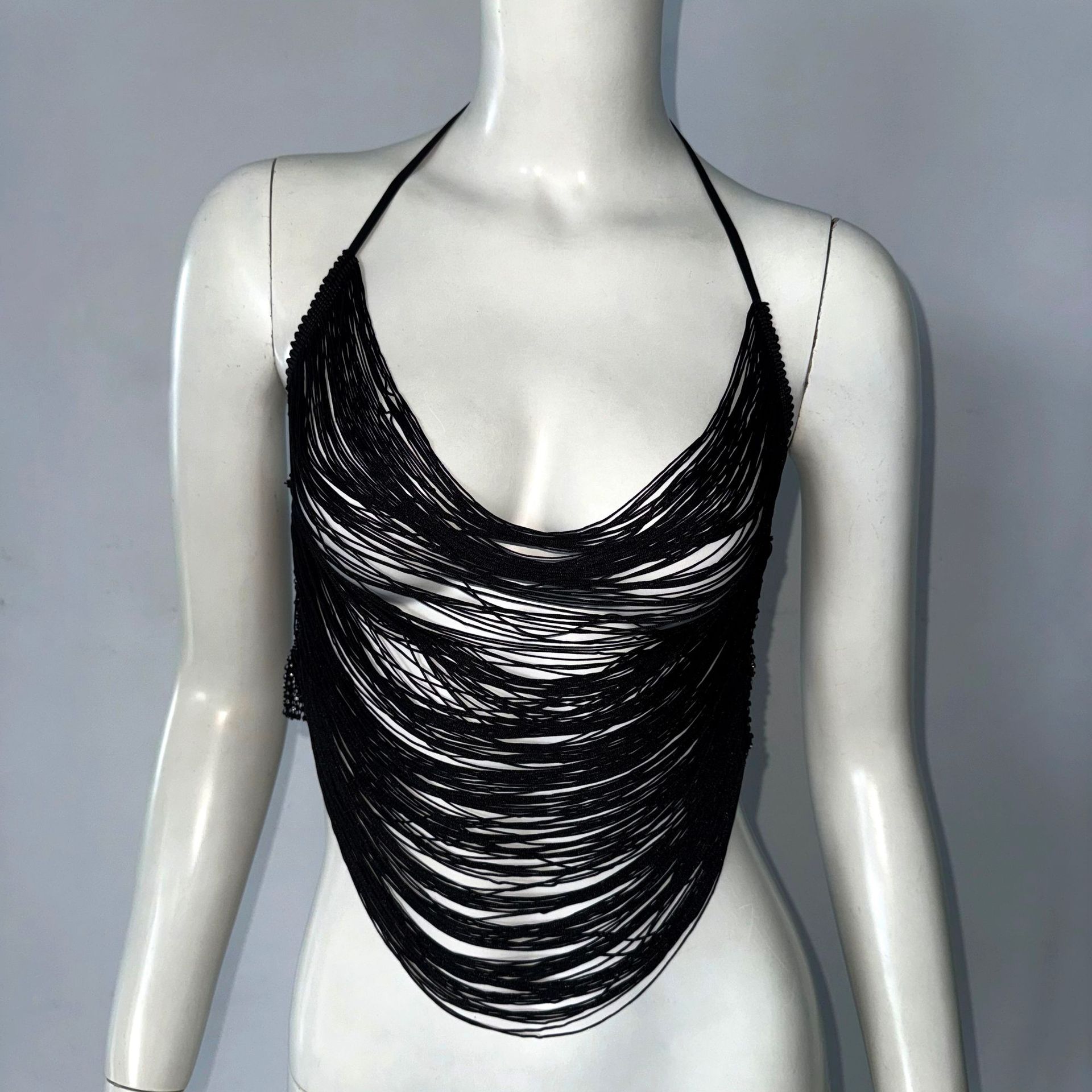 Copy| Product Name | Women's Sexy Halter Neck Multi-Layer Fringe Crop Top Nightclub Party Wear |