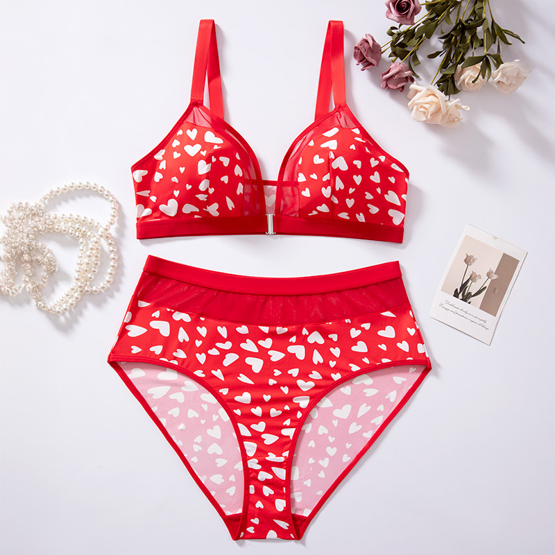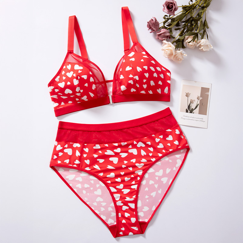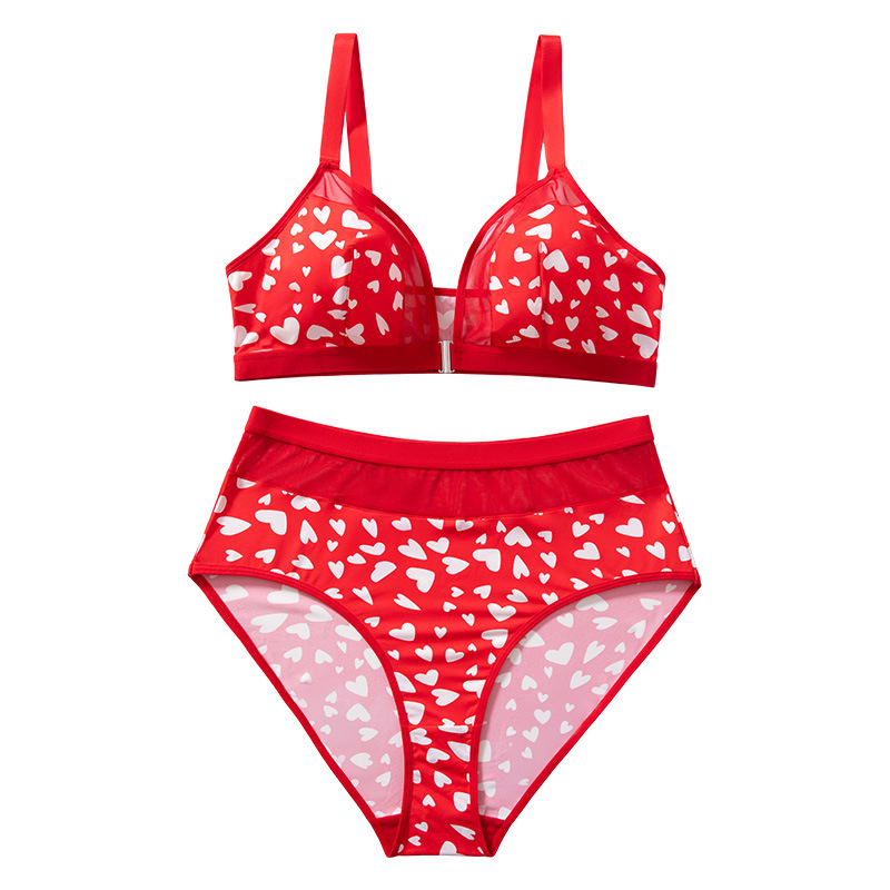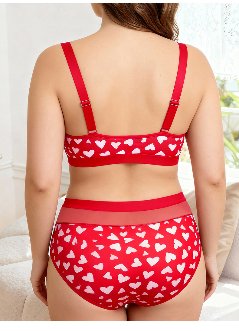 Copy| Product Name | Women's Sexy Heart Print Plus Size Wireless Bra Set |