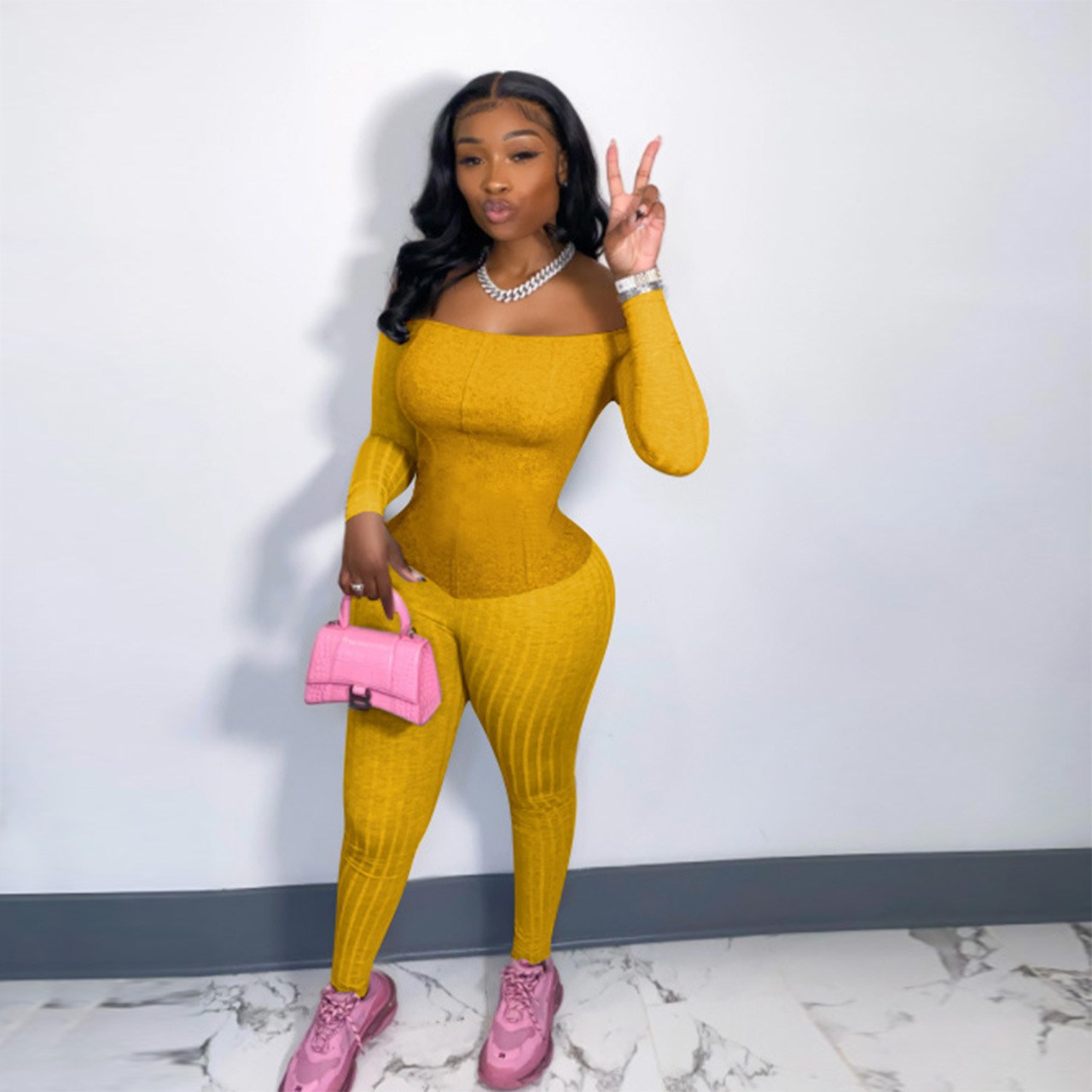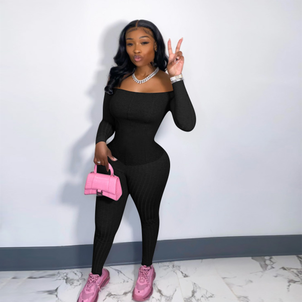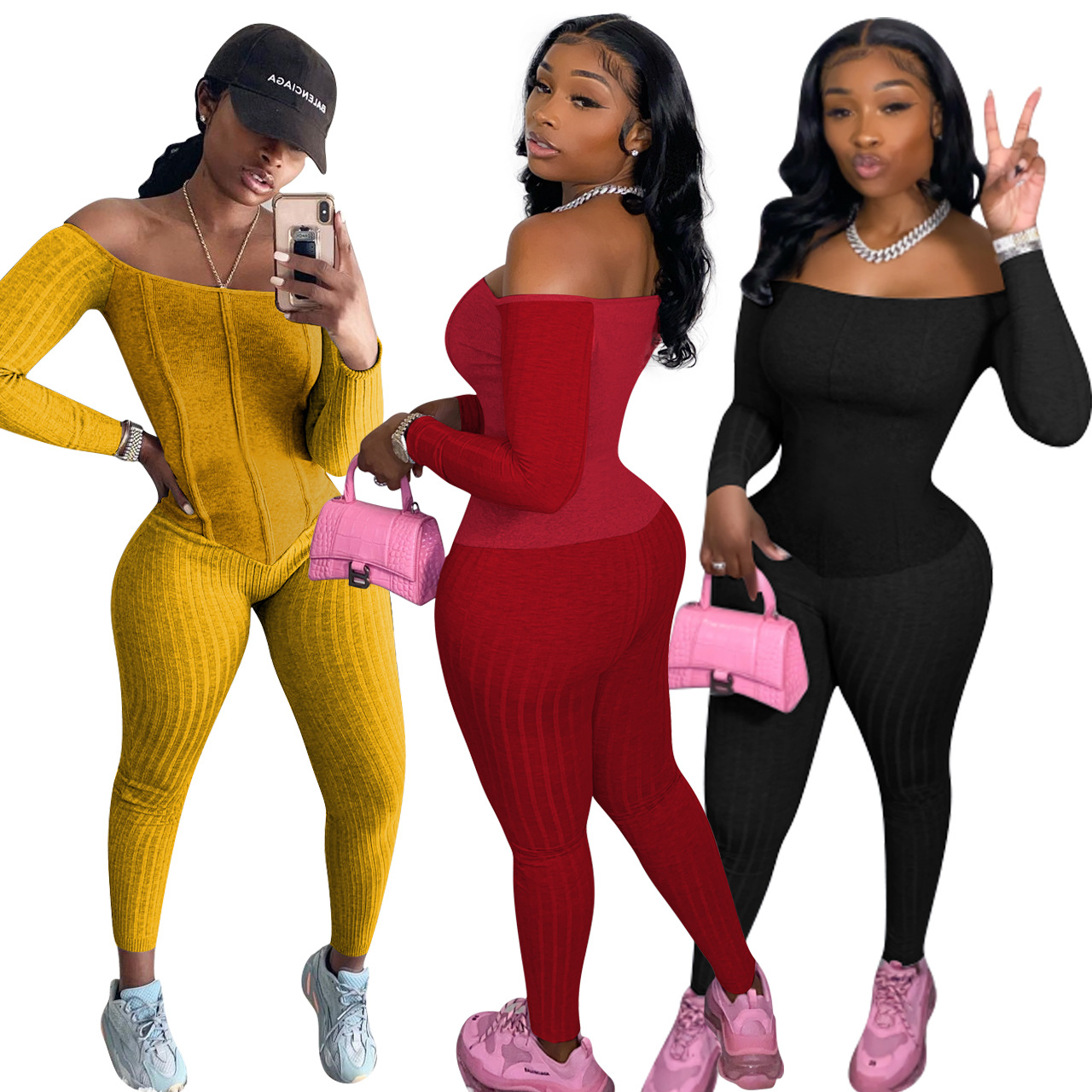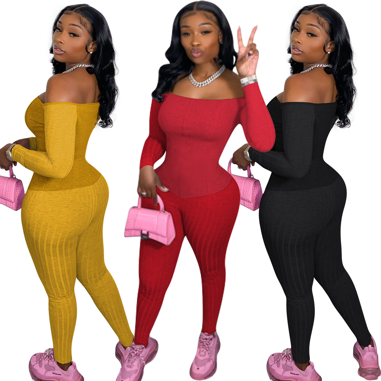 This Women's Sexy Off-Shoulder Ribbed Multi-Color Jumpsuit Design Made Of High Quality Polyster And Spandex Material. It Is Stretchy, Durable And Comfortable. Cheap Sexy Jumpsuits For Women Has Long Been a Party Favorite. Global Lover Provide a Rich Selction Of Sequin, Beaded, See Through Mesh, Leopard, Floral Lace, Leather, Velvet, Tight And Fitted Wholesale Jumpsuit Without Moq Limit.